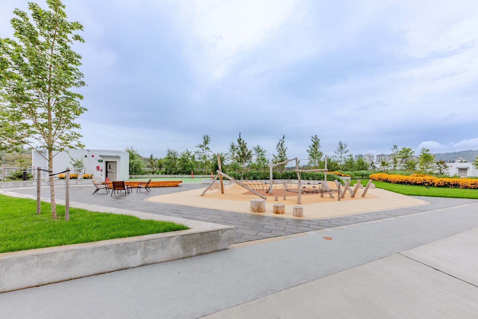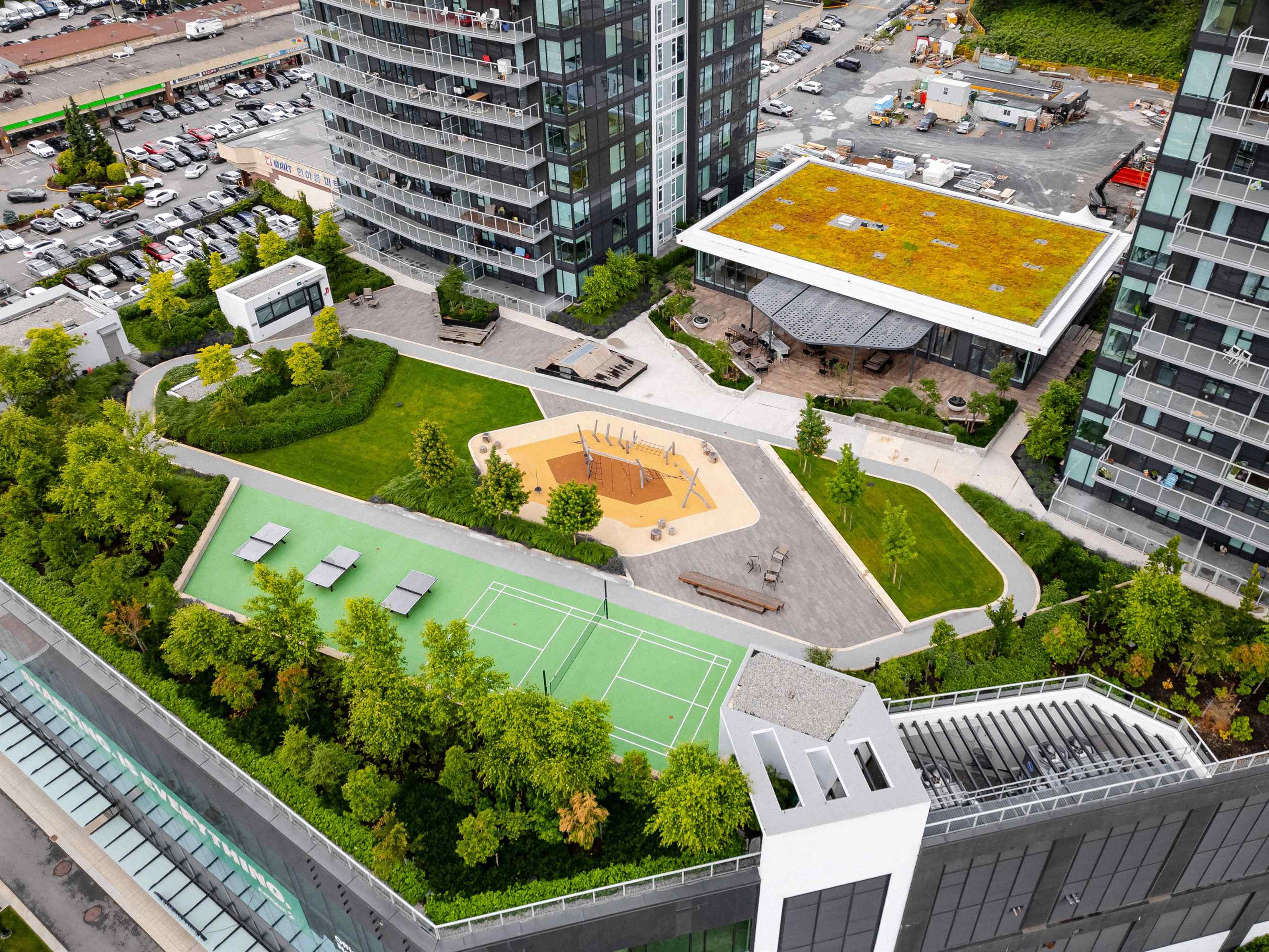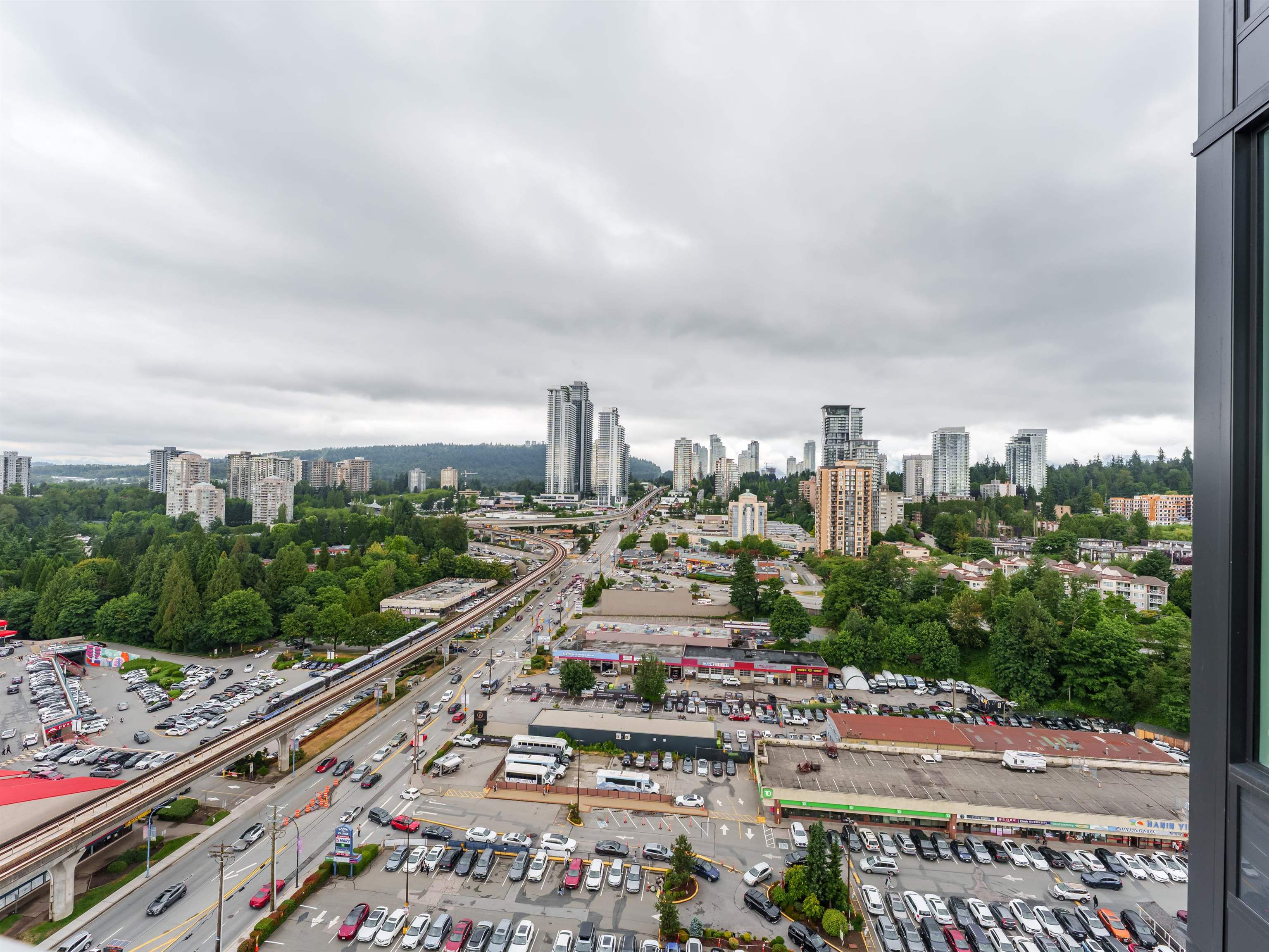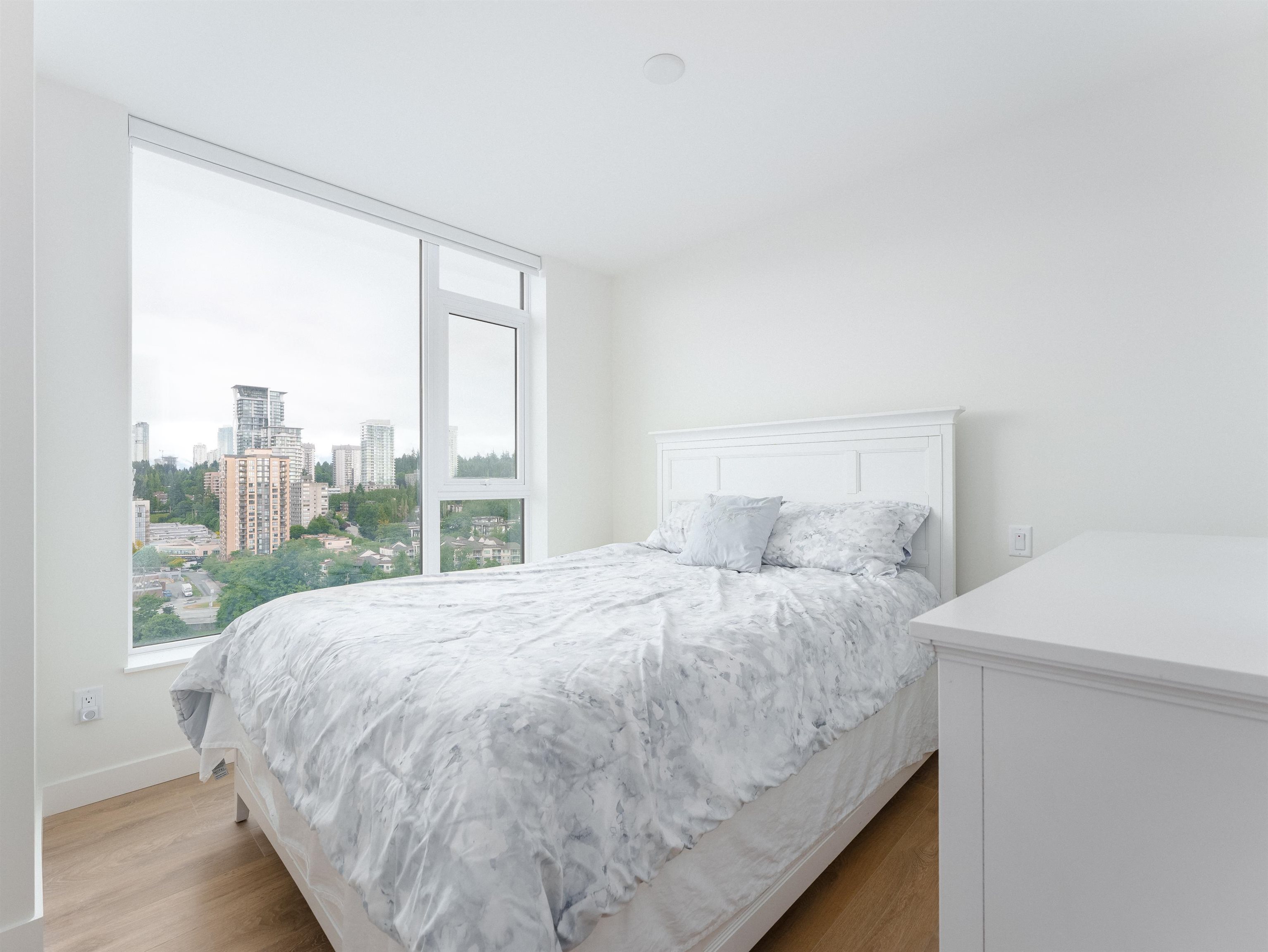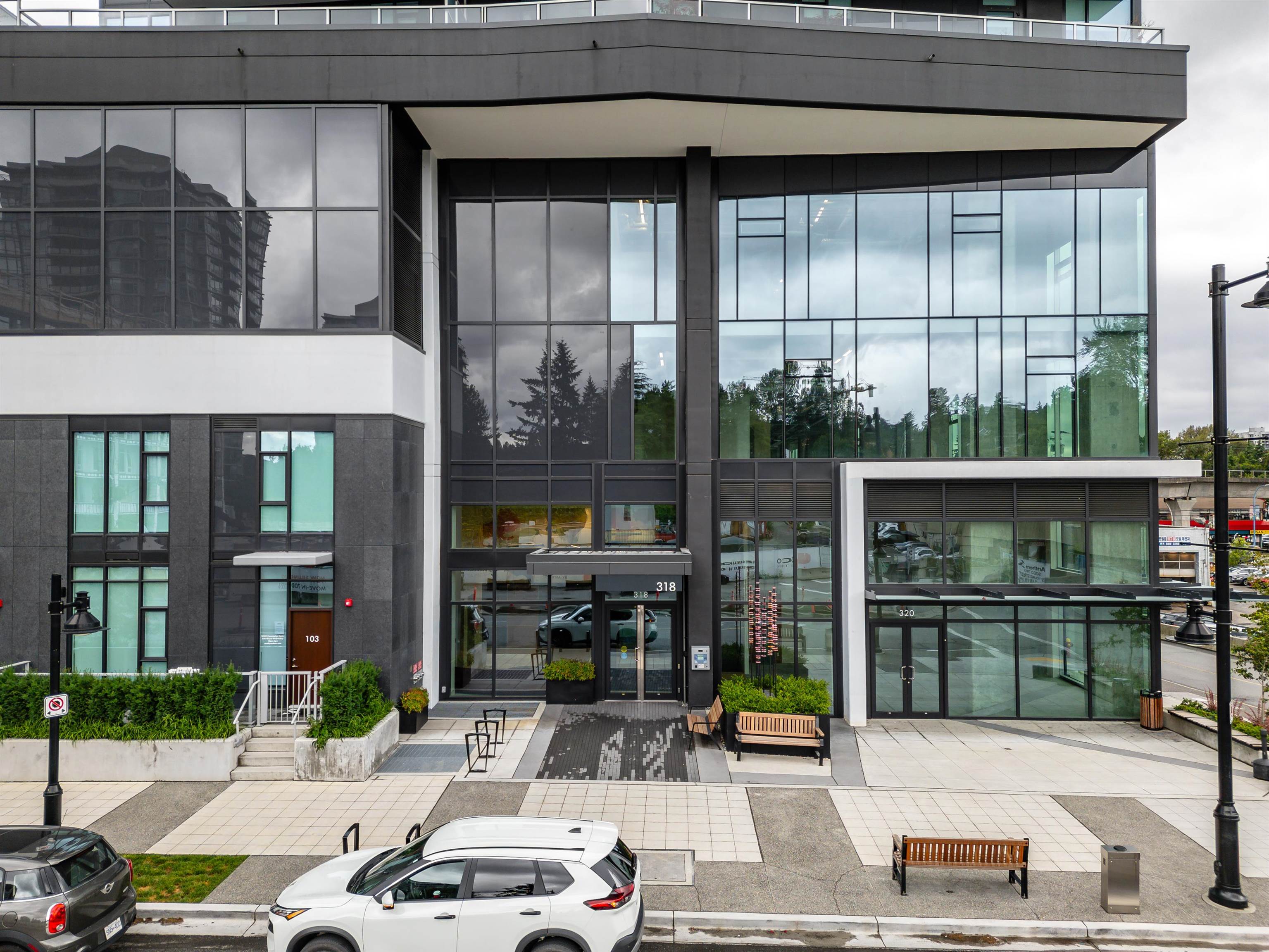 SOCO North Tower. Sweeping PANORAMIC VIEW. 841sf 2 bed 2 full bath. Bright Corner unit with open lay out. Heat pump/ AC, spacious rooms, hardwood laminate flooring, built in Bosch appliances, gas stove. One parking and one locker. Complex has 43,000sf of indoor and outdoor amenities including: entertainment sized lounge, basketball court, outdoor playground, table tennis area, study area, bbq area, guest suite, and fitness room. Minutes of walking distance from vast array of shops, restaurants and services...