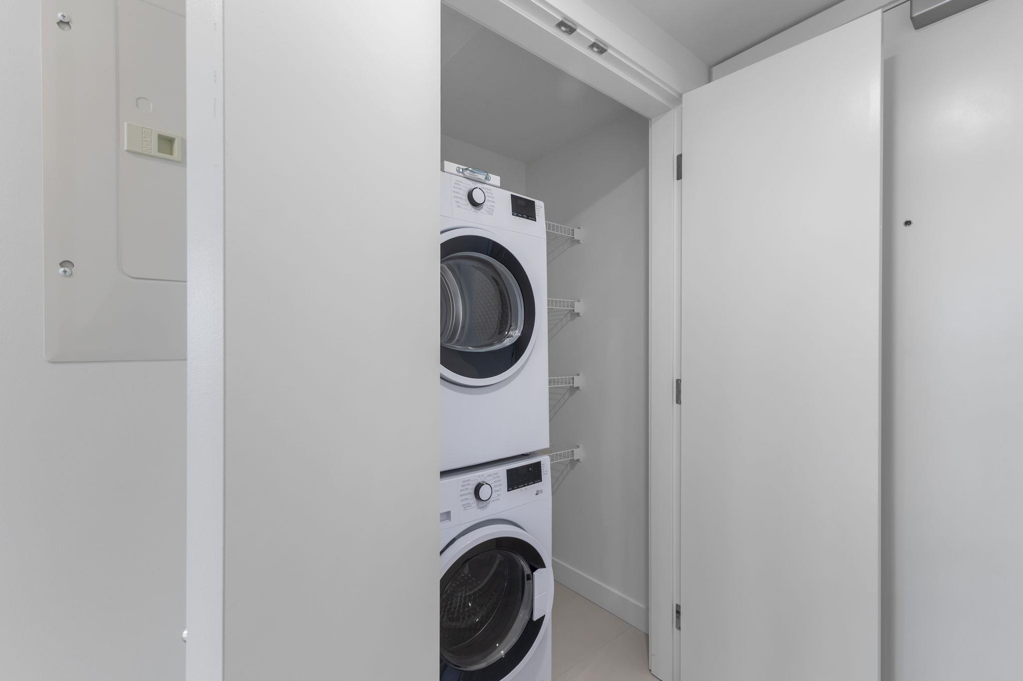 Welcome to this modern studio at Flamingo One! This versatile home easily transitions from everyday living to entertaining, featuring overheight 9' ceilings, abundant natural light, and stunning views. Enjoy 25,000+ sq. ft. of amenities including The Flamingo Club, gym, theatre, Working space, hobby room, outdoor lounge, BBQ area, gardens, children's play area, dog park, and guest suite--all designed as an extension of your home in Surrey's vibrant new community. Locker Information: P1, room #107, locker #3...