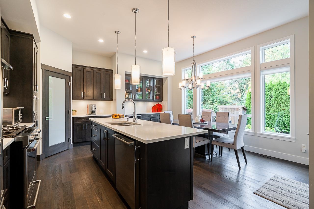 Foxridge Home Backing Onto Greenbelt! This beautifully kept 3,237 sq ft 2-storey with finished basement sits in one of Cloverdale’s most desirable neighborhoods. Features 3 bedrooms up, a main-floor den, and 2 bedrooms below. Bright open layout with hardwood floors, quartz counters, stainless steel appliances with gas stove, and A/C for year-round comfort. The great room design includes a large kitchen with island, dining area, and cozy living space. Step out to a private backyard oasis with covered outdoor...
