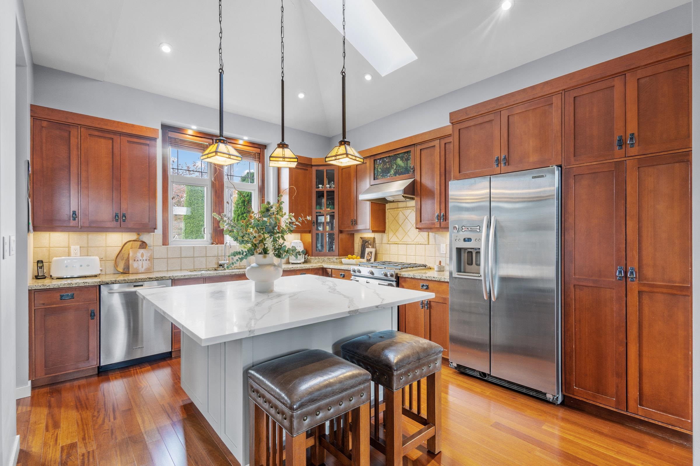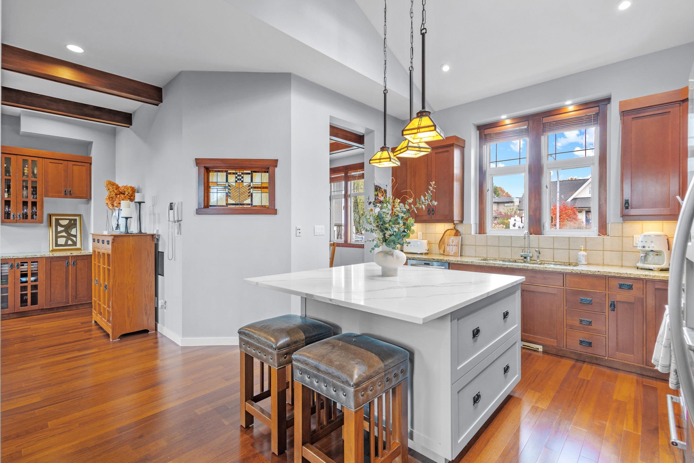 Discover a luxury Residence located in North Bby's Finest Neigbourhood THE HEIGHTS! This One-of-a-Kind Home was European Built w/ the Extensive use of Solid Cherry Wood Floors + Fir Milwork Finishing. Magnificent Foyer w/ Expansive Floor Plan offers Executive Living with a Formal Dining Room adjacent to a Chef Inspired Kitchen + Family Room perfect for Entertaining. Above feat's 2 Large Beds w/ a Jack-n-Jill Bath + Stunning Primary Bedroom adorned w/ a Massive Hotel Style Ensuite w/ a Luxurious Soaker Tub, ...