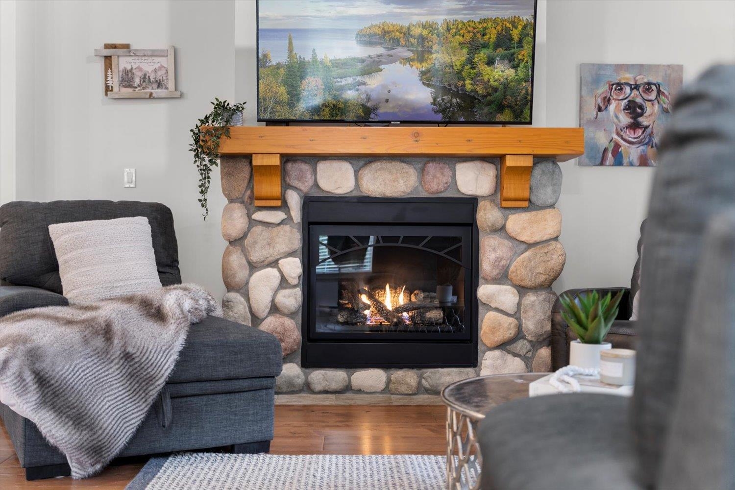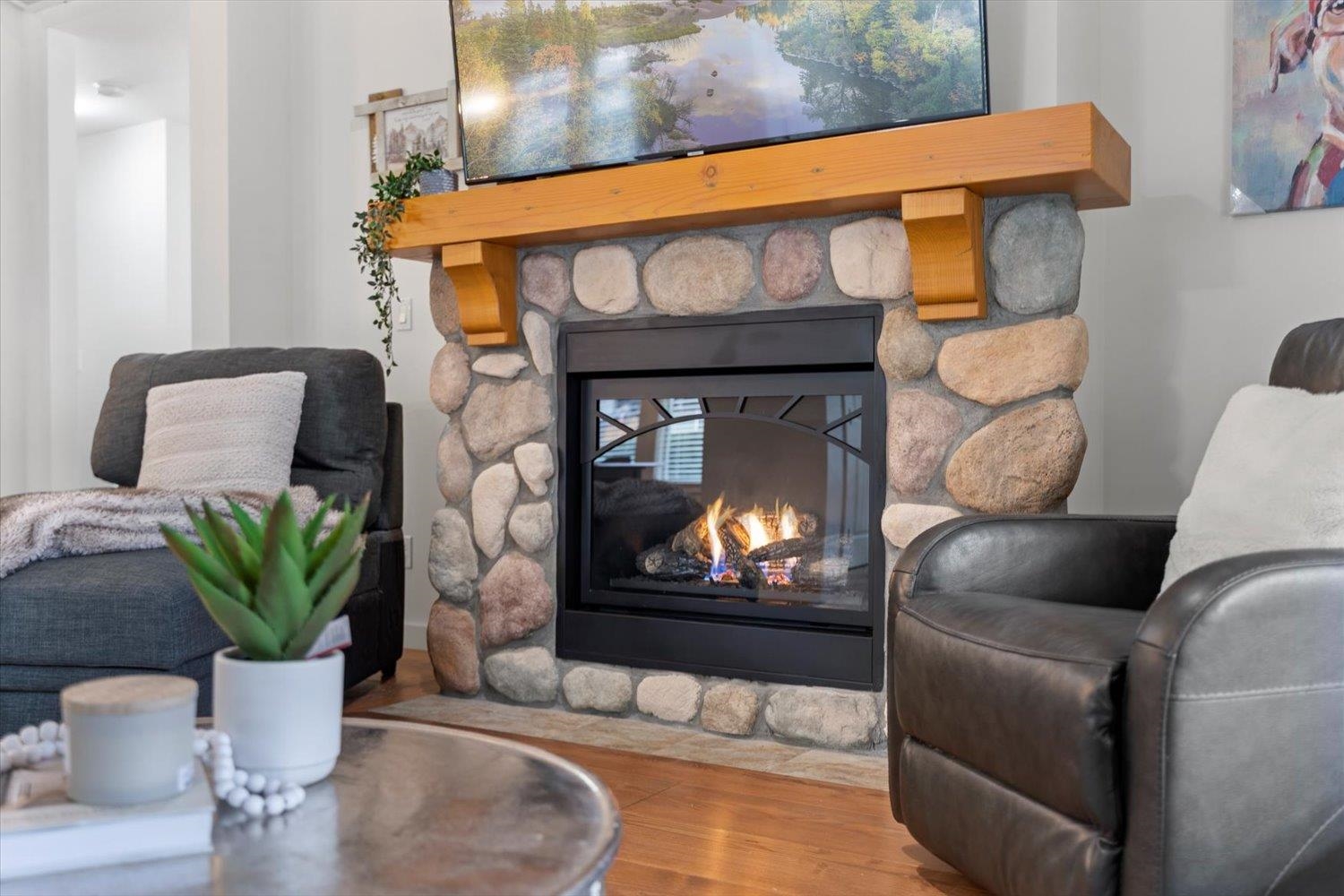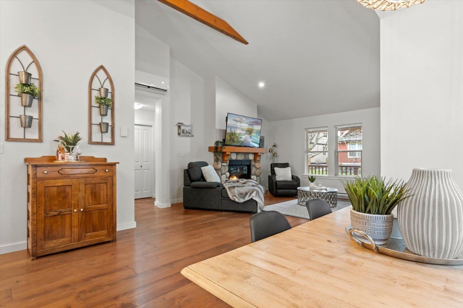Tucked away in the sought-after Cottages at Cultus Lake, this GORGEOUS RANCHER delivers charm, comfort & carefree living. Thoughtfully updated, it features a modern mini-split for perfect year-round temperature control, a new hot water tank, fresh paint throughout, updated fixtures & a newly redone driveway. Inside, vaulted ceilings with cozy wood beams create an airy yet inviting feel, while the rock-front fireplace brings all the classic cottage vibes. The open layout is ideal for relaxing or entertaining...