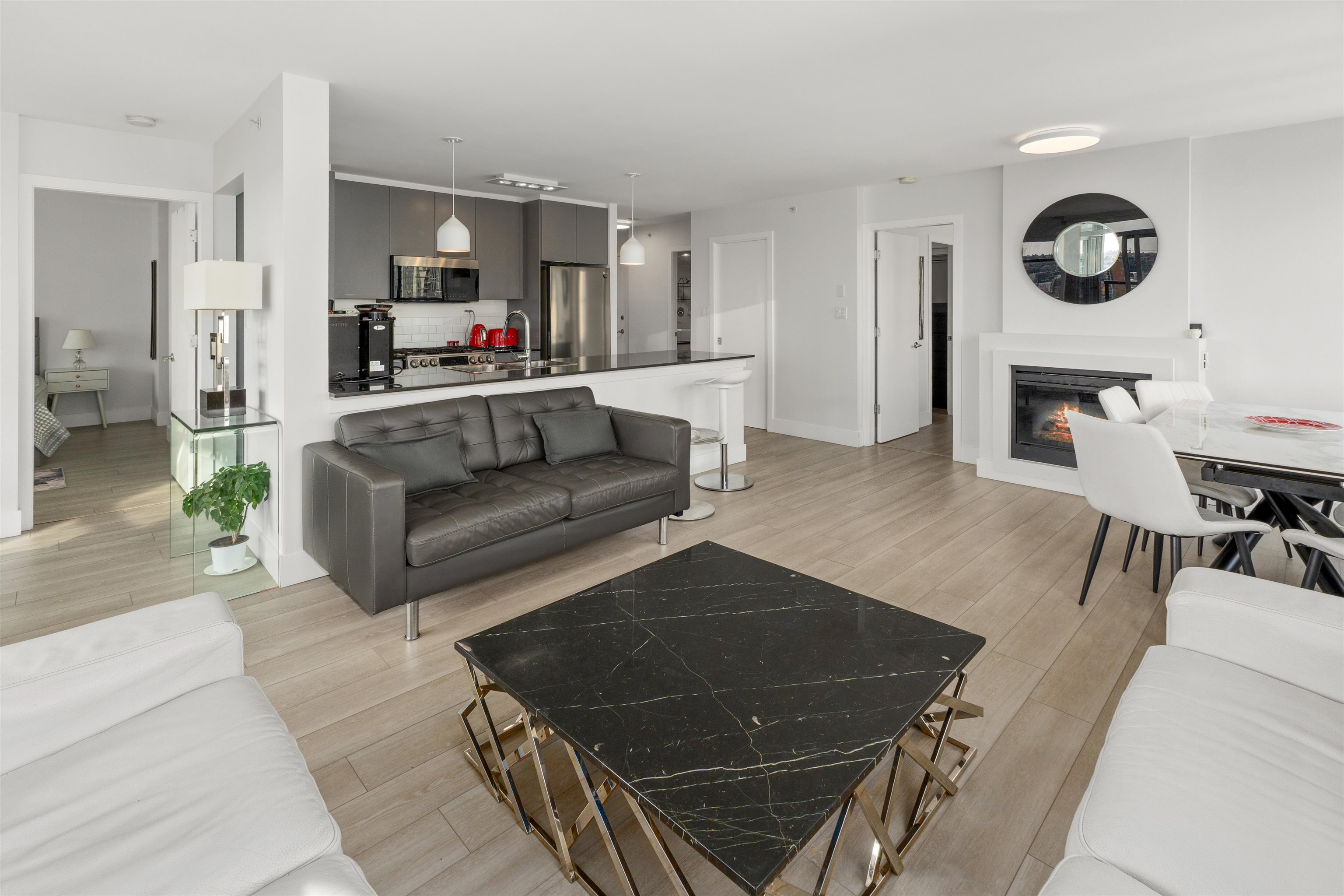 NOVA by BOSA in heart of Yaletown. This stunning corner 2 Bed + 2 Bath + Den + Flex offers over 1,058 SF of luxurious urban living. An entertainer’s dream with an open kitchen, 10’ island, gas cooktop & stainless appliances. Bright, spacious living & dining fit house-size furniture and open to a covered balcony with sunny water views for year-round use. Bedrooms are separated for privacy, with a spa-like ensuite, inspiring den & large flex/pantry. Enjoy great amenities—gym, yoga space, hot tub, steam room, ...