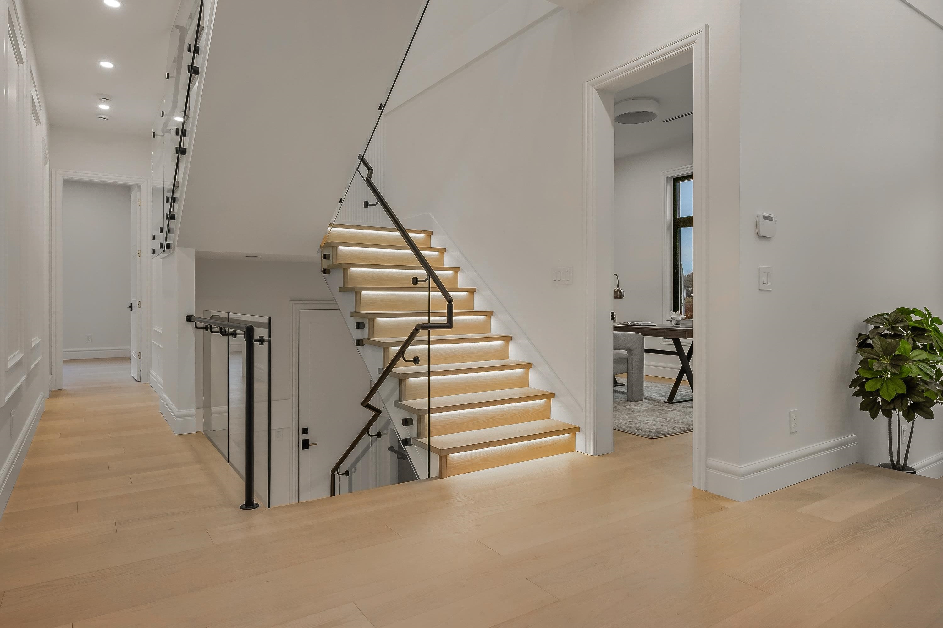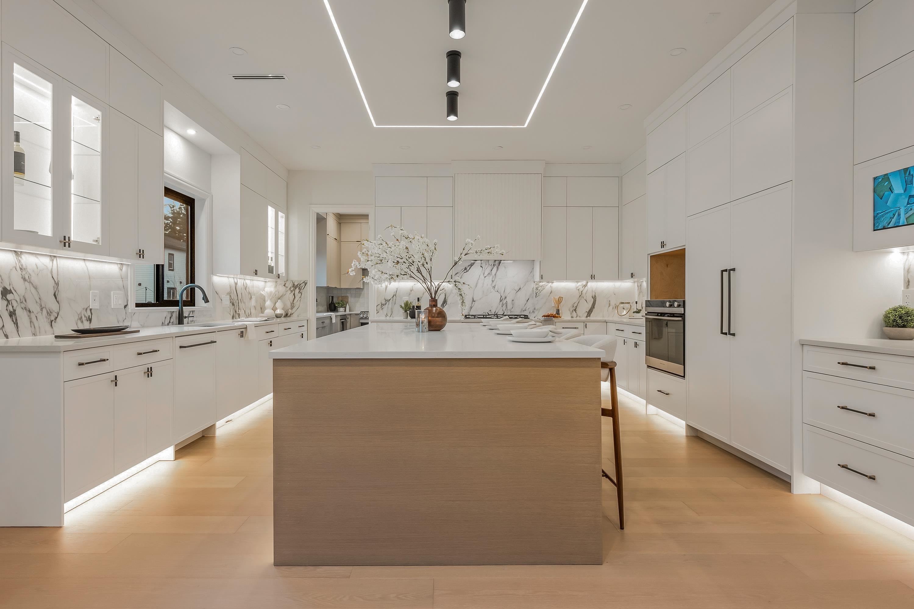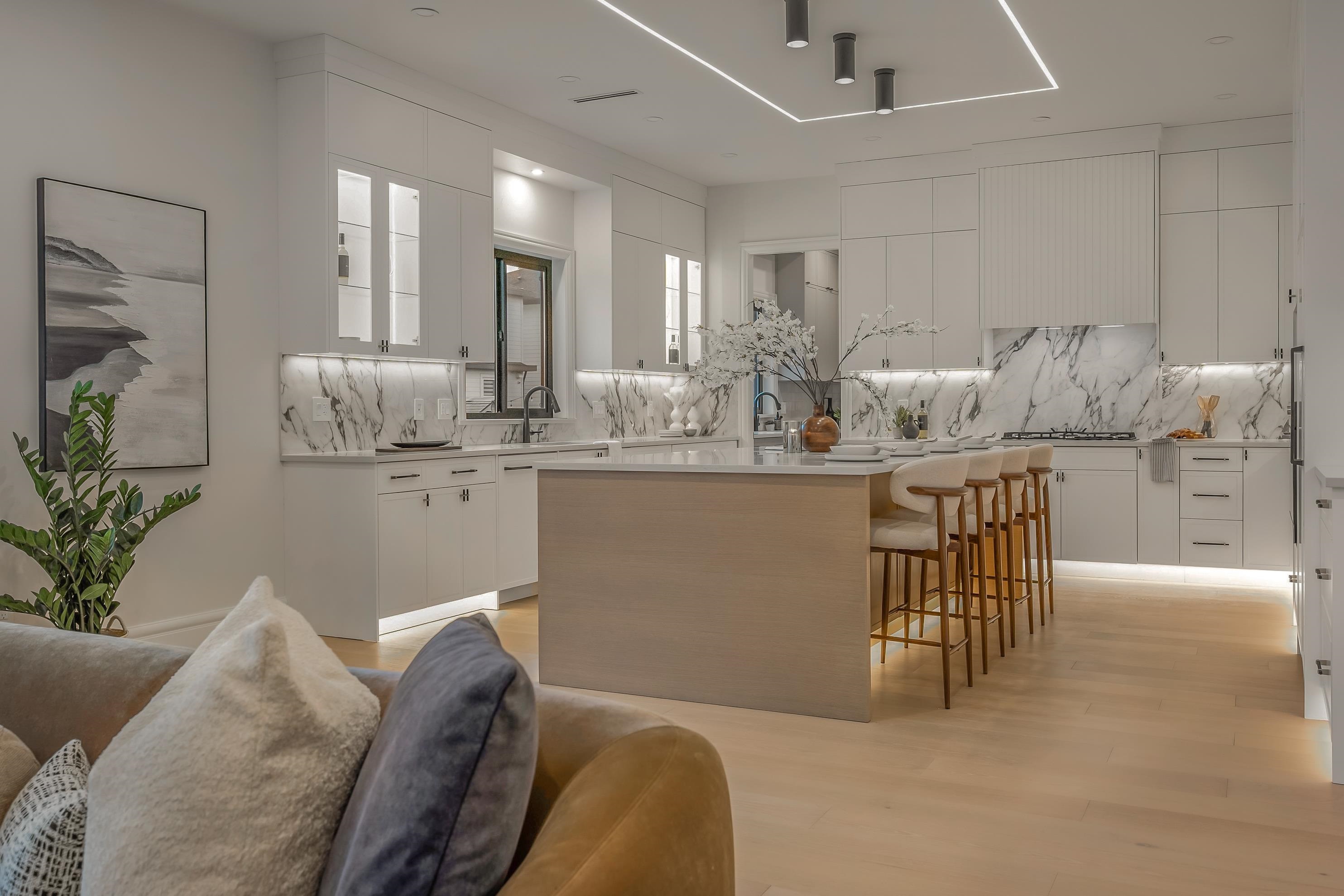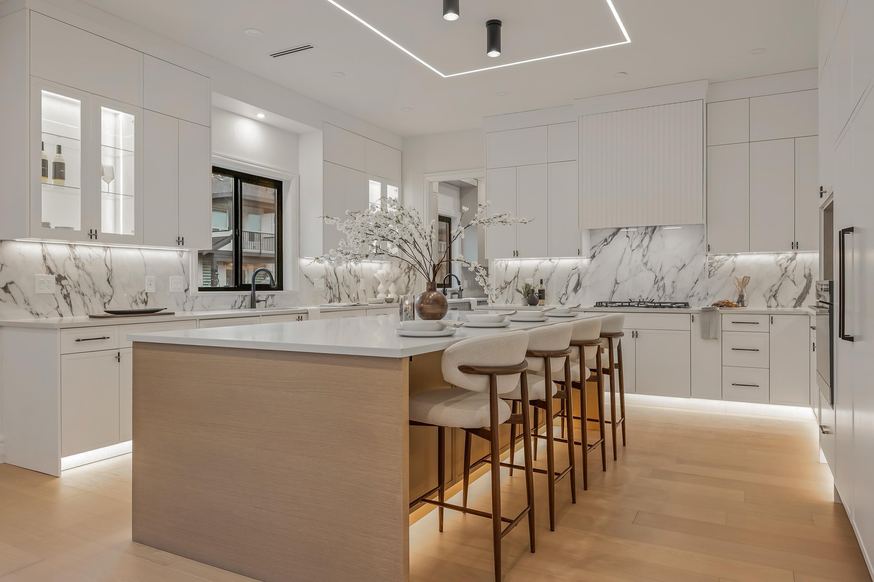 Crafted by an experienced custom home builder with detail and design at the forefront of craftsmanship. Experience spacious and bright living in an open concept floorplan with high ceilings, ensuited bedrooms, open-to-below loft. Grande French White kitchen with gourmet appliances and adjacent prep kitchen with beautiful polished tile. Hardwood floors, designer lighting, and intricate wall-paneling throughout. Enhanced finishes include molded-panel interior doors with high-end fixtures, and elegant LED stai...