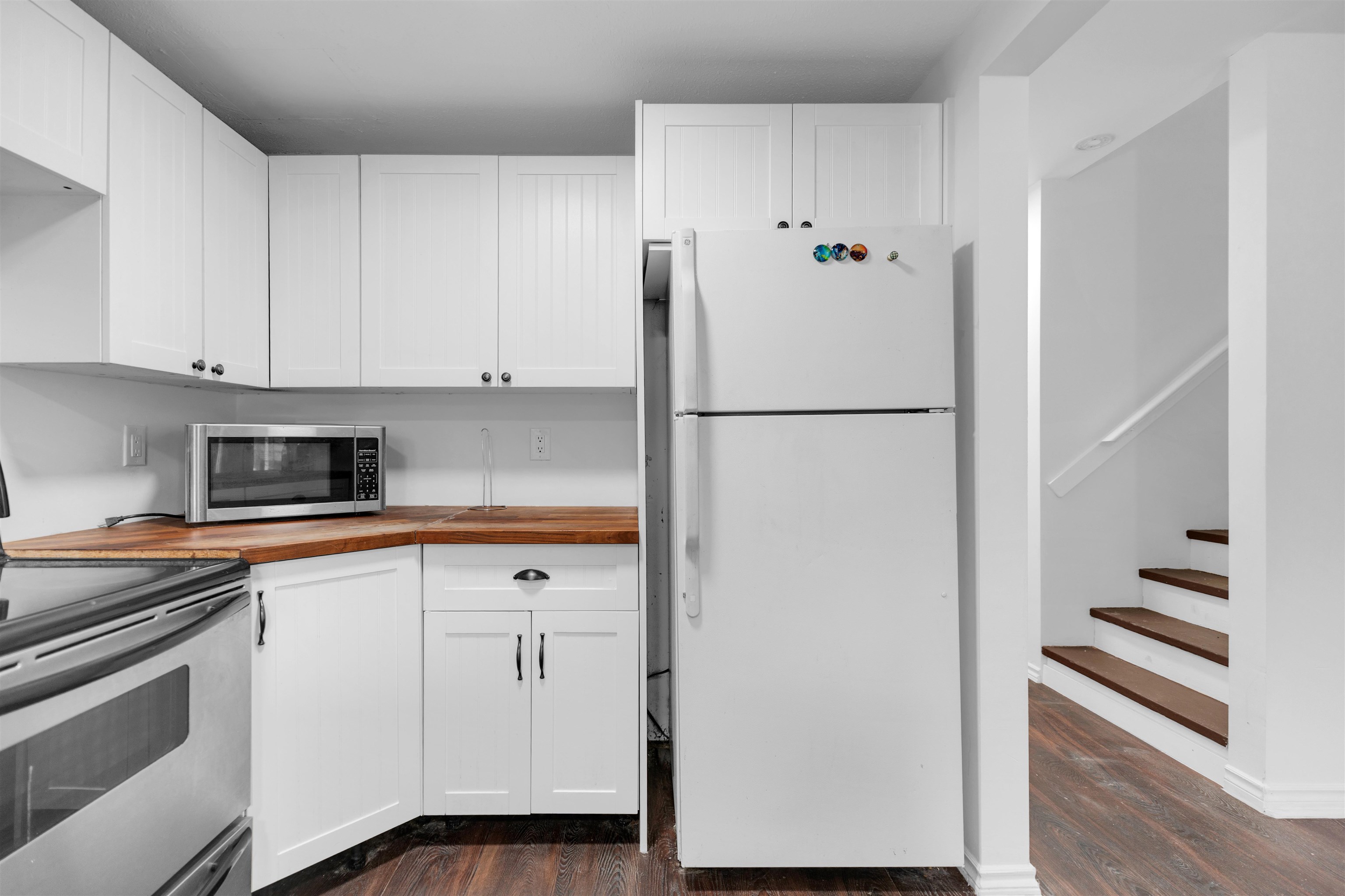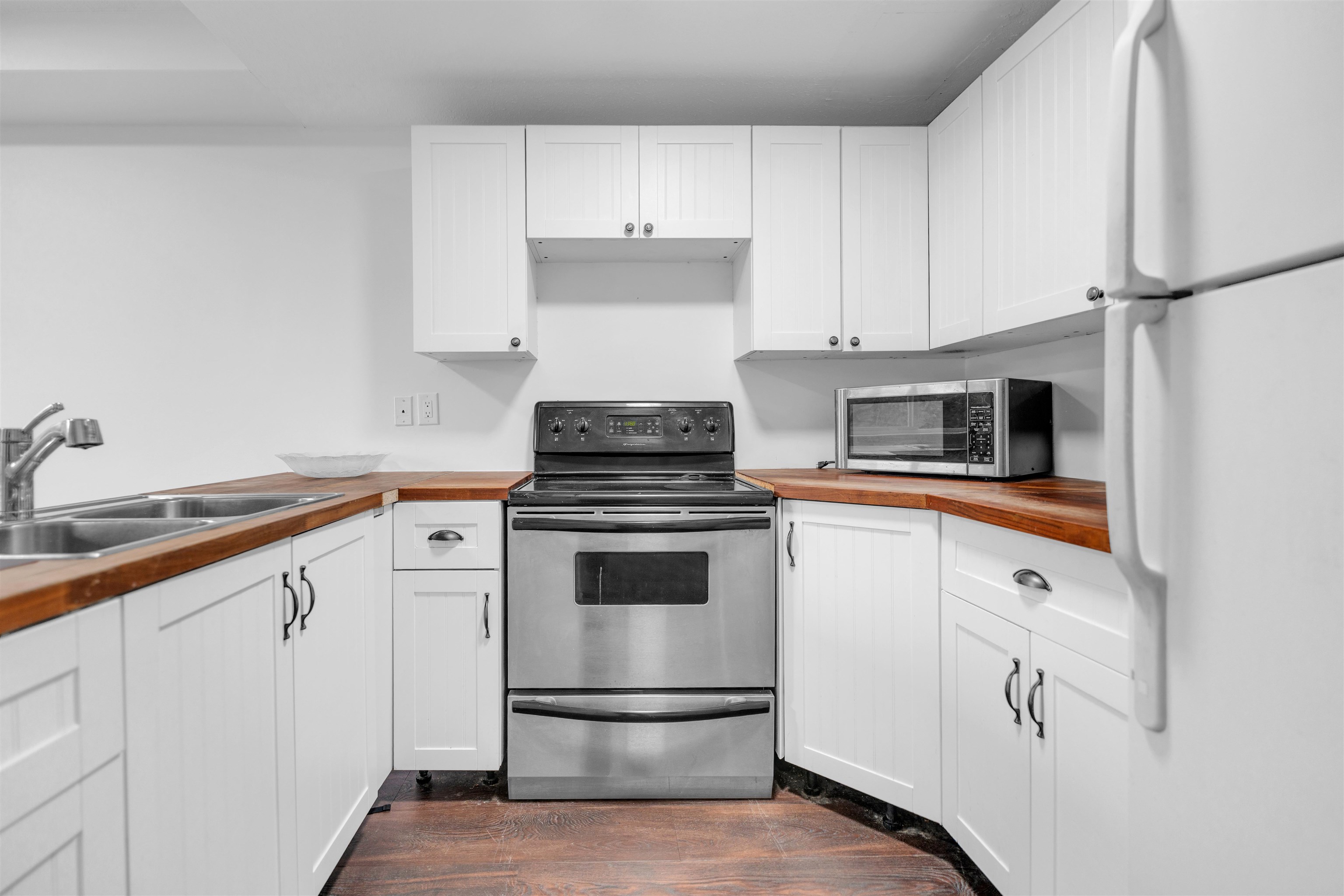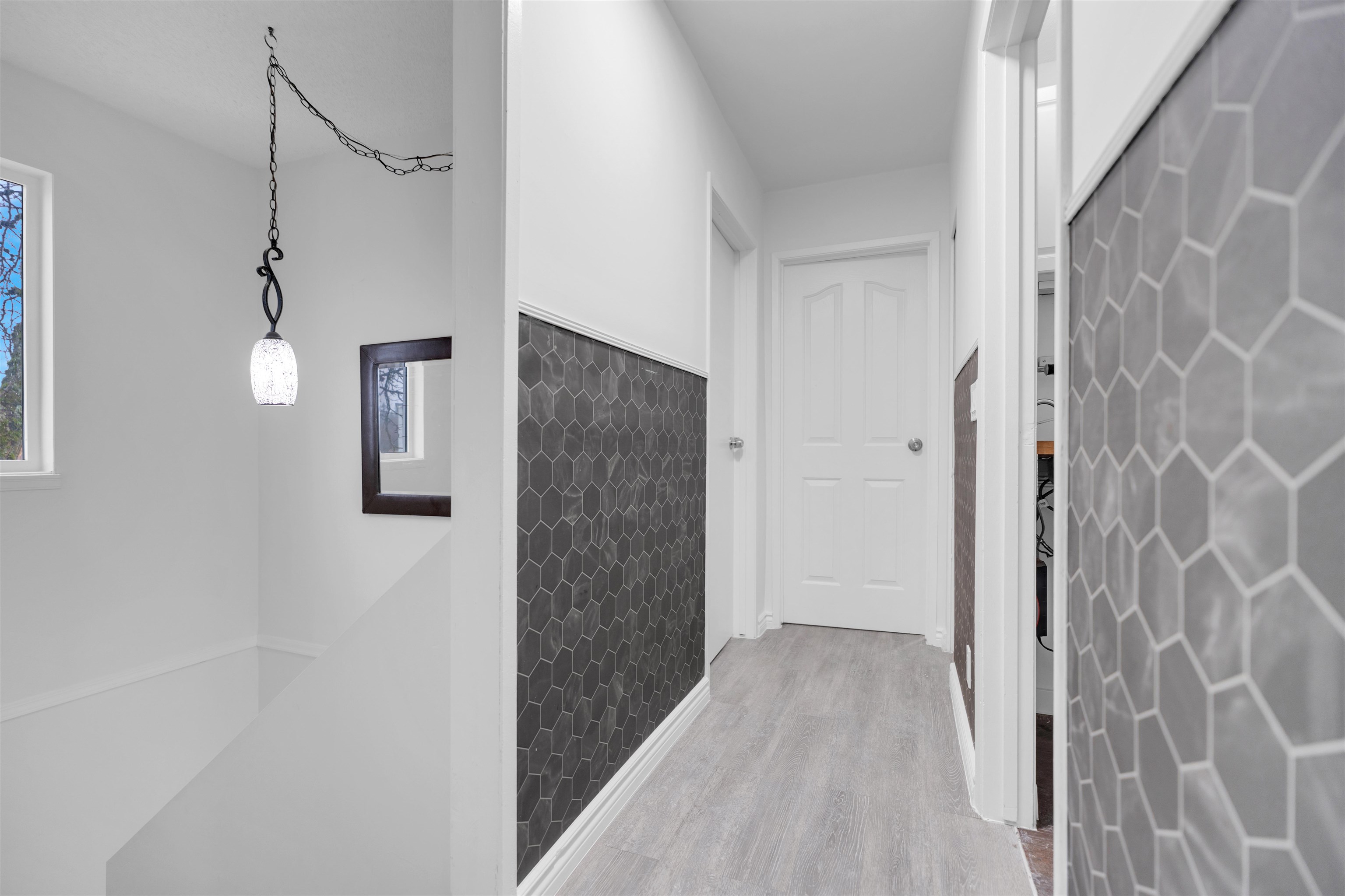 Live or Invest! Welcome to this beautifully updated 4 bed + den, 2 bath legal 1/2 duplex in Langley City! Situated on a generous 4,500 sq. ft. lot, this home offers nearly 1,400 sq. ft. of comfortable living space and has been tastefully renovated with modern flooring, kitchen, bathrooms, and finishes throughout. Enjoy a bright and functional layout with plenty of room for families, a home office, or guests. The property also features ample parking and sits on a desirable corner lot overlooking Brydon Lagoo...