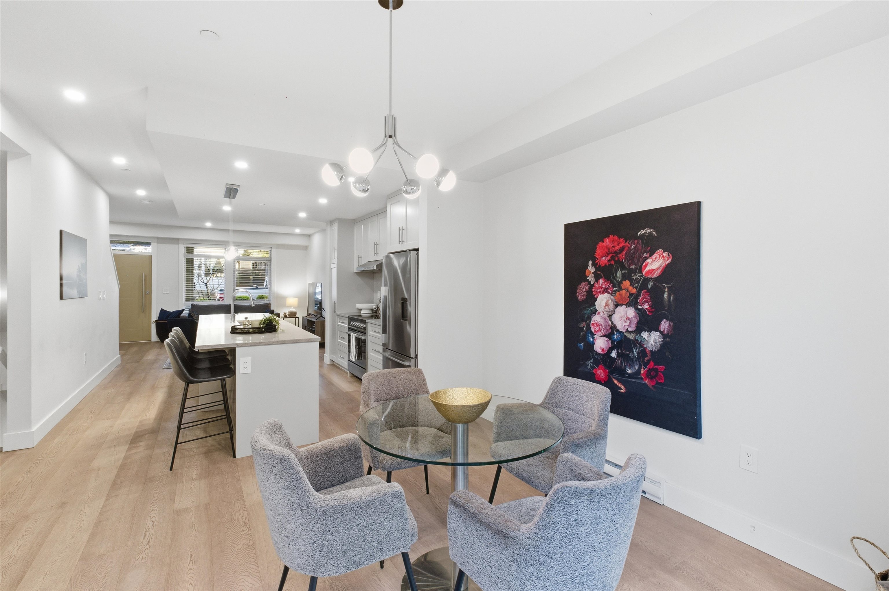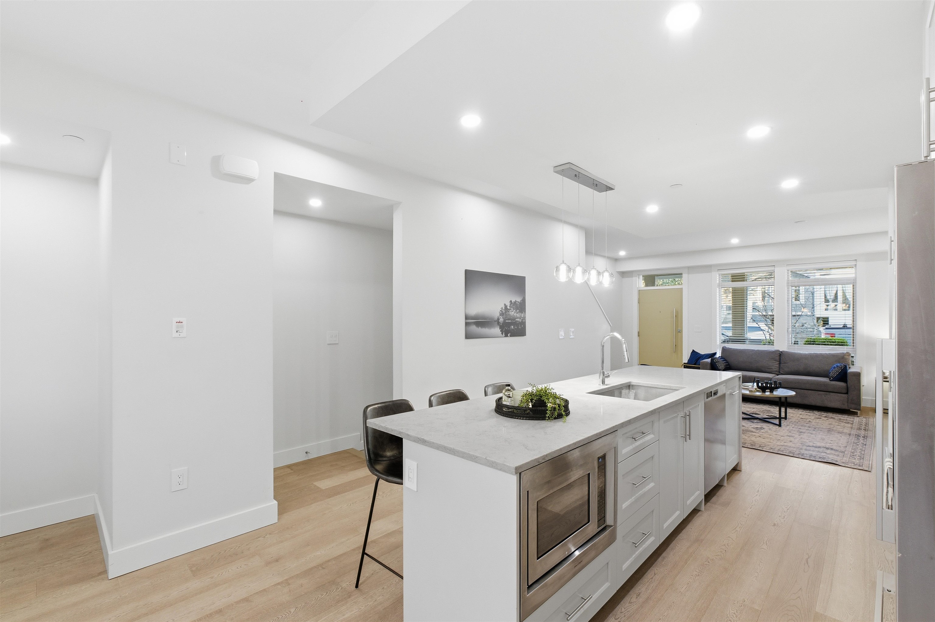 Experience expansive living in prestigious Upper Lonsdale. This rare 4-bedroom + den townhome offers 2,100 sq ft of thoughtfully designed space across multiple levels—perfect for growing families or those needing room to work, play, and entertain. Enjoy two full family rooms, ideal for separation of space or multi-generational living. A true home-like layout, featuring over-height ceilings, engineered hardwood floors, and a gourmet kitchen with a large entertainment island and premium Fisher & Paykel applia...