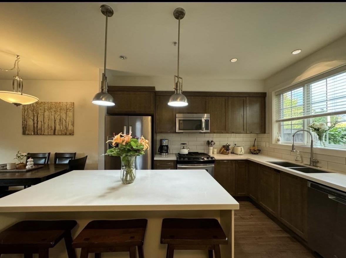 Well-maintained 3-bedroom, 3-bathroom townhome offering approximately 1,350 sq.ft. of functional living space in a quiet Maple Ridge neighborhood. Features include electric heating, gas range, full kitchen appliance package, in-suite washer and dryer, private patio, and a fully fenced yard. Natural gas BBQ and private patio shed included. Two parking spaces available with garage and driveway parking. Pets negotiable (maximum one). Available February 1.