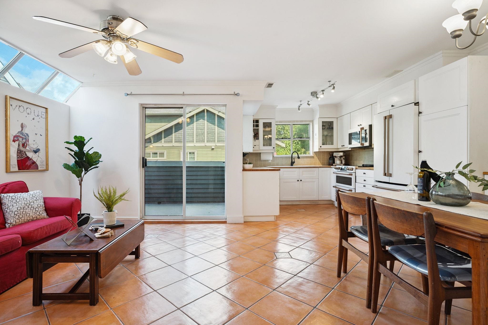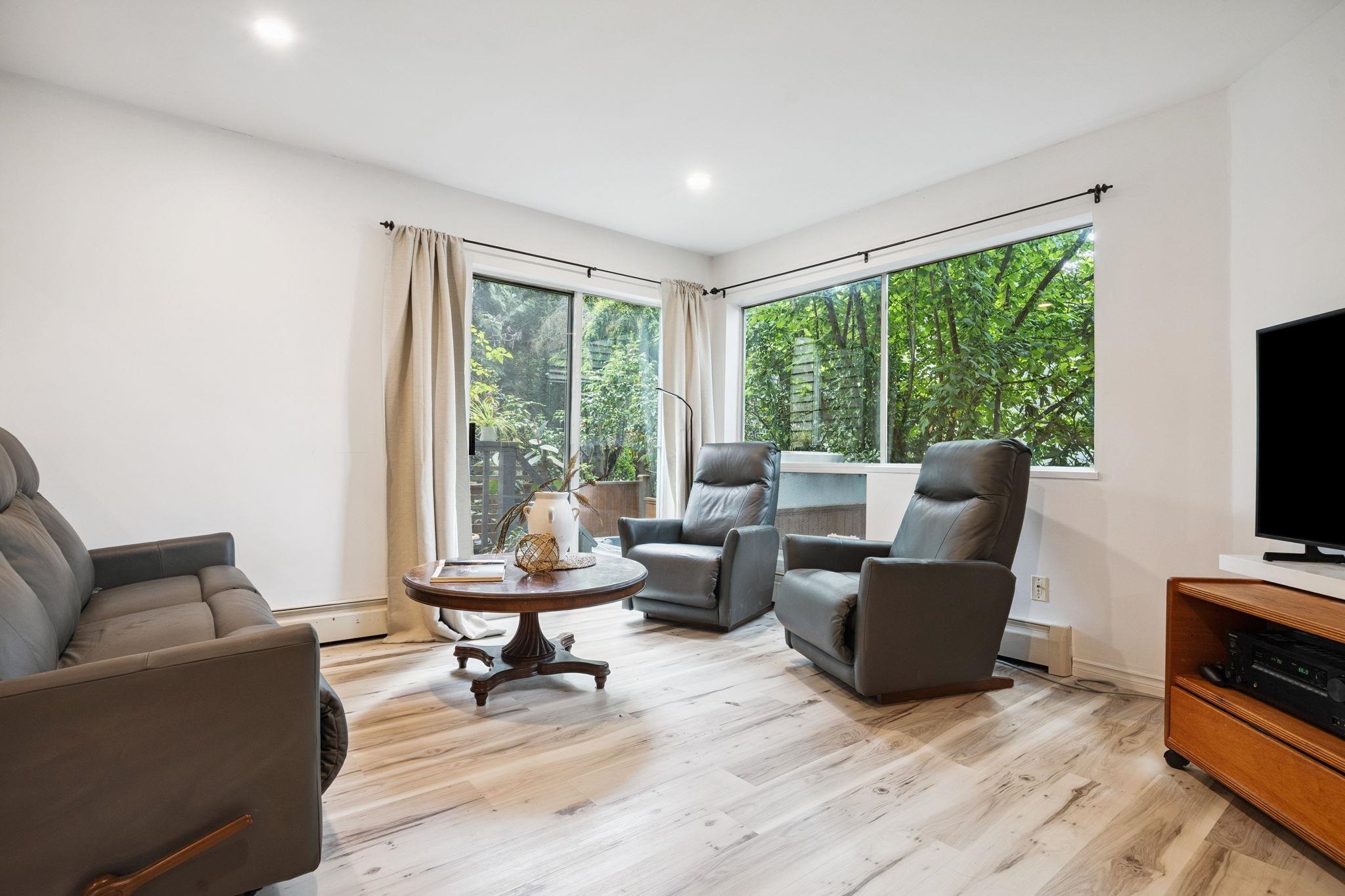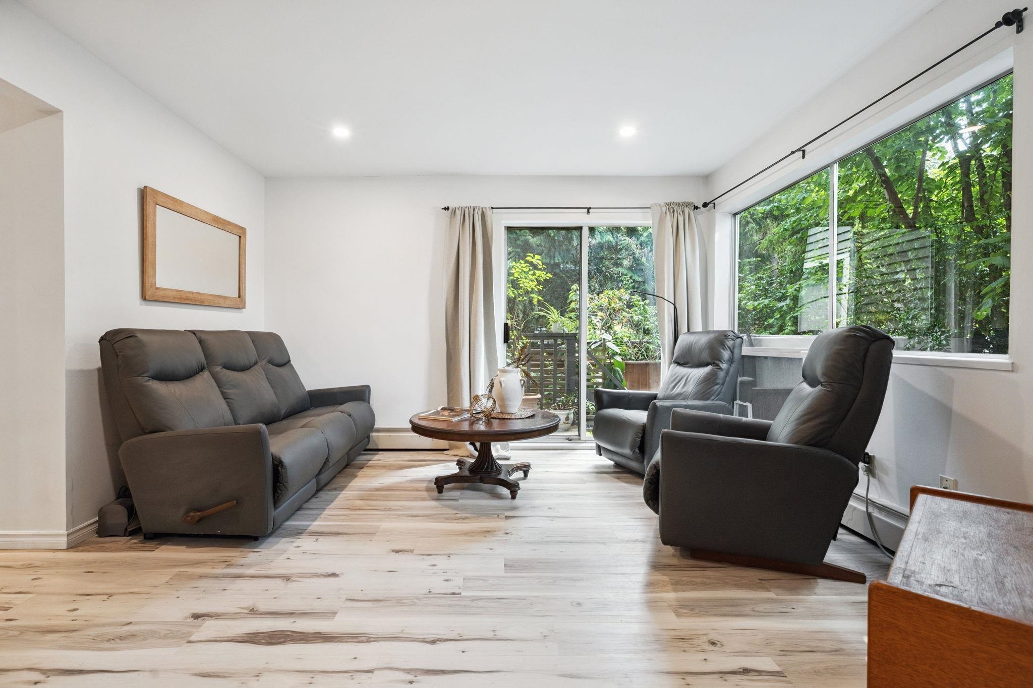 AMAZING VALUE! Rare opportunity to own this spacious 2,350 SF renovated townhome in the heart of Port Moody! This bright 4 bed + den, 2.5 bath home features skylights, generous room sizes, and a double garage. Main level offers an updated kitchen with newer Cafe appliances, butcher block counters, 220V electrical upgrade, and a large living room with deck access. Downstairs, enjoy a private fenced yard with sun deck perfect for relaxing or entertaining. Upstairs has 4 beds incl. a king-sized primary with wa...