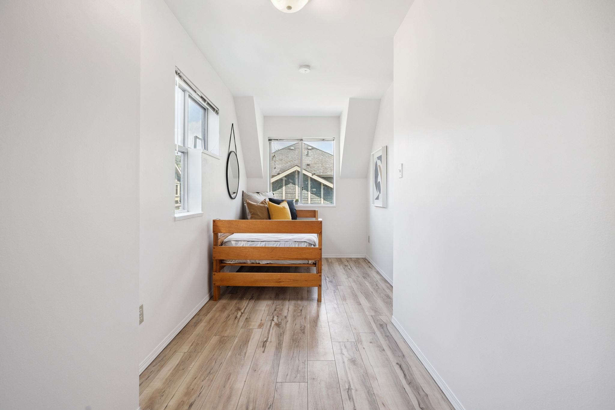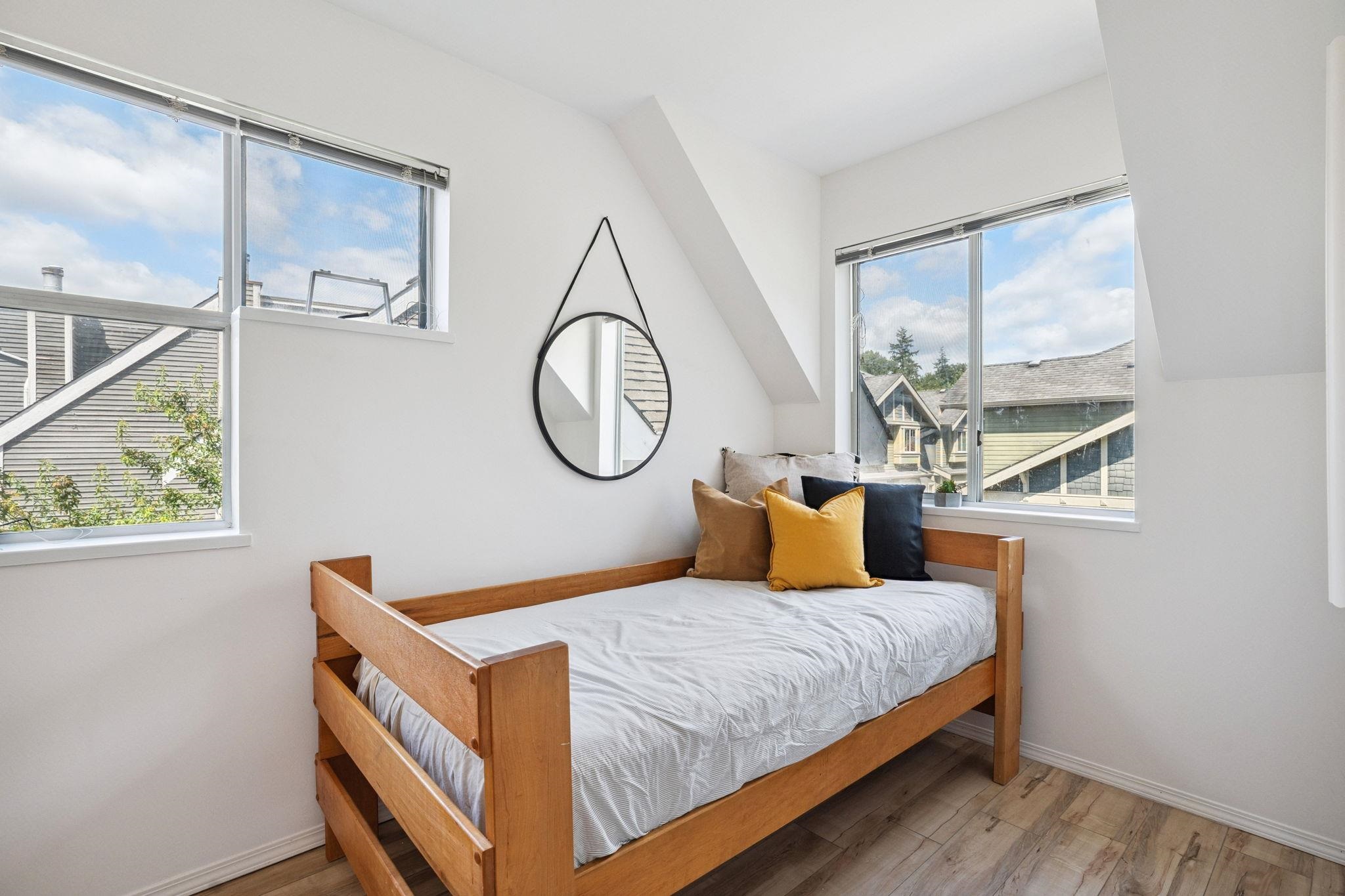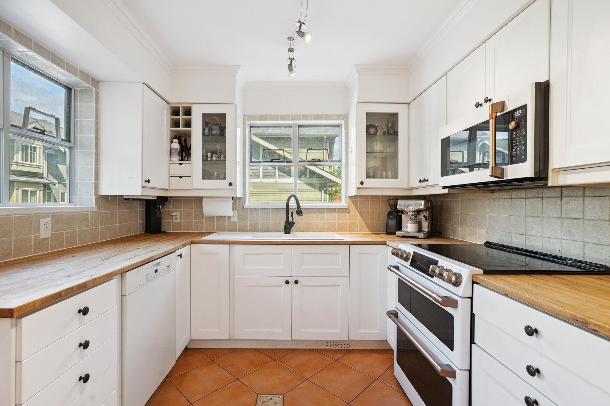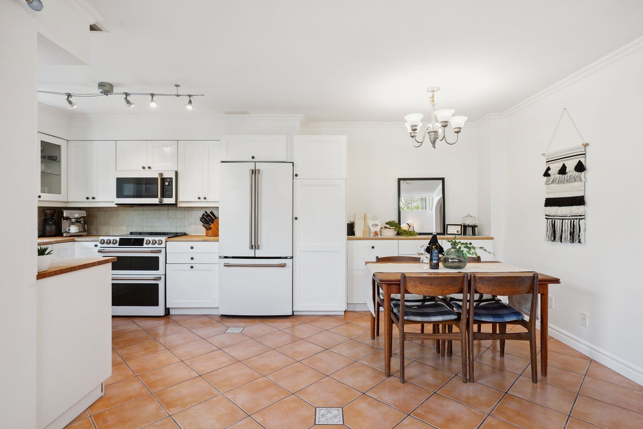 AMAZING VALUE! Rare opportunity to own this spacious 2,350 SF renovated townhome in the heart of Port Moody! This bright 4 bed + den, 2.5 bath home features skylights, generous room sizes, and a double garage. Main level offers an updated kitchen with newer Cafe appliances, butcher block counters, 220V electrical upgrade, and a large living room with deck access. Downstairs, enjoy a private fenced yard with sun deck perfect for relaxing or entertaining. Upstairs has 4 beds incl. a king-sized primary with wa...