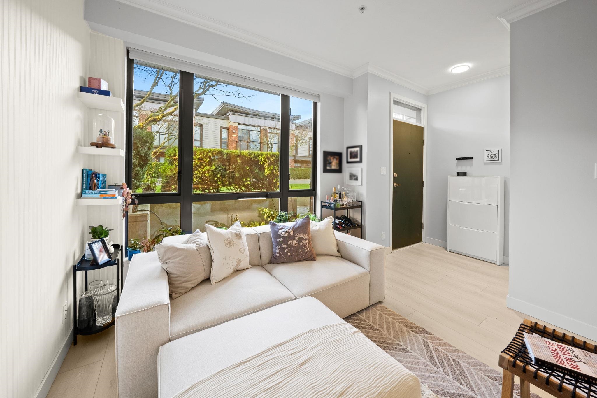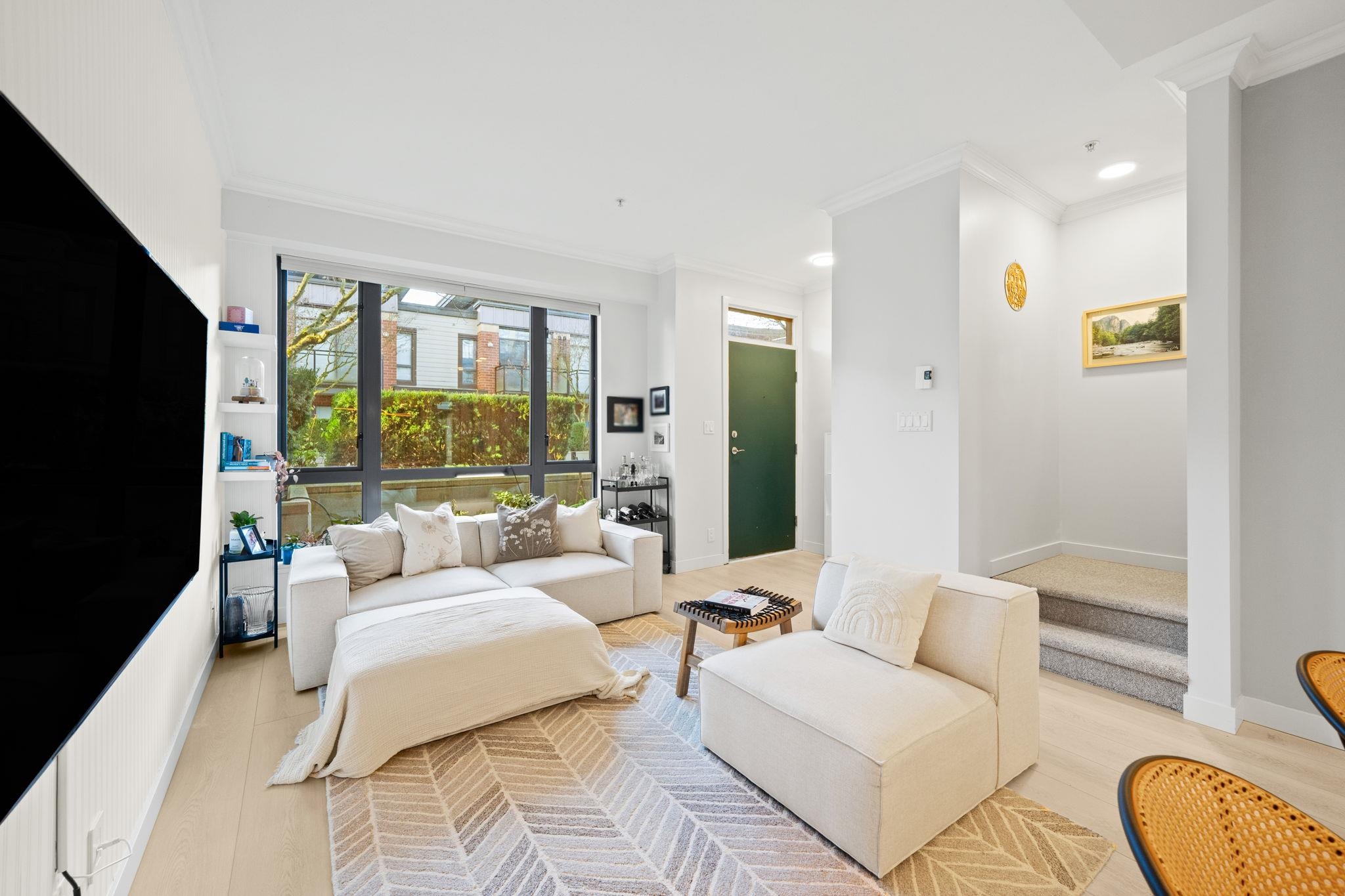 One of best locations in Port Moody - Suter Brook Village! At your doorstep: restaurants, groceries, cafes, shopping, gyms, & just steps to Rocky Point Park, Brewers Row & skytrain. Beautifully maintained & efficient open concept floorplan in this 3 bed 3 bath 1337 sf 2 level townhouse! (3rd bed does not have a closet). Spacious main flr feat large living/dining rooms w/ luxury vinyl flooring, kitchen w/ stone counters, tons of cabinetry, 2 year old appliances & centre island, + 3rd bed or office & powder r...
