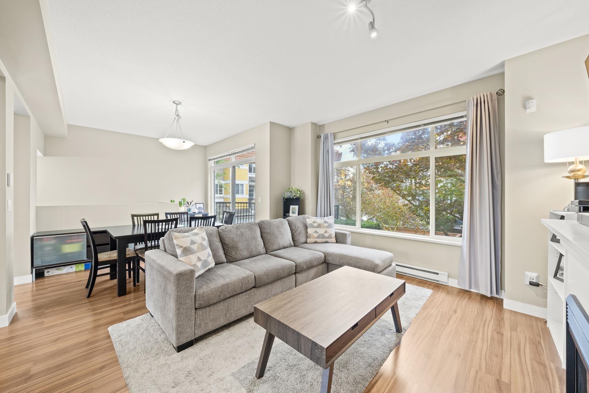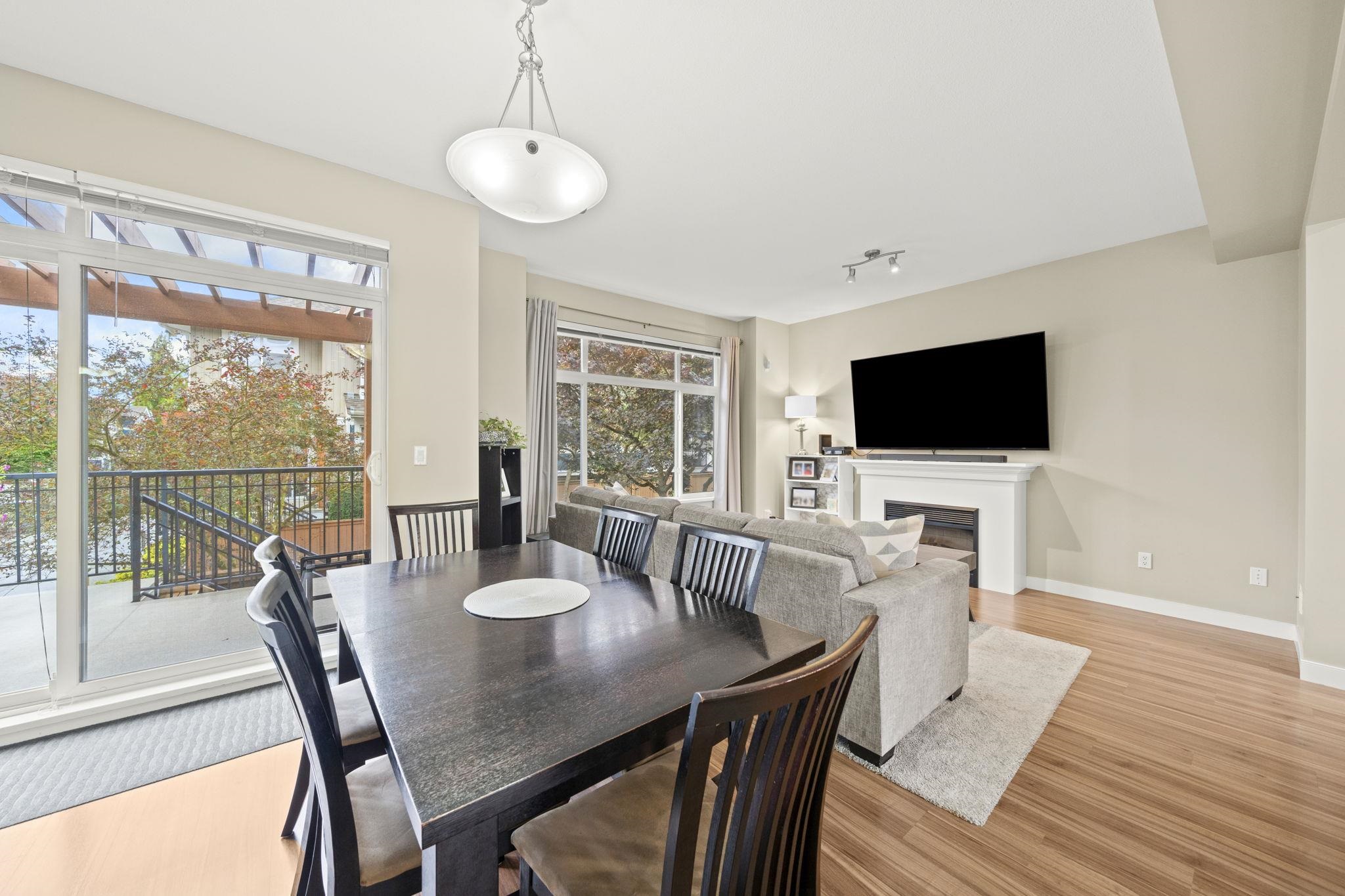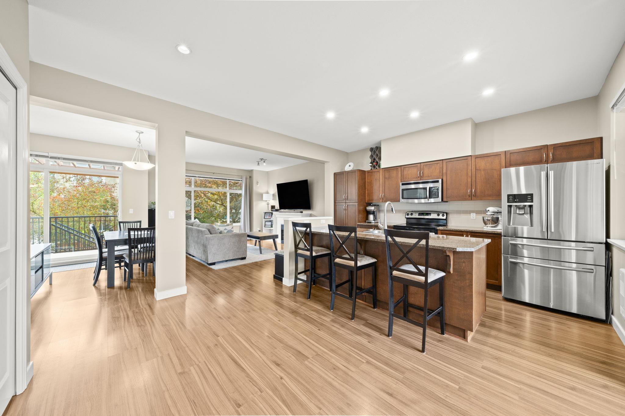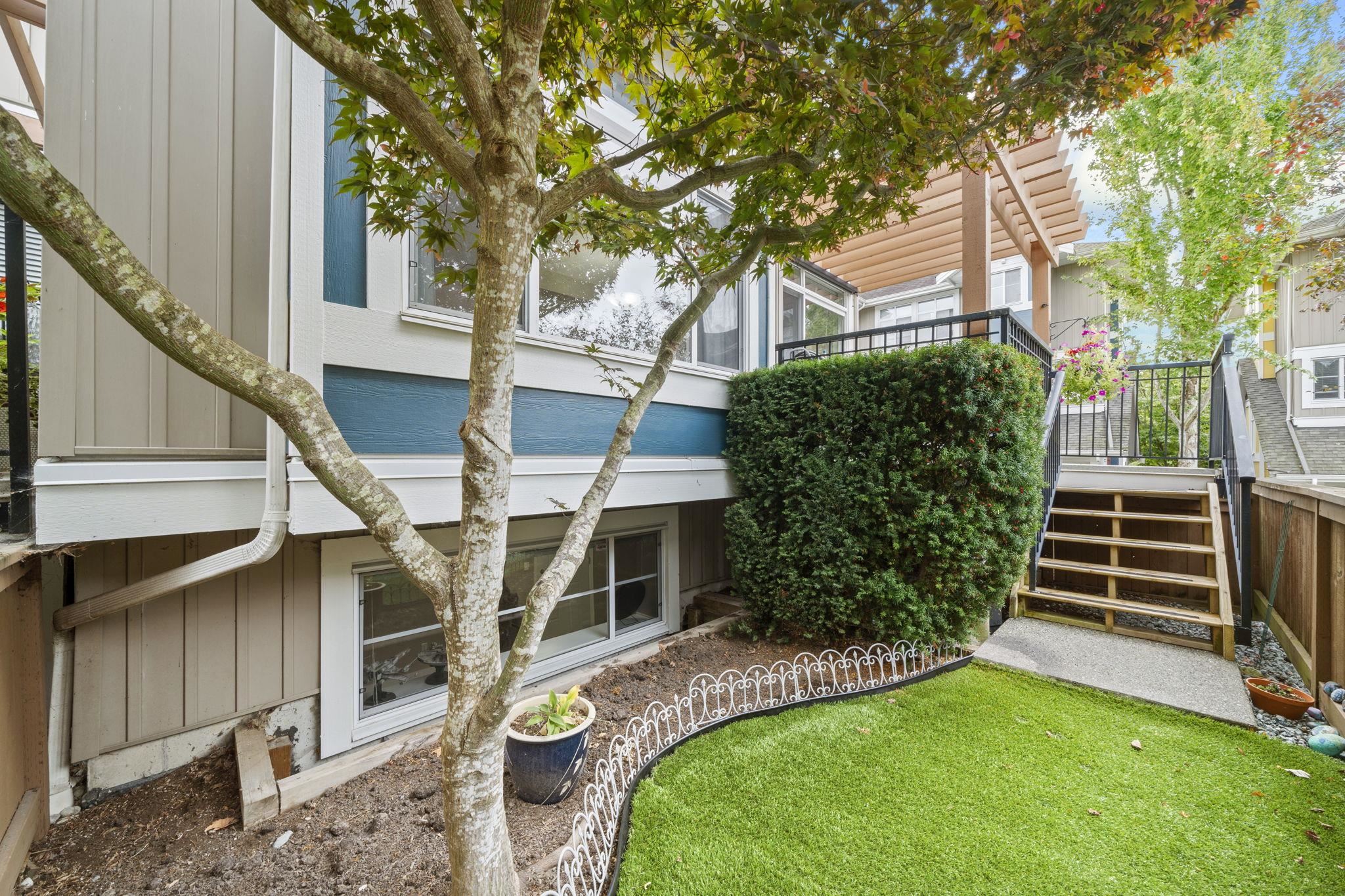 "Arbour Village". Must see this Beautiful 3 bed + Rec room End Unit Townhome boasting approx 1800 sq ft of open concept living space that has been meticulously maintained to the highest standard. This is the layout and location you've been waiting for; not only because it's an end unit/corner unit with additional windows, front and back balconies, a maintenance free backyard and parking for 4 cars (which includes side x side garage) but also a rec room on the lower level and an entertainment size main floor...