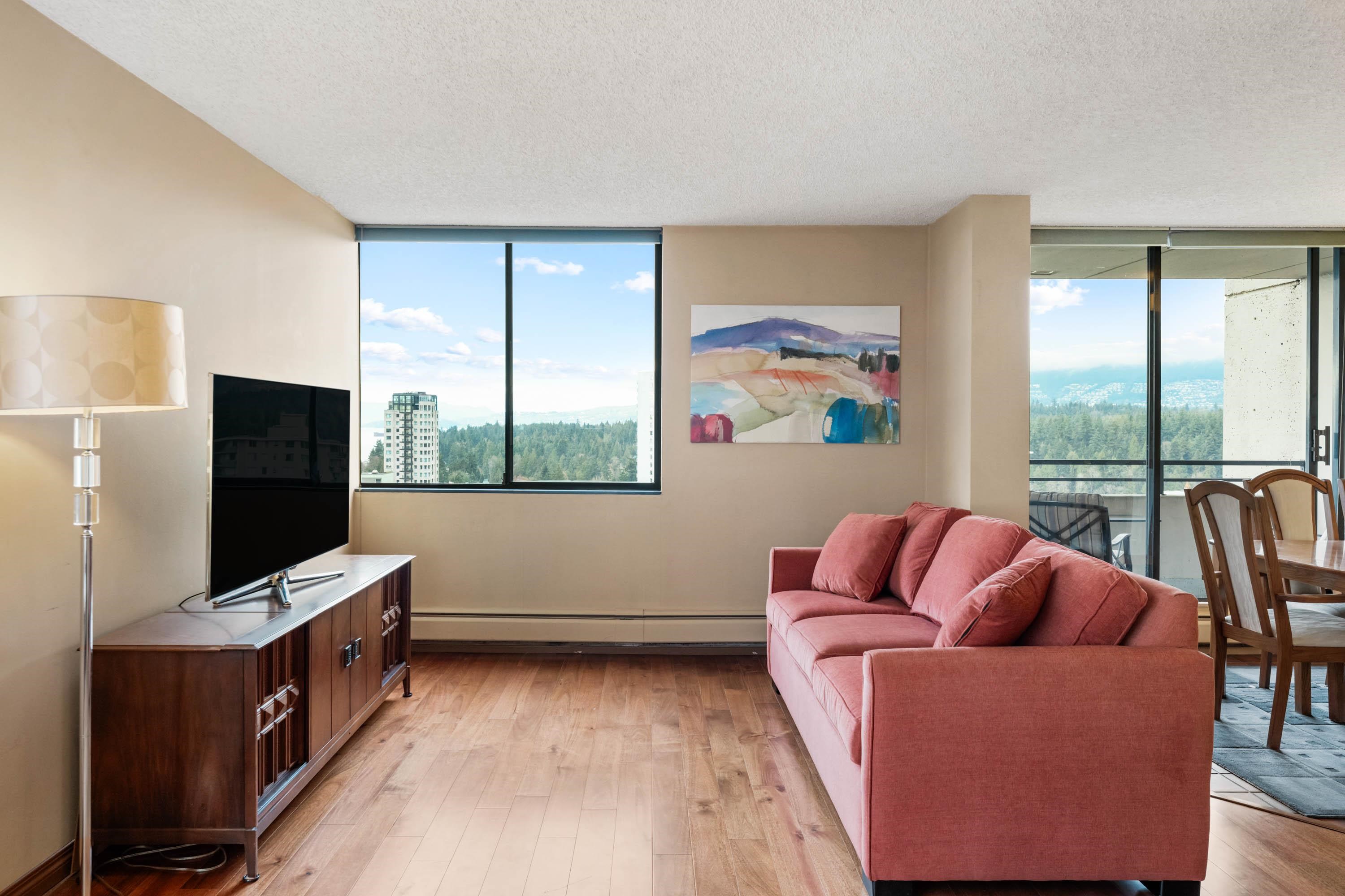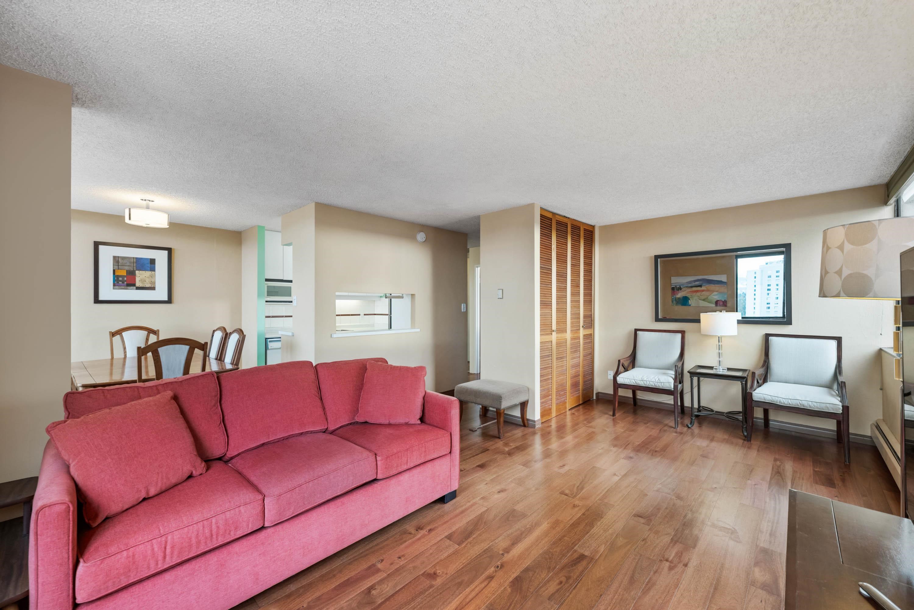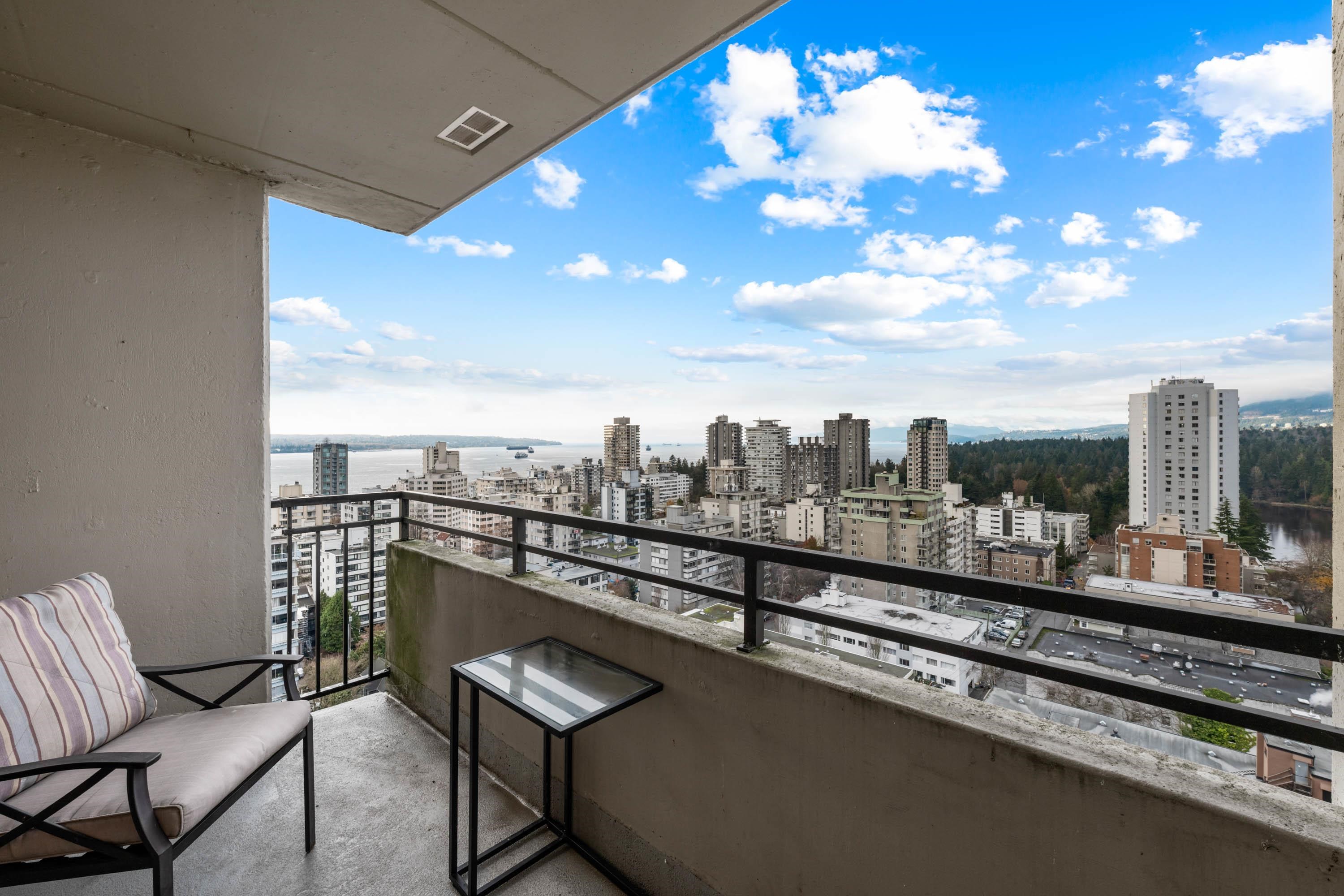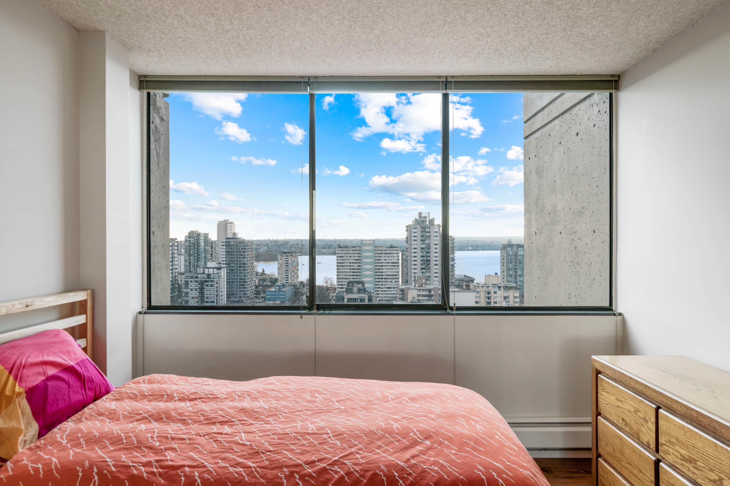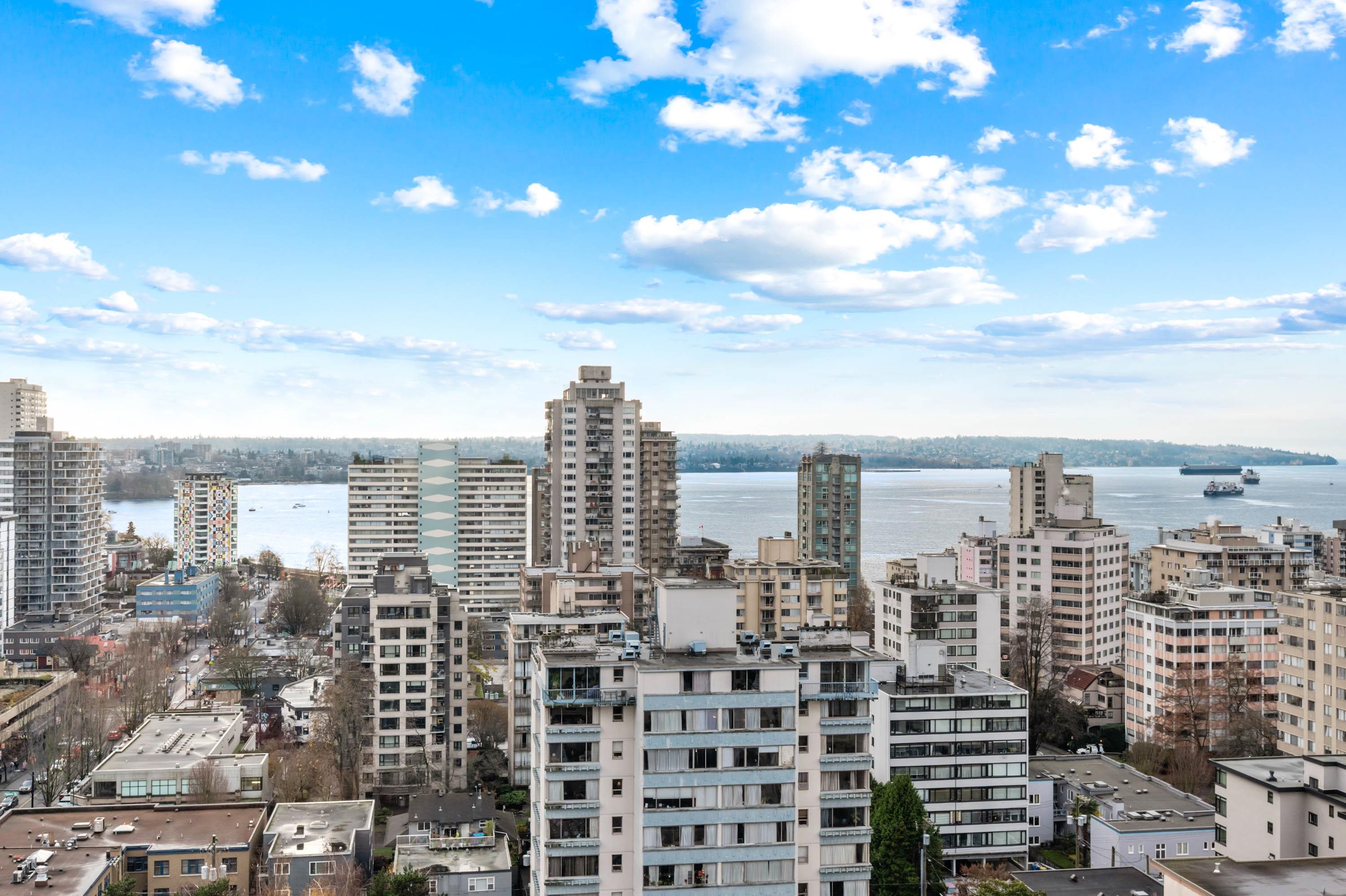 STUNNING ENGLISH BAY, STANLEY PARK & MOUTAIN VIEWS from every window! Coveted rarely available 20th floor, southwest facing corner unit boasts million dollar views and sunsets. Wake up to the sounds of waves washing up on the beach and birds flying through Stanley Park. This 731 sq.ft 1 bedroom and den has been carefully maintained by the owner. Real hardwood floors installed in 2017. The private patio on the quiet side of building opens up from the dining room & kitchen. Huge outdoor swimming pool with a p...