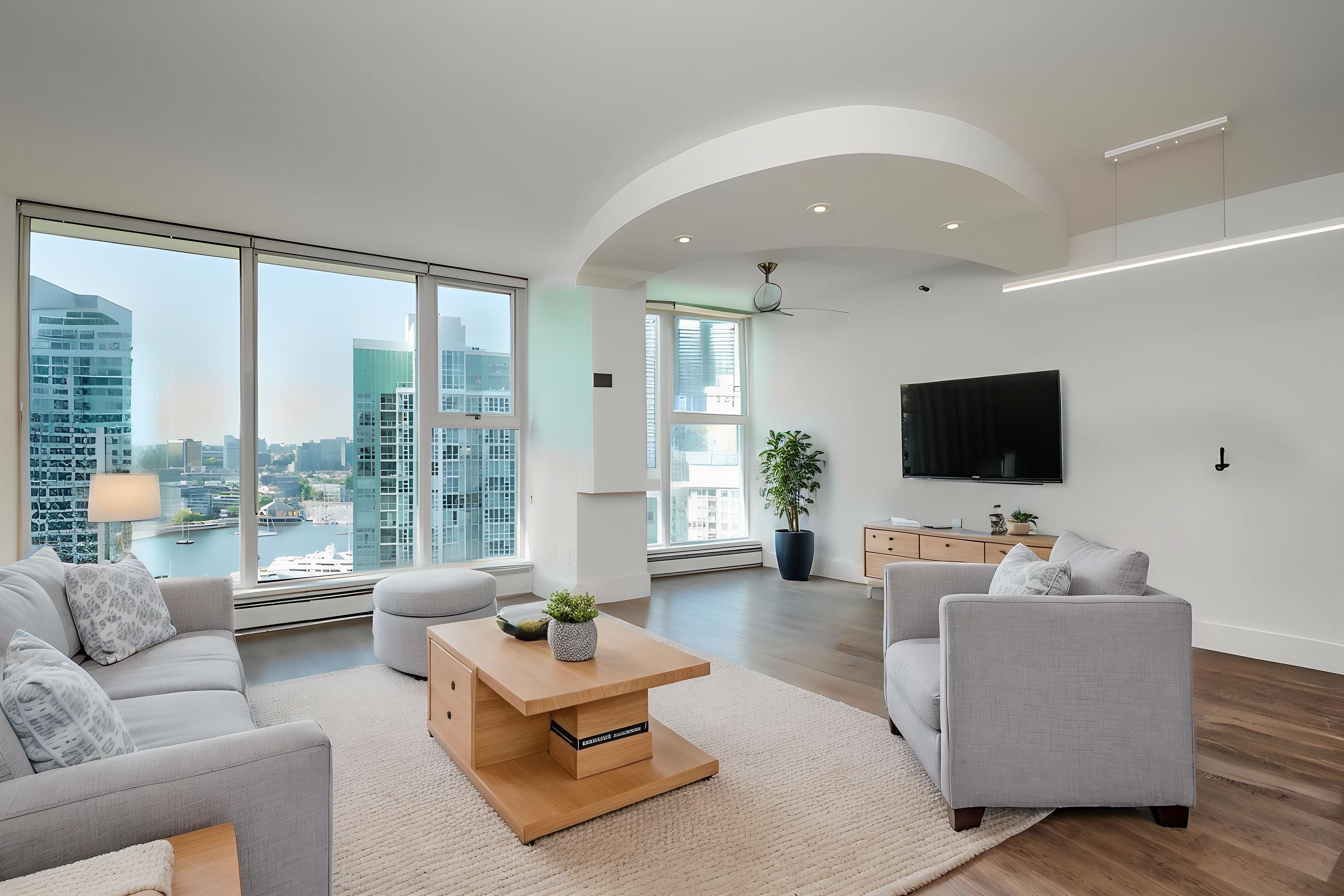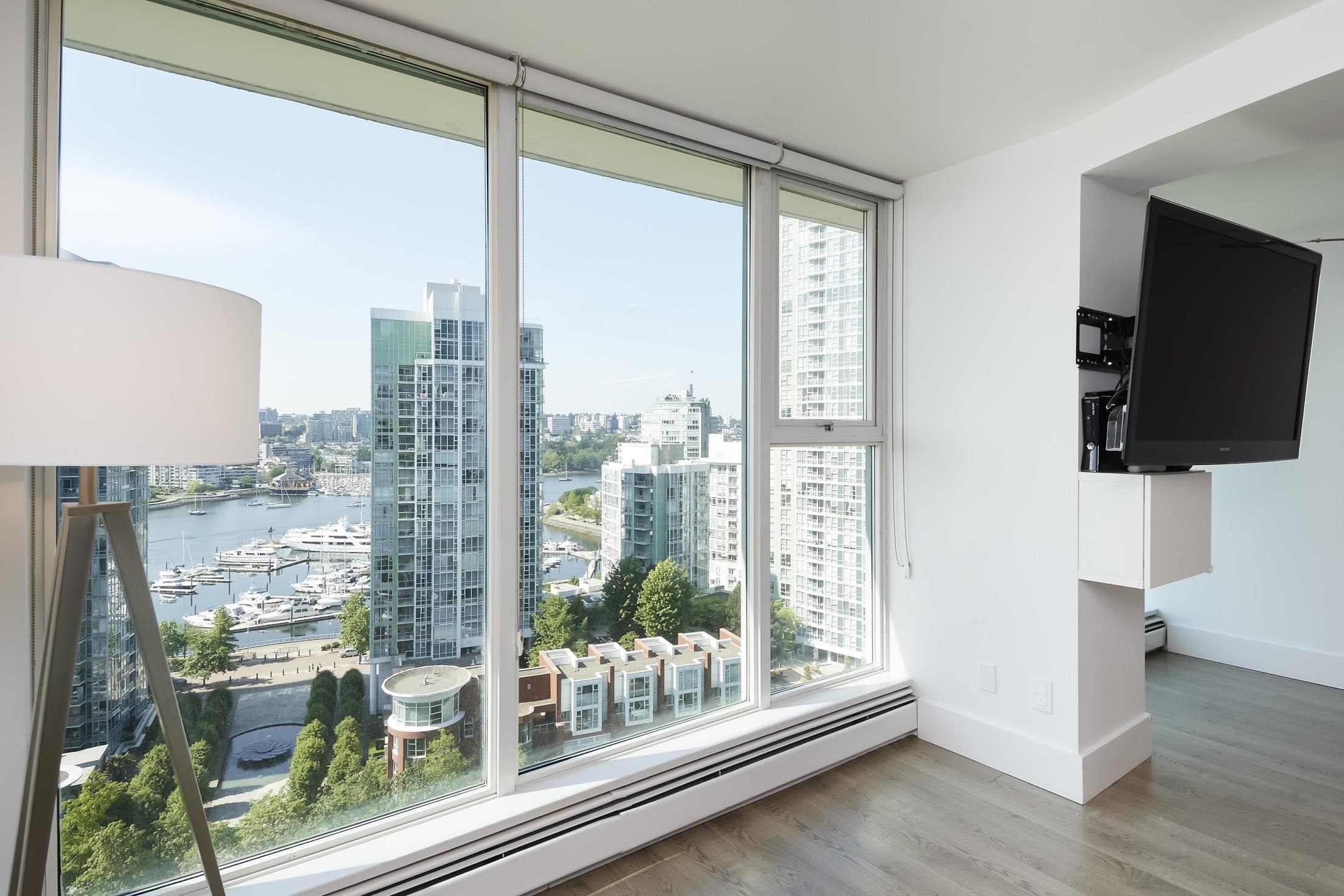 Gorgeous, bright, south-facing suite with sweeping False Creek water views from all principal rooms. This home offers two spacious bedrooms, two full baths, and a large flex space that’s perfect for a home office. Thoughtful updates include energy-efficient appliances, renovated bathrooms, refreshed flooring, upgraded lighting, plus smooth ceilings for a clean, modern finish. Enjoy the benefits of a well-built concrete building with enviable amenities including an indoor pool, fitness centre, billiards and ...