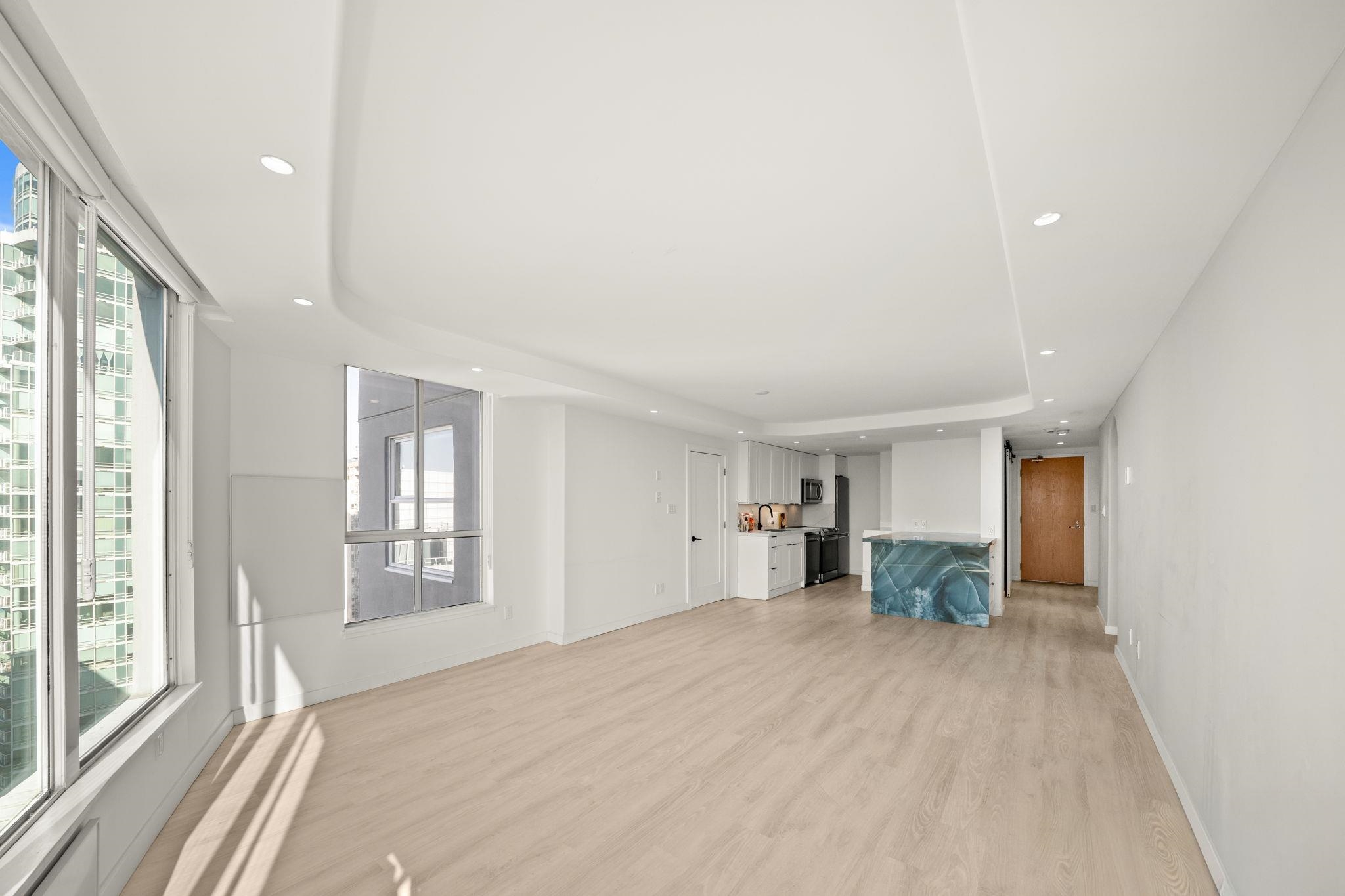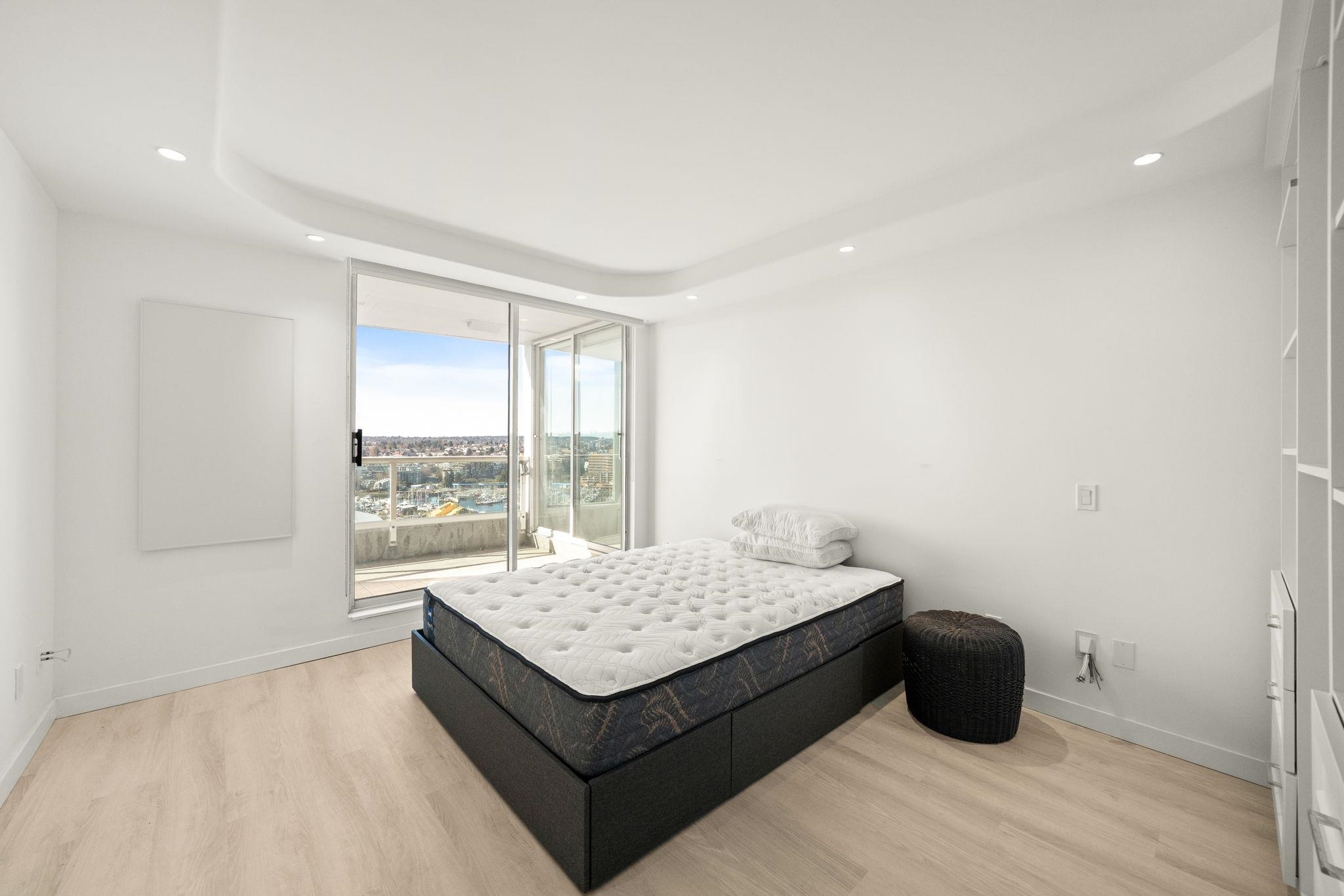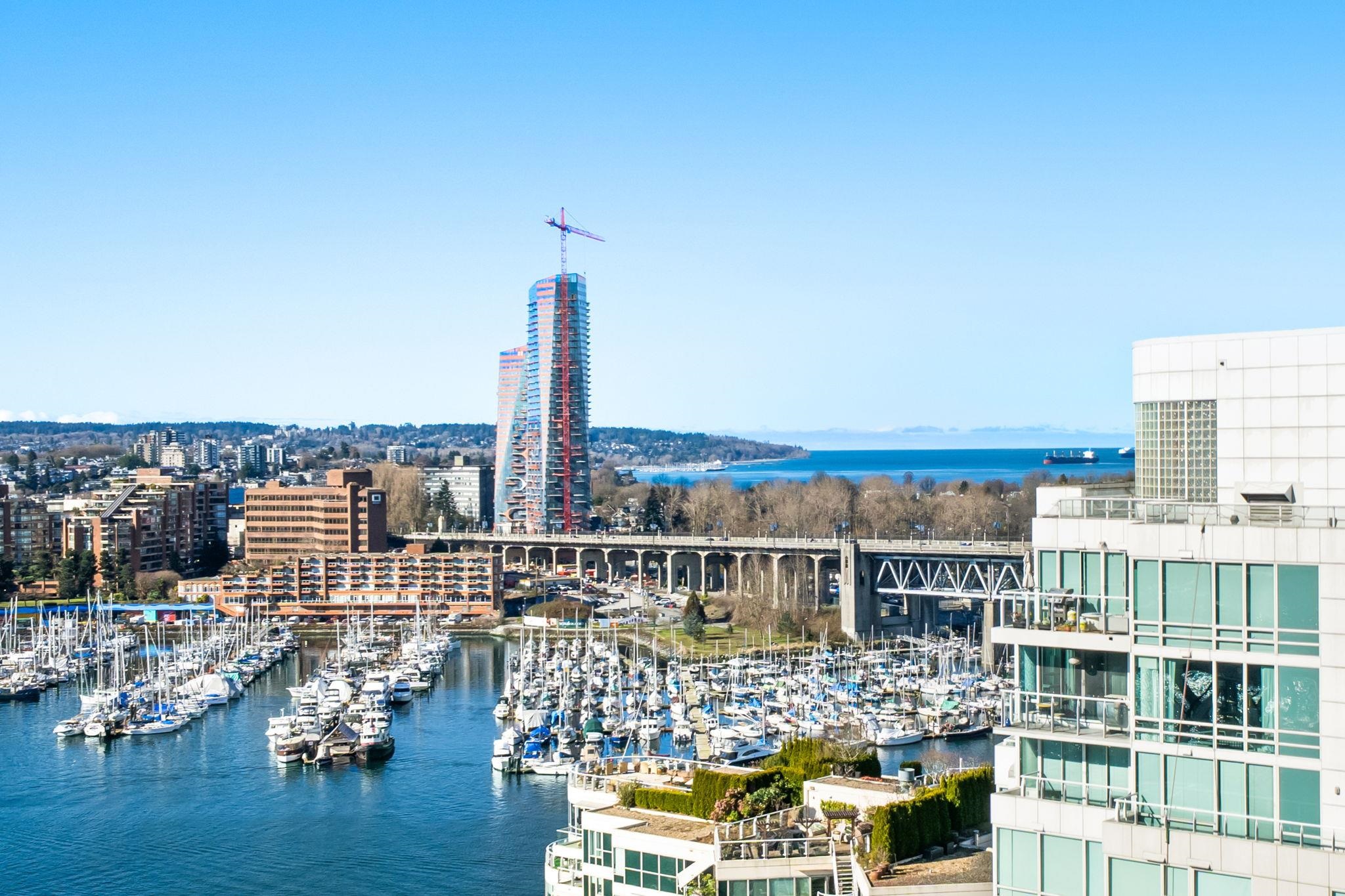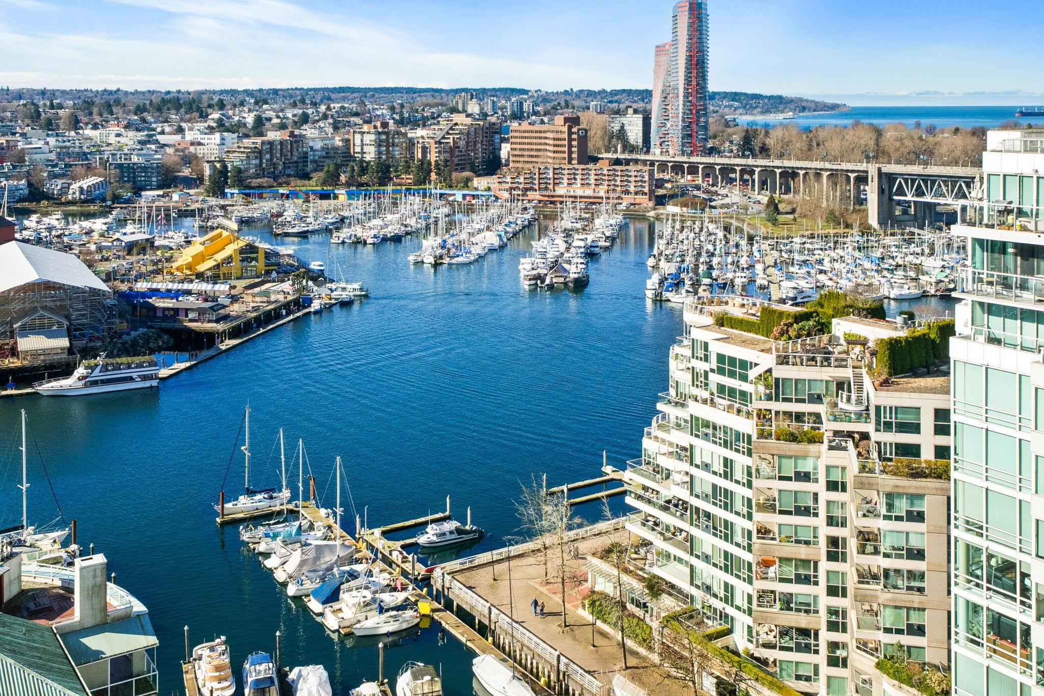 Stunning WATERFRONT views from this renovated two bedroom home at The Discovery! This 2 bed, and 2 full bath home boasts over 970 Sq. Ft. of living with a large south facing patio and picturesque windows showcasing breathtaking, expansive views of the marina, downtown, Granville Island, and the mountains. Hardwood flooring throughout all the main living areas, This home is outfitted with high-end stainless steel appliances, like new washer/dryer and high efficiency heating. Hotel-like amenities include work...