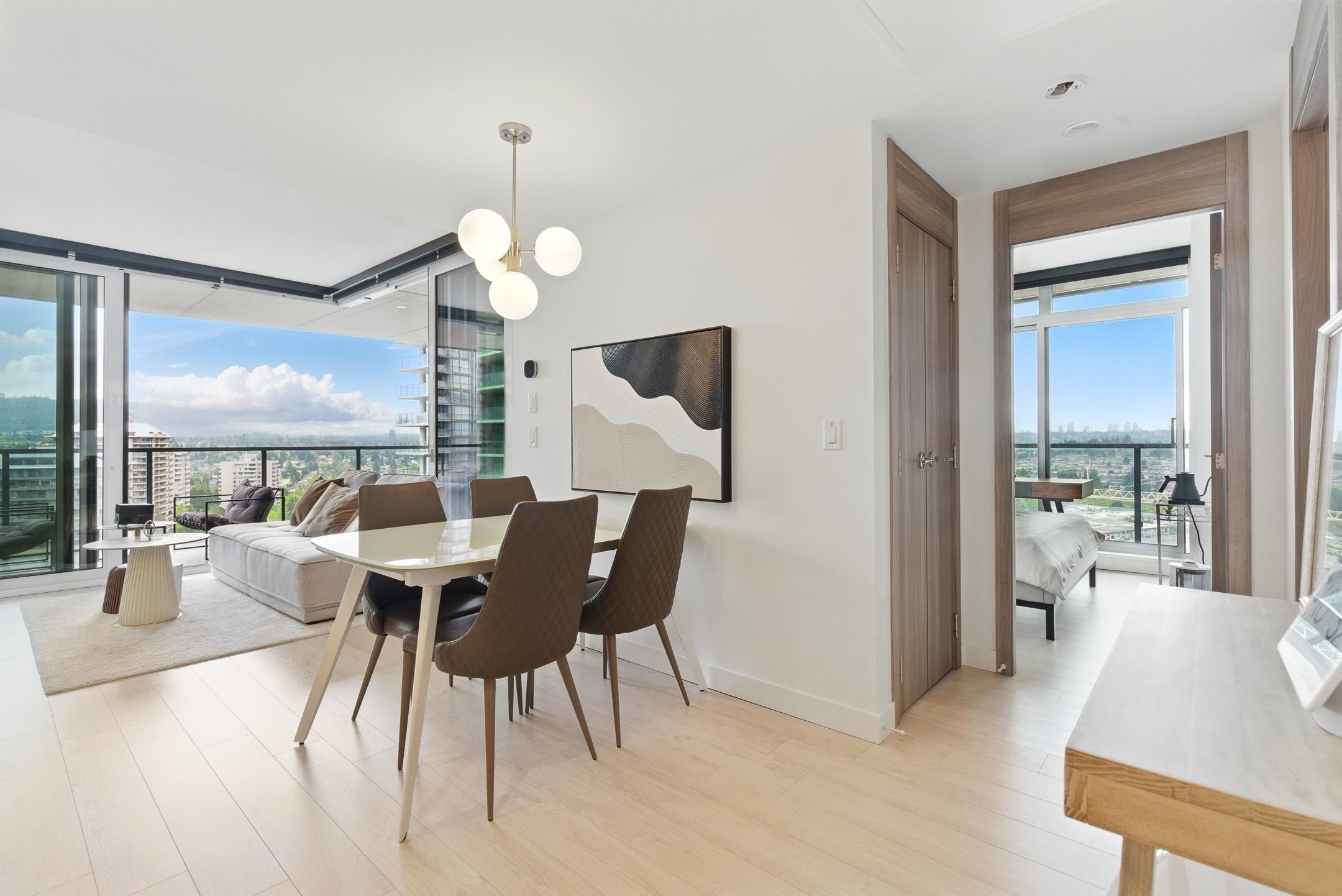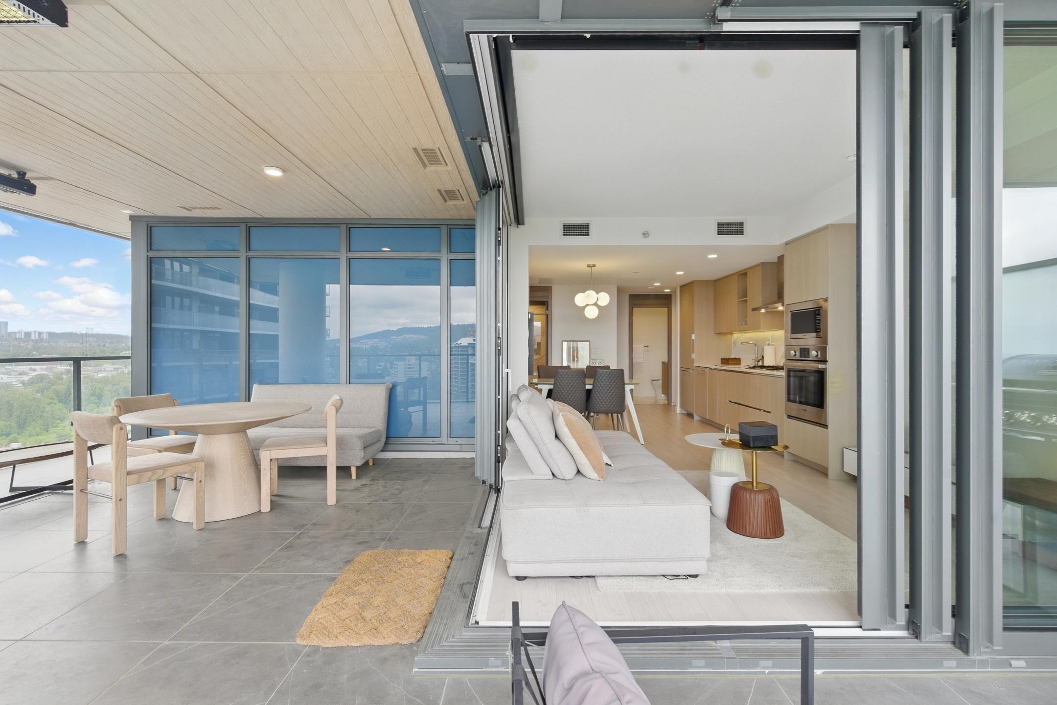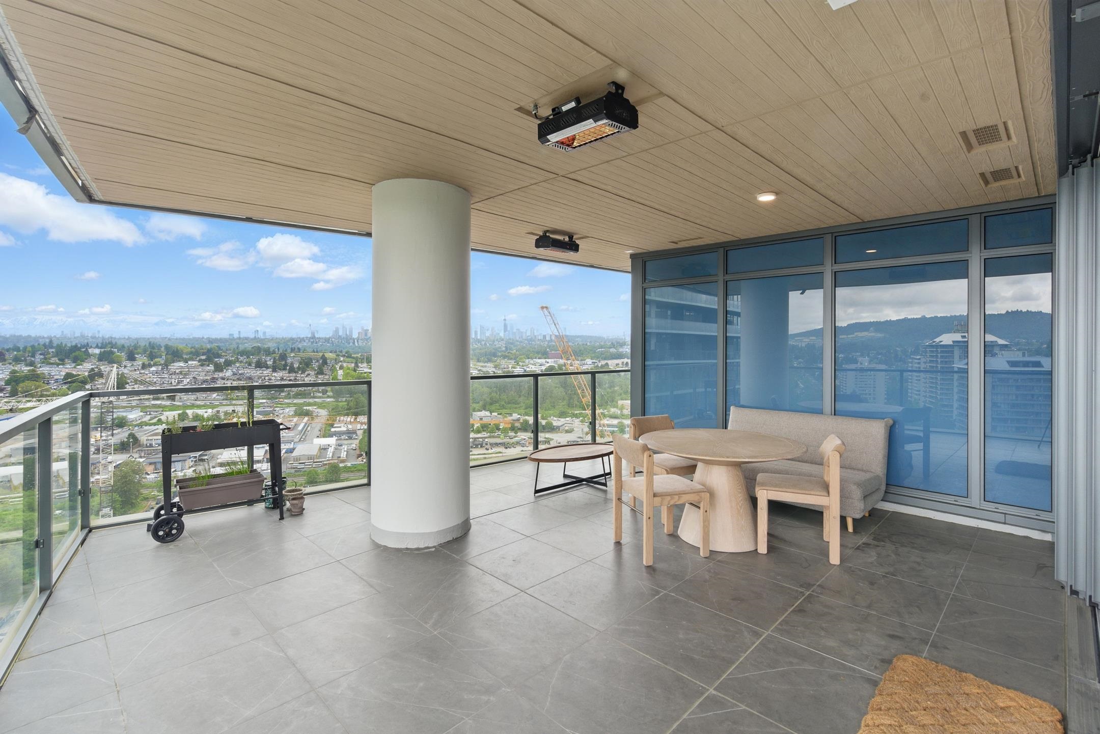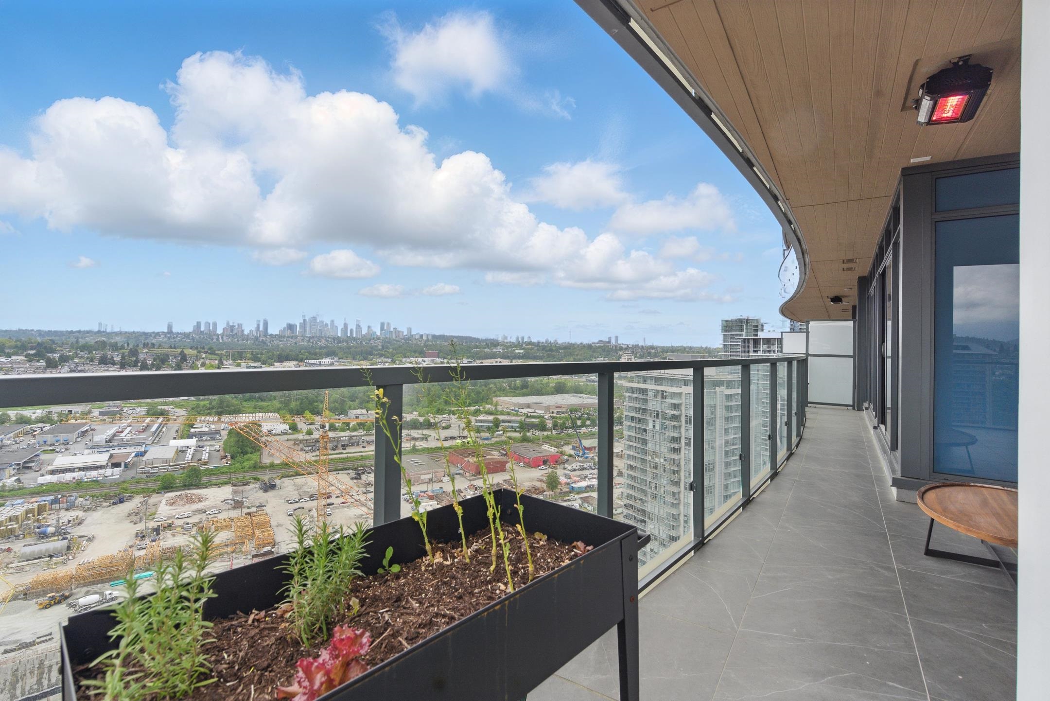 New 2b2b corner unit at Concord Brentwood Hillside East — This southeast-facing home offers a smart layout with premium appliances, with AC, 8'8" ceilings, and expansive floor-to-ceiling windows that fill the space with natural light. Custom closet organizers are also included. Step out onto the impressive huge wraparound balcony with stunning mountain and city views, complete with radiant ceiling heaters, porcelain tile flooring, and LED lighting—perfect for year-round use. The unit includes 1 parking and ...