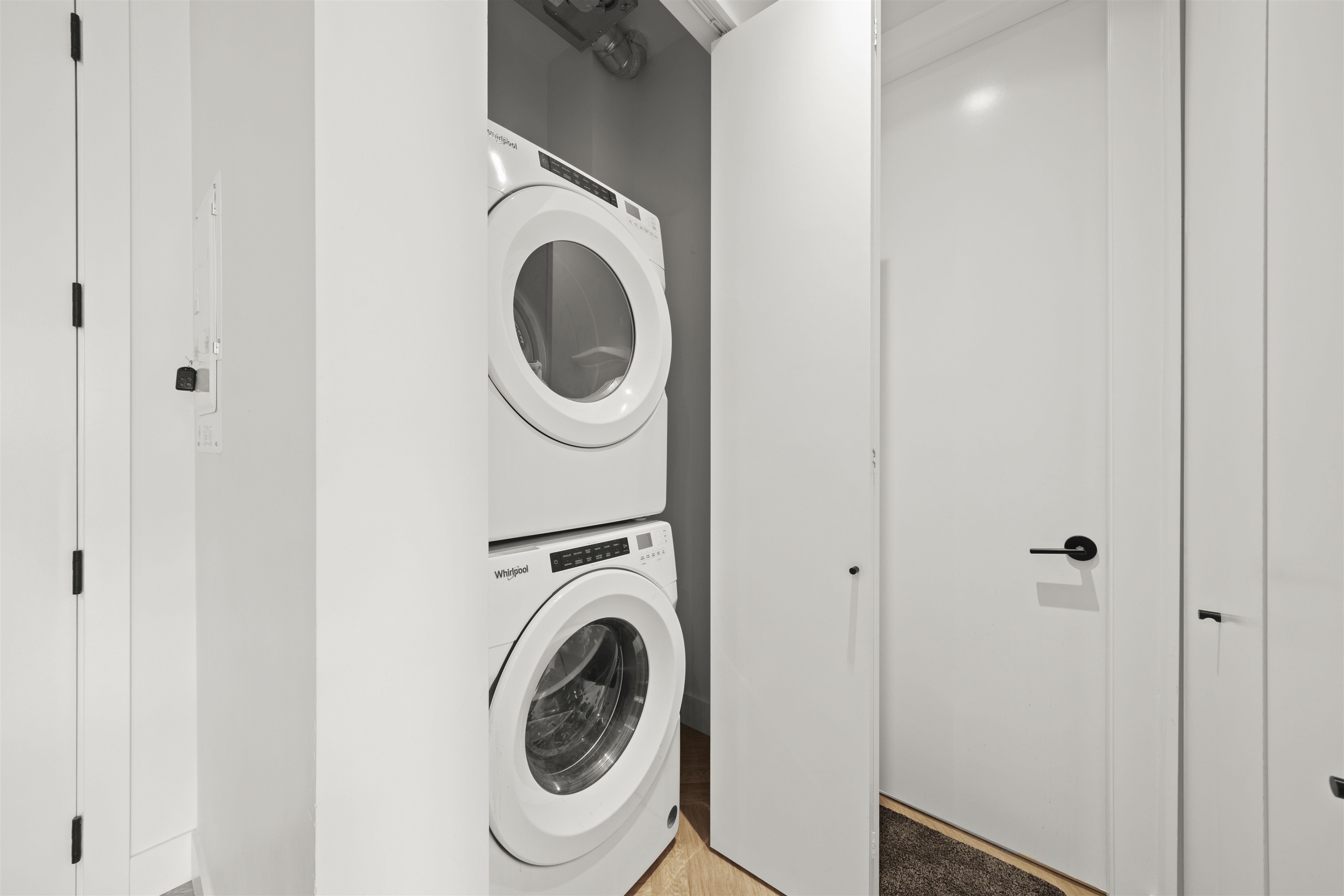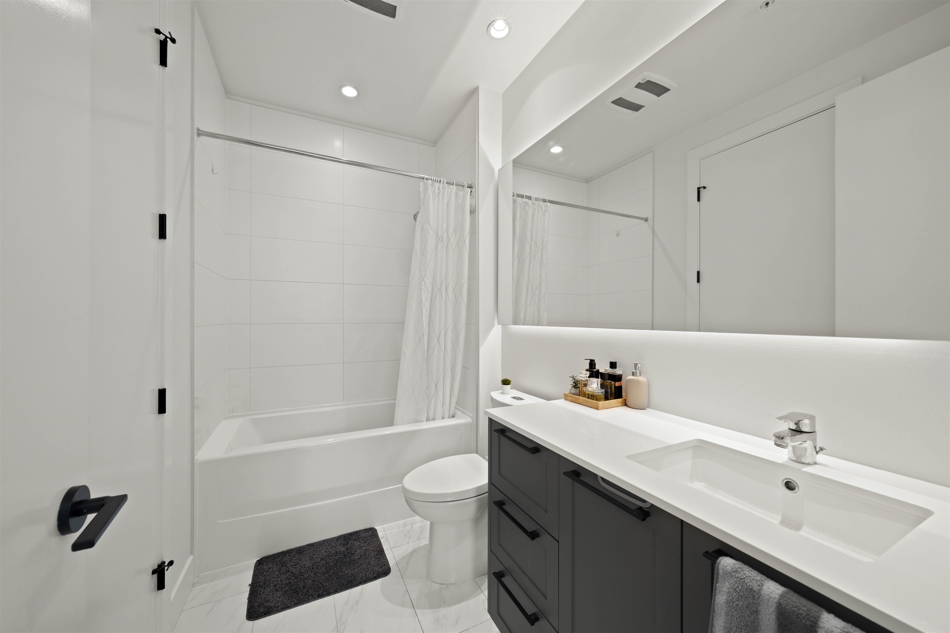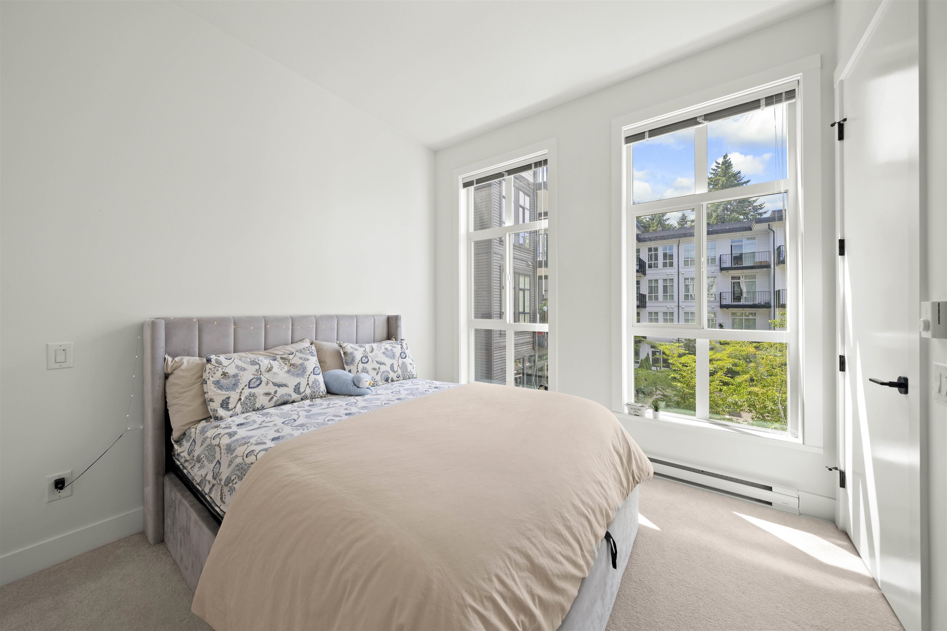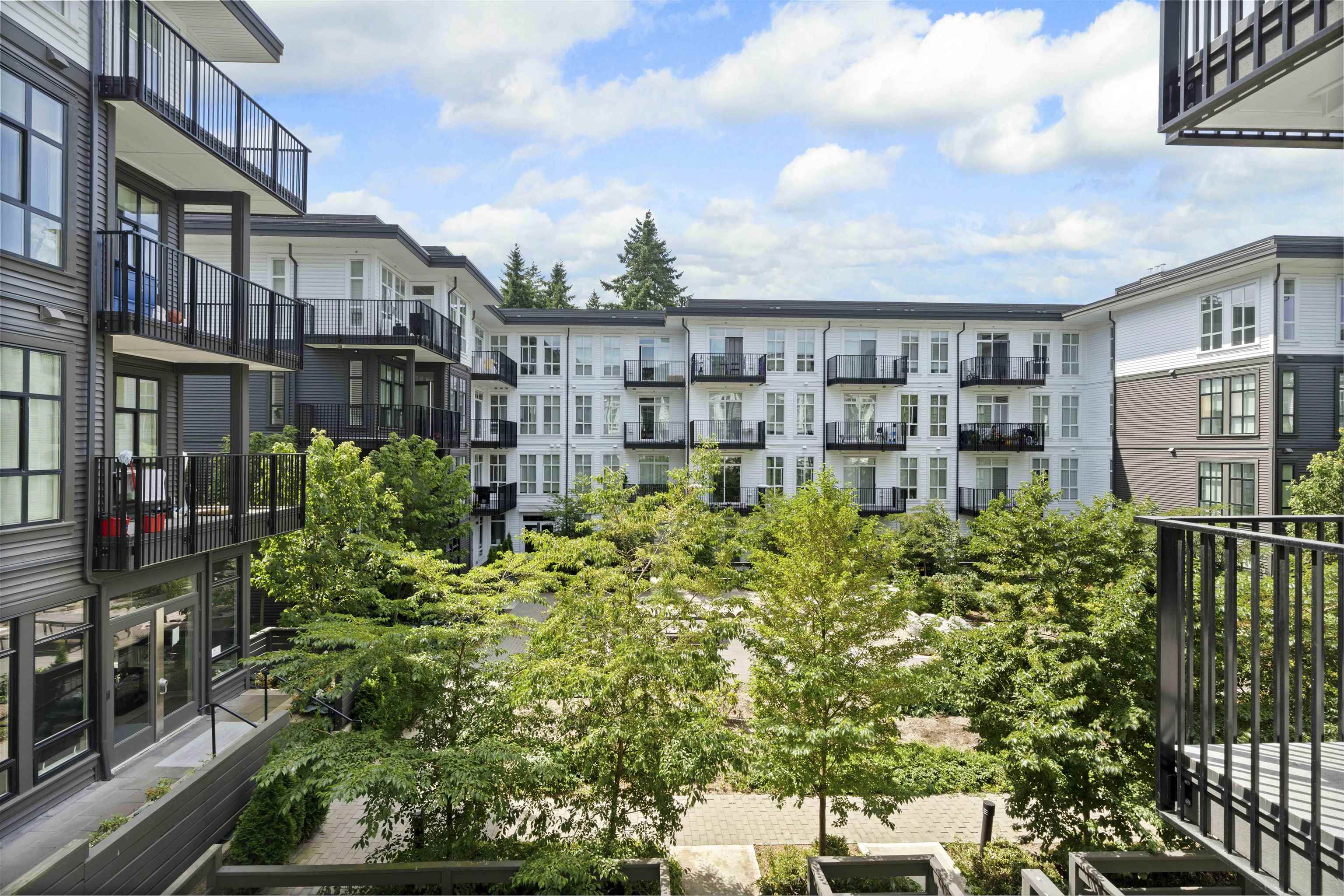 PARKER BY MOSAIC! This large 1 bed 1 bath west facing home come with 1 parking is perfect to live in or invest! Immediately notice the 10 FT ceilings in this bright home and appreciate the timeless elegance of herringbone flooring met with contemporary, clean Scandinavian kitchen and bathrooms. Very efficient layout with oversized windows and patio looking out into the quiet courtyard. Whirlpool appliances, full-size laundry, recessed LED portlights, ambient lighting behind floating bathroom mirrors, quartz...