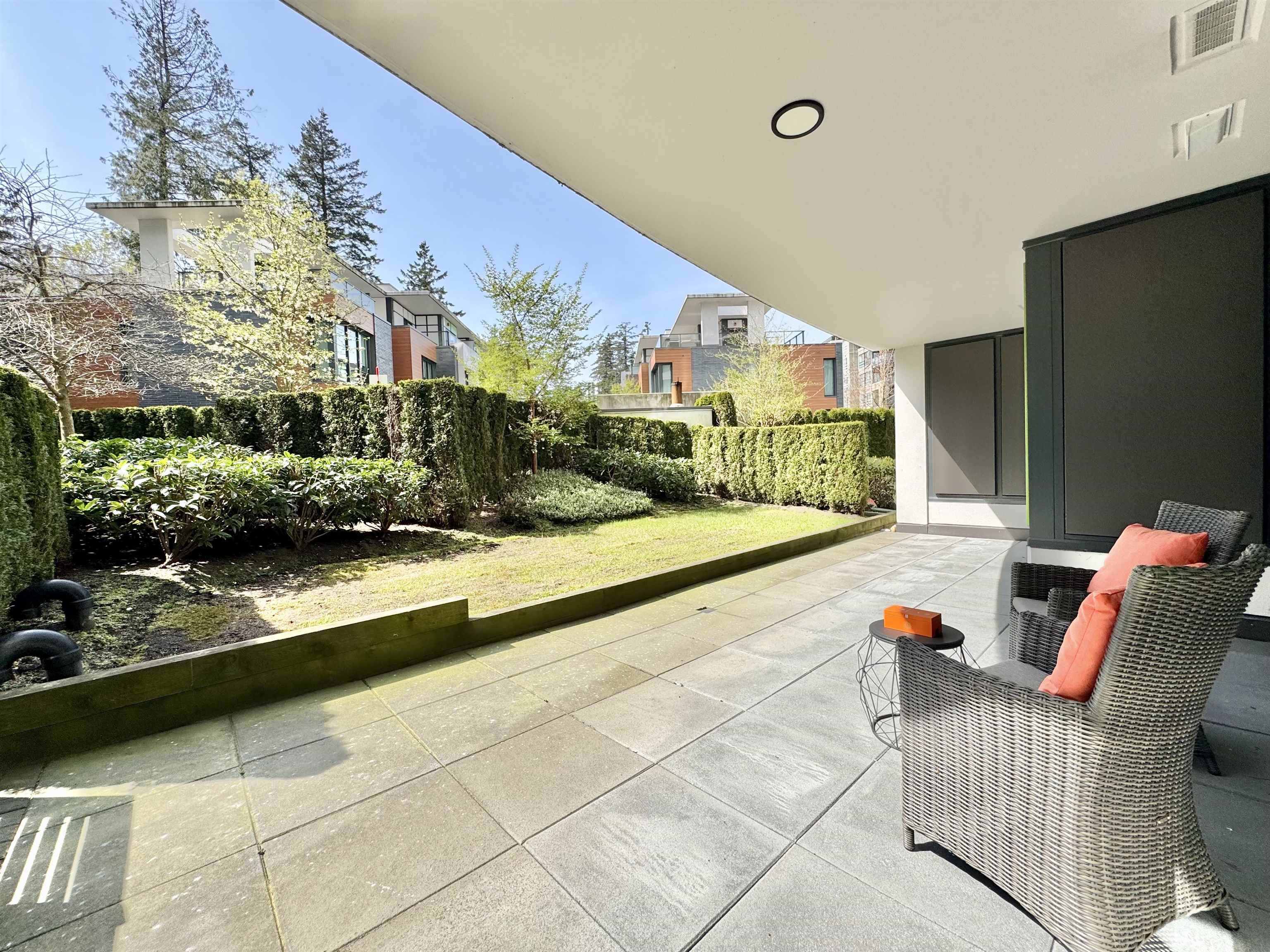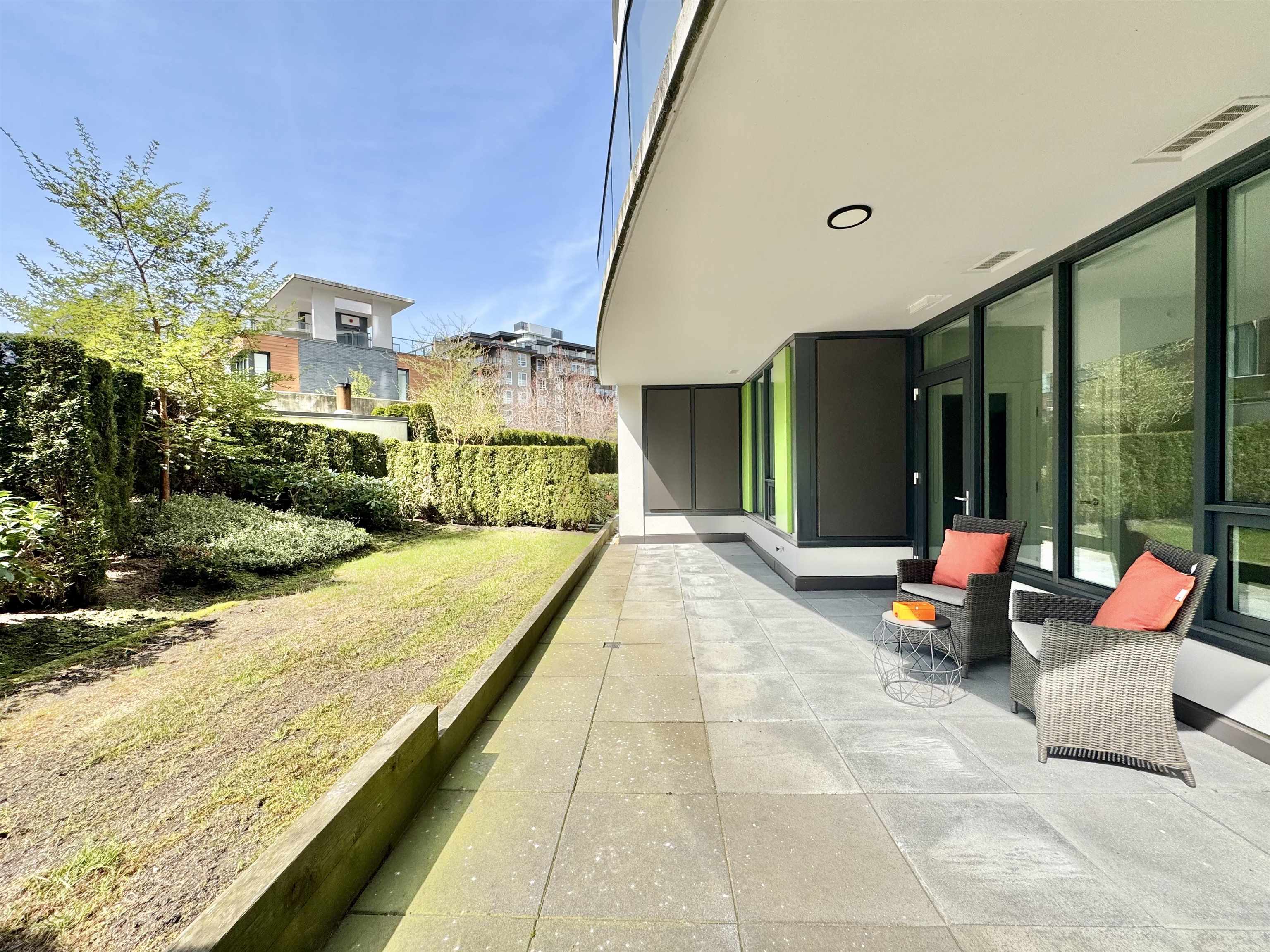 Rare opportunity with expansive private outdoor space. Step directly from the living area onto a spacious enclosed patio that opens to your own private lawn, perfect for indoor-outdoor living. This concrete, bright southwest-facing corner 1-bedroom, 1-bath home by Polygon features a highly efficient, open-concept layout with no wasted space. Enjoy premium appliances, air conditioning, and abundant natural light throughout. Ideally located in the heart of Wesbrook Village, just steps to everyday conveniences...