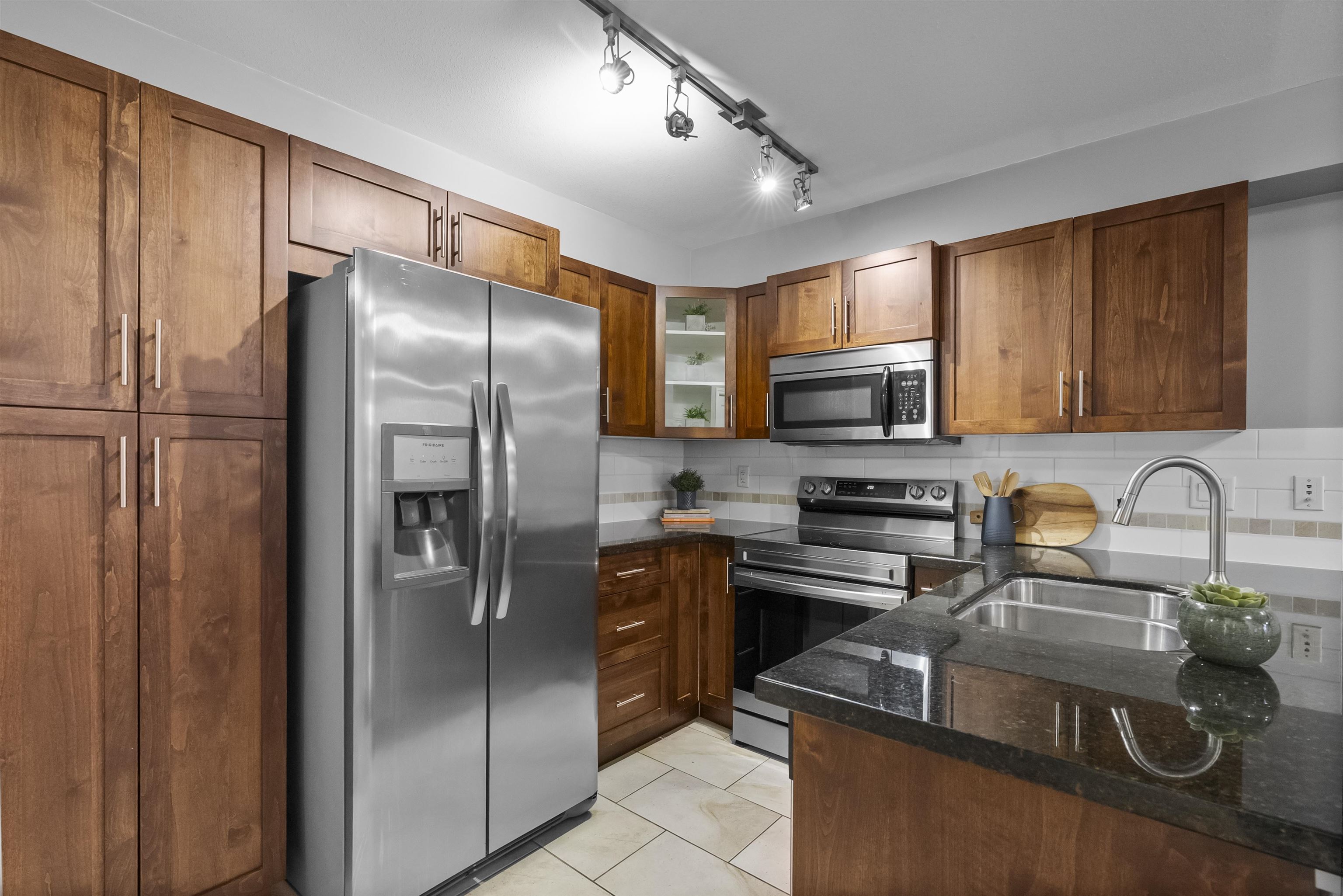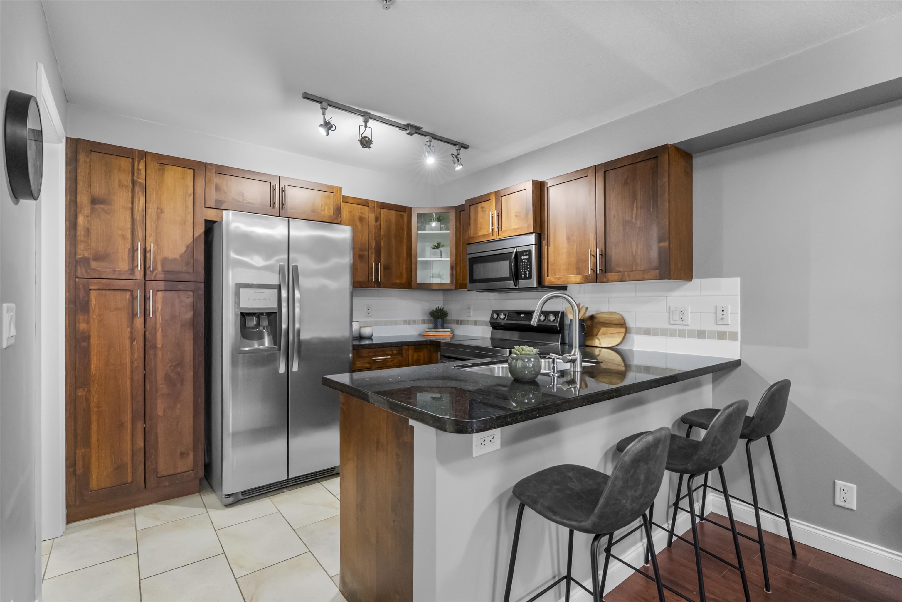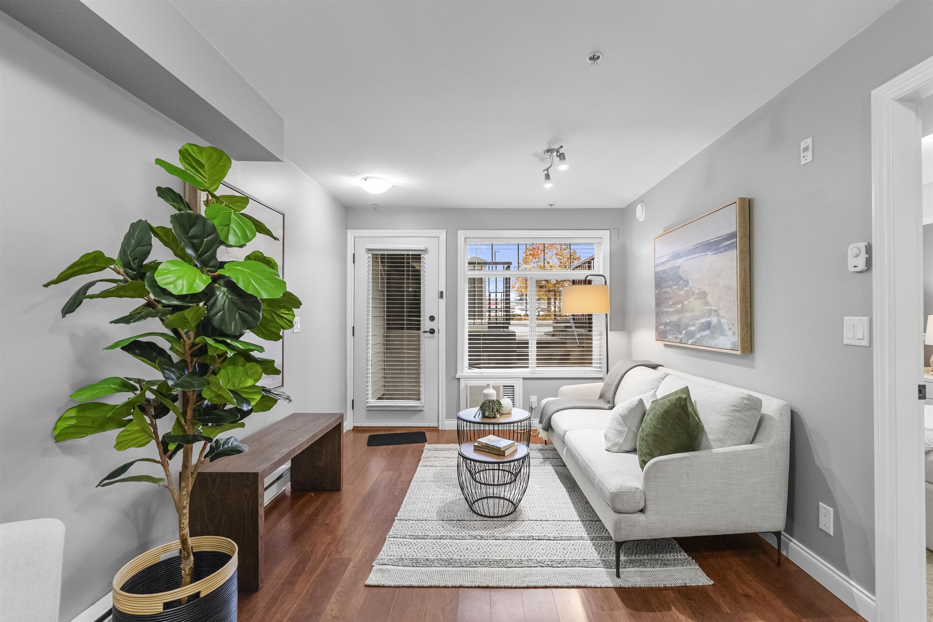 Immaculate one-bedroom ground floor condo is a must see. Bright, open layout features granite countertops, stainless steel appliances, and a semi-ensuite bathroom. New carpet in bedroom and den/storage space, fresh paint throughout, and updated light fixtures create a modern, welcoming space. Perfectly positioned ground-floor unit in a well-maintained building with stunning courtyard. Prime location just 100m from transit, steps to shopping, dining, recreation, casino, and town center. Flexible for investor...