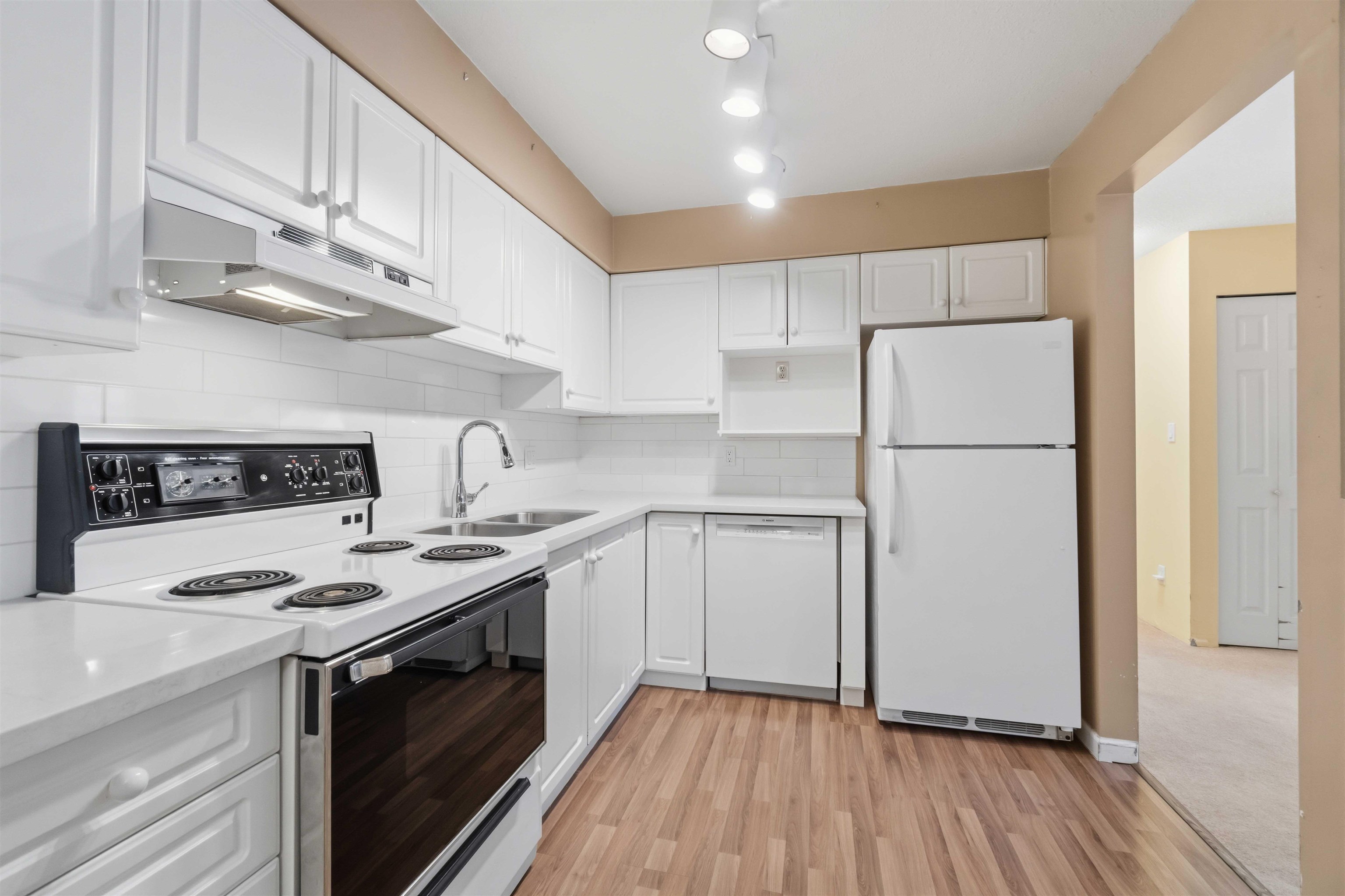 Fantastic 2 bedroom, 2 bathroom condo with a smart layout and bedrooms on opposite sides for added privacy—each with convenient access to its own bathroom. This bright, open-concept home features floor-to-ceiling windows overlooking a peaceful south-facing treed courtyard, creating a calm and inviting atmosphere.The kitchen offers quartz countertops, white cabinetry, and newer appliances including fridge, dishwasher, and washer/dryer, while the hot water tank was replaced in 2022. Plenty of closet space pro...