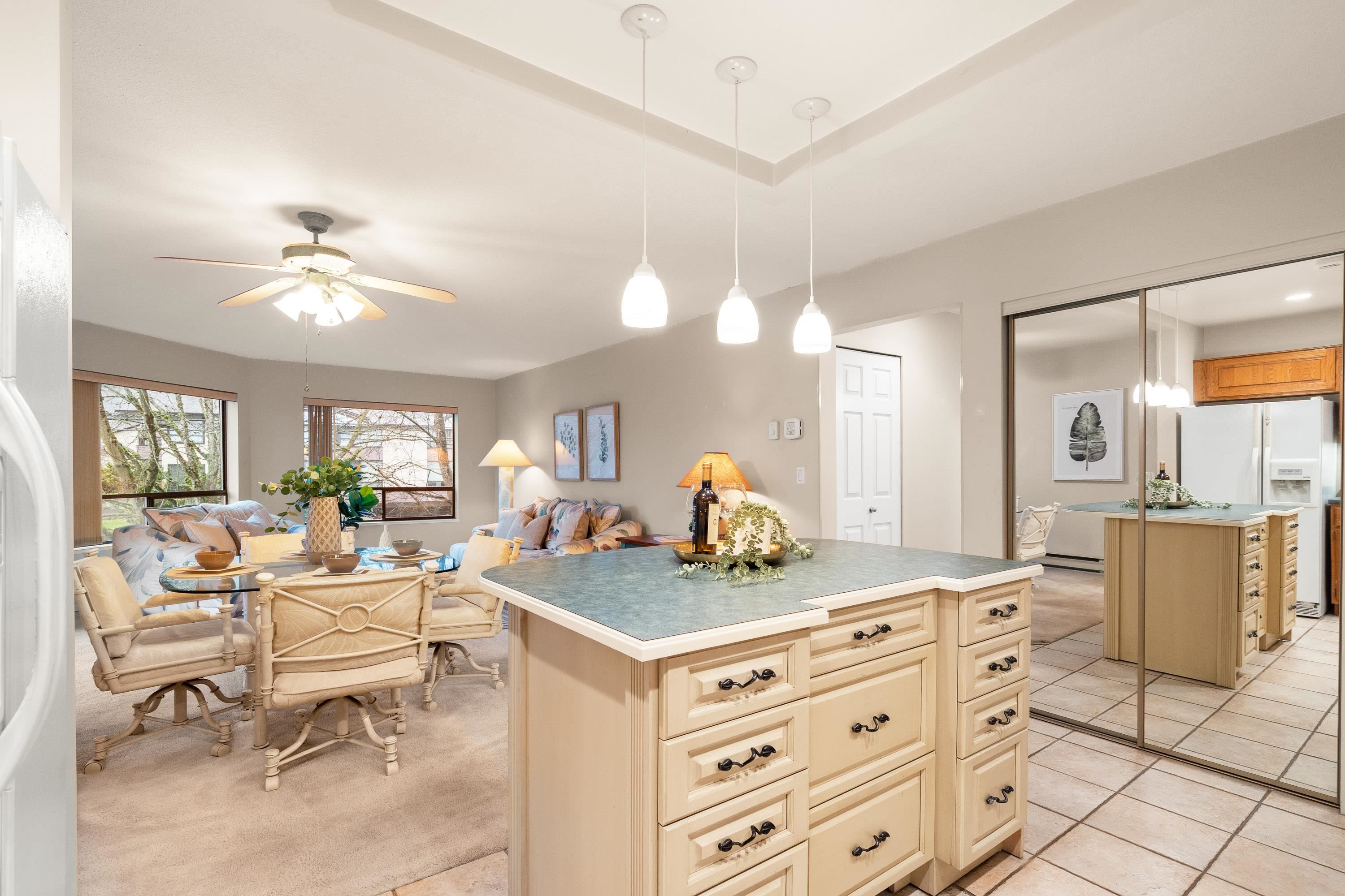 Large 2 bedroom, 2 bathroom Corner Suite in the Monterey with North West exposure. Spacious open floor plan with lots of windows and 2 sundecks ! Oak kitchen, tiled floor, updated back splash in Kitchen. Large Laundry room with plenty of storage and new Hot water tank. Comes with parking and storage locker. 55+ community. Well run strata . Cats ok, sorry no dogs.