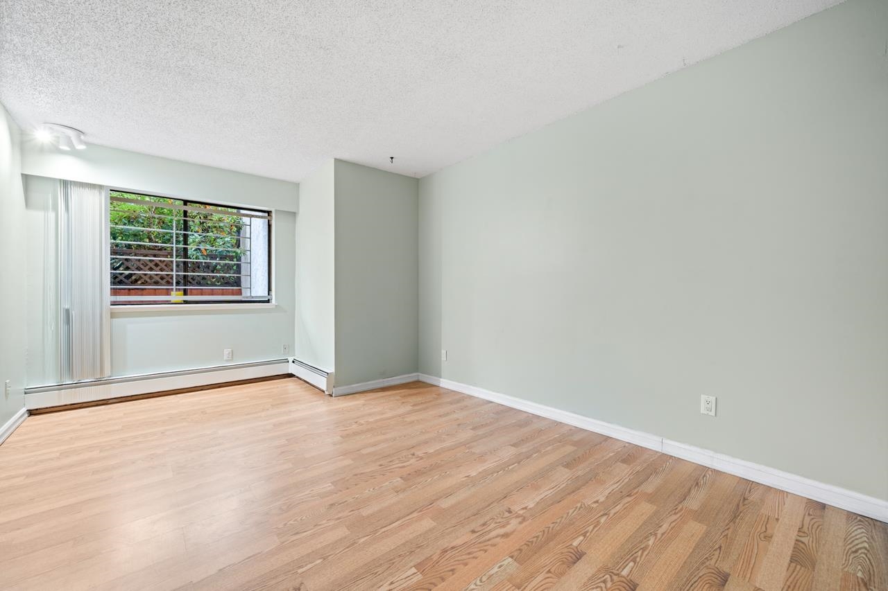 Spacious 1-bedroom ground-level unit offers over 760 sq. ft. of comfortable living space with a private walk-out patio, perfect for relaxing or entertaining. This inviting home features a bright kitchen and a functional open layout from the large living room to dining room. The building is well managed with an active counsel. Elevator upgraded and re-piping done throughout the building. With a walk score of 99, this home is ideally located on a quiet street. Walk to Columbia SkyTrain station in under 5 minu...