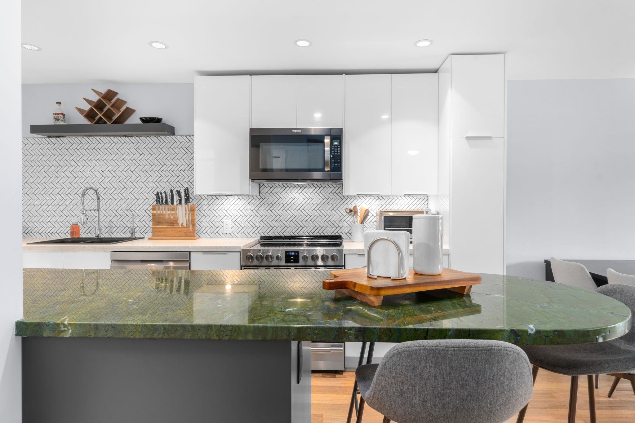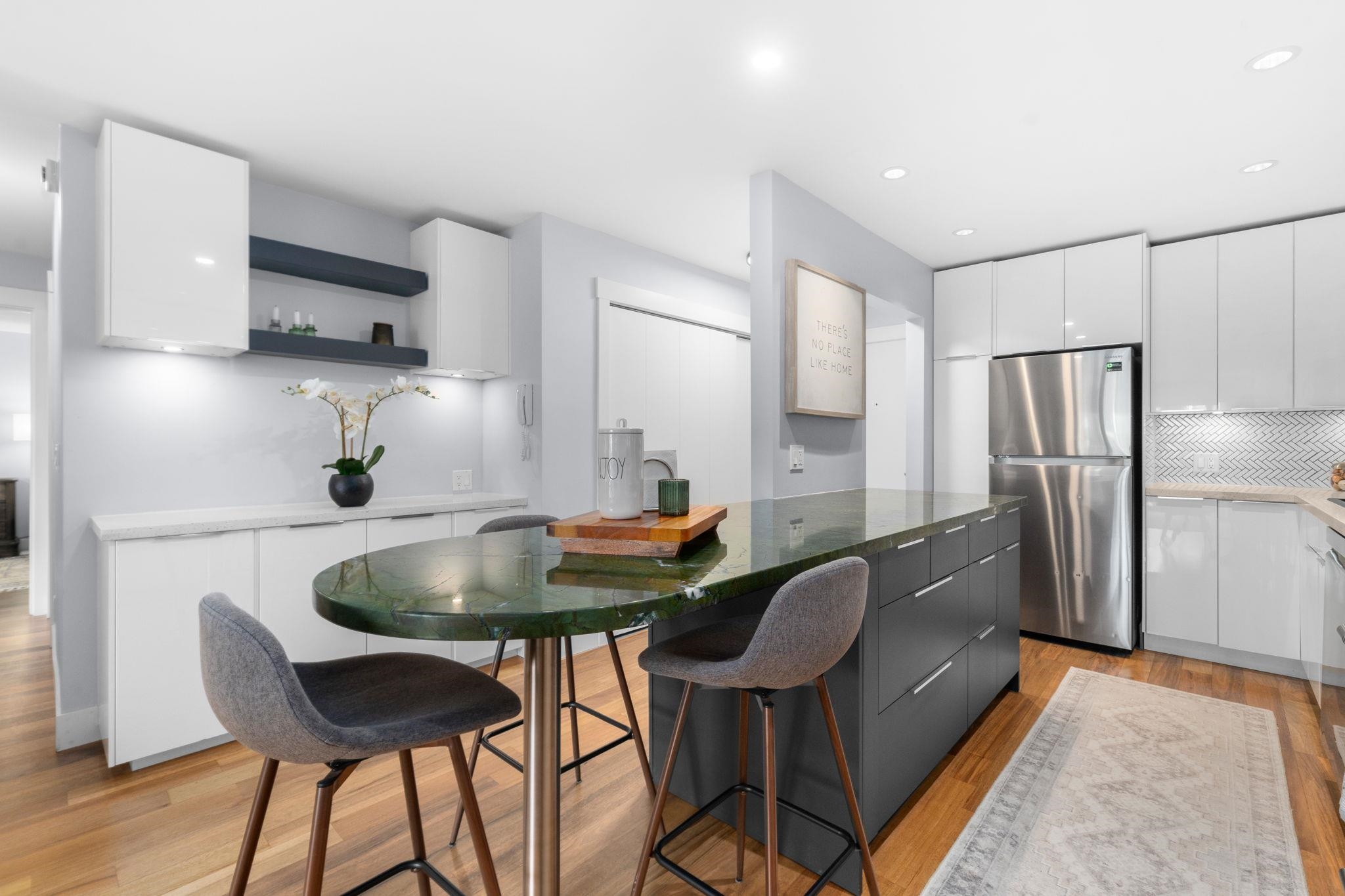 This Fairview sanctuary has some serious soul. This gorgeously updated two bed, two bath condo is nestled between between Kitsilano, Mount Pleasant, & False Creek, offering the best of all three neighborhoods at your fingertips. Generously proportioned rooms, gorgeous renovated kitchen with striking marble peninsula for eating and hosting, & a show-stopping south-facing veranda that spans the full width of the suite—perfect for entertaining. Recently re-finished floors & renovated bathrooms, underground par...