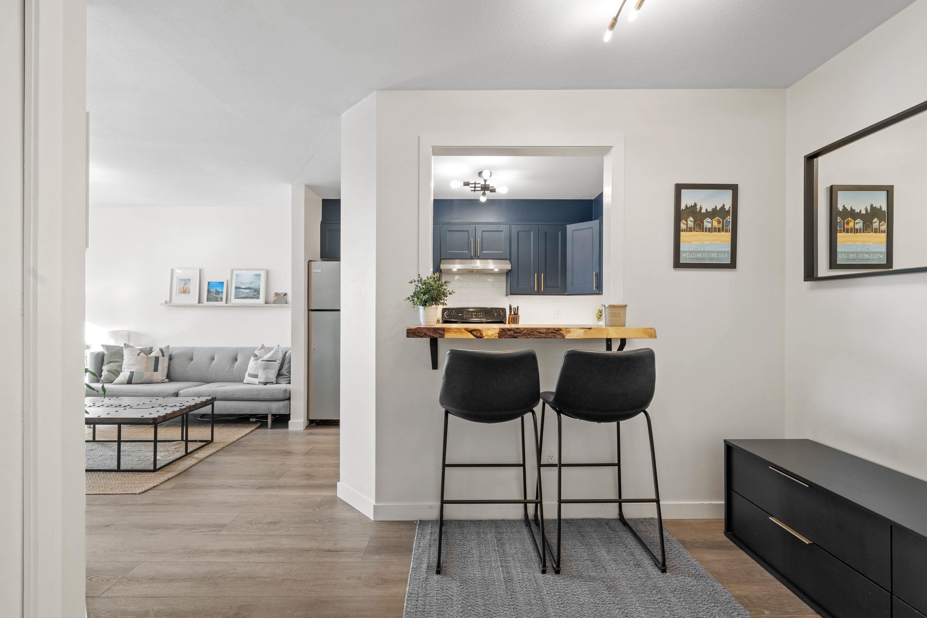 Beautifully designed with a fantastic layout in an unbeatable location, this bright and updated home offers comfort and convenience. The spacious primary bedroom features a walk-in closet, while the versatile second bedroom is perfect for guests or a home office. The renovated navy kitchen boasts ample counter space and flows seamlessly into the living area with a handy serving window for easy entertaining. Natural light pours in from the southwest exposure, and a cozy gas fireplace adds warmth. Enjoy the p...