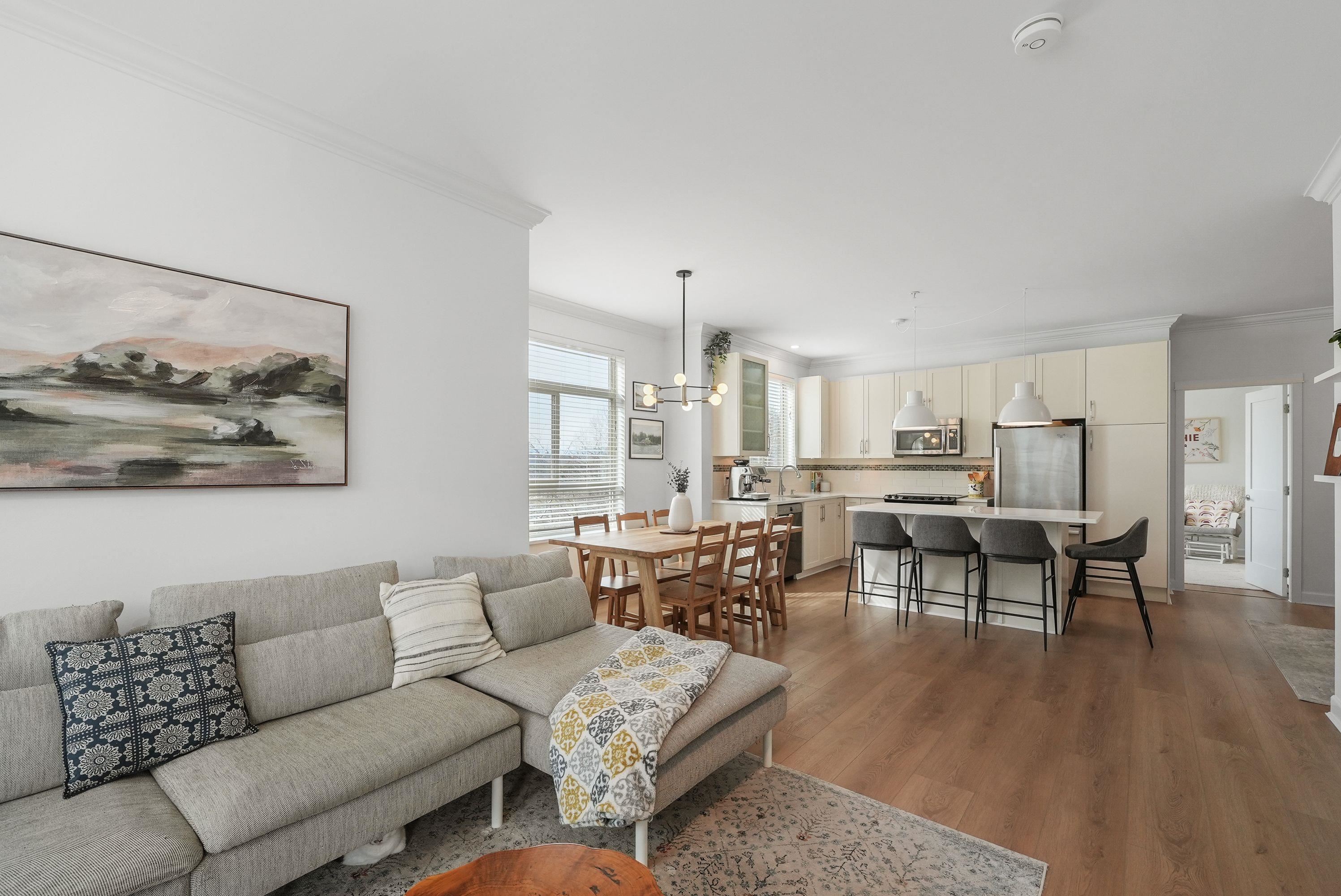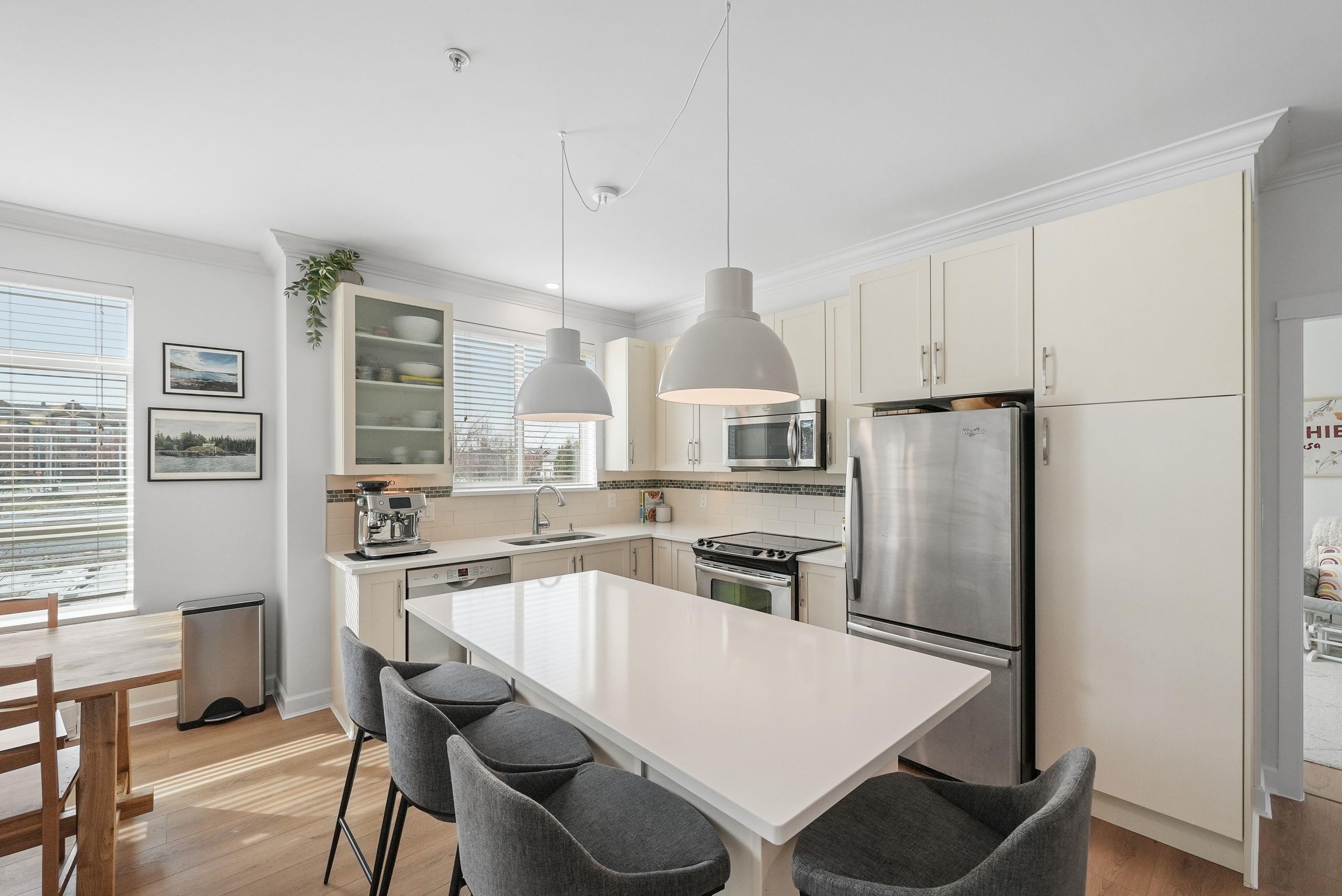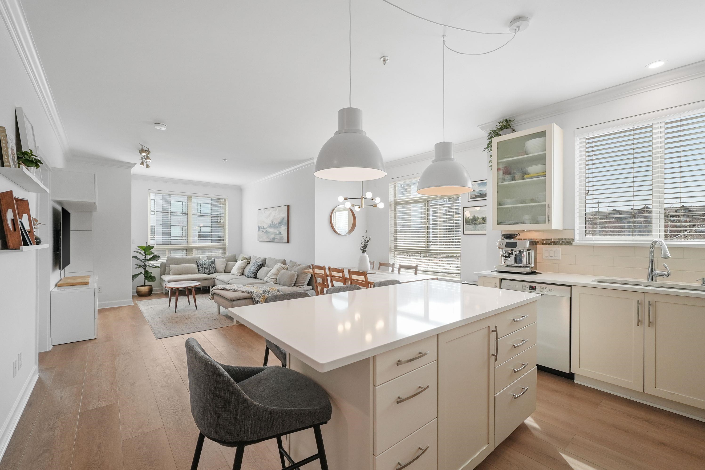 Welcome to Athenry Gate in the heart of Willoughby Heights! Gorgeous 1,094 sq. ft. 2 bed, 2 bath corner unit with a bright, functional layout. Tastefully updated with wide plank vinyl flooring, quartz countertops, new lighting, and built in storage cabinets. Stunning kitchen featuring stainless steel appliances, white shaker cabinets, and a large island. Bedrooms positioned on opposite sides for added privacy. Additional versatile flex space. Plenty of windows throughout for natural light, including window ...