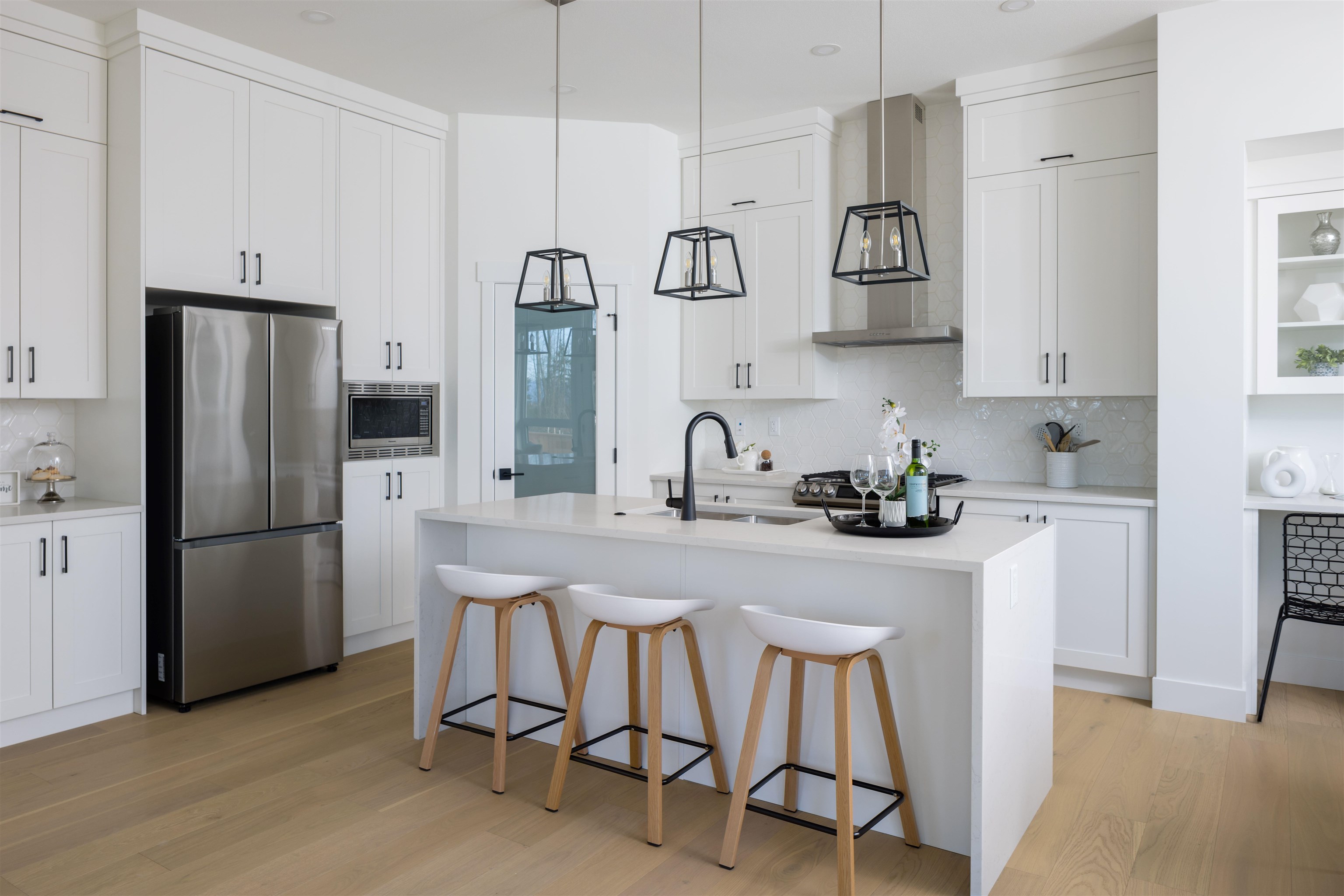 This stunning 5-bedroom Fairmont plan offers an open concept main floor with a spacious living and dining area, and gourmet kitchen featuring stainless steel appliances and a waterfall edge island, perfect for entertaining. Upstairs, you'll find 4 generous bedrooms and 2 full bathrooms. The fully finished basement includes a 1-bedroom legal suite with a stainless steel appliance package. Additional features include a heat pump, engineered hardwood flooring on the main level, and a private, fenced north-faci...