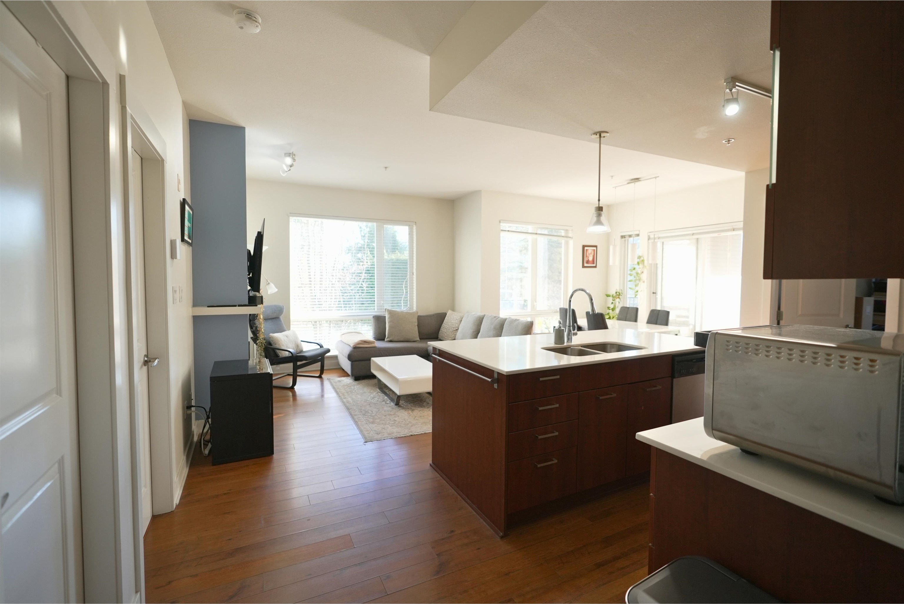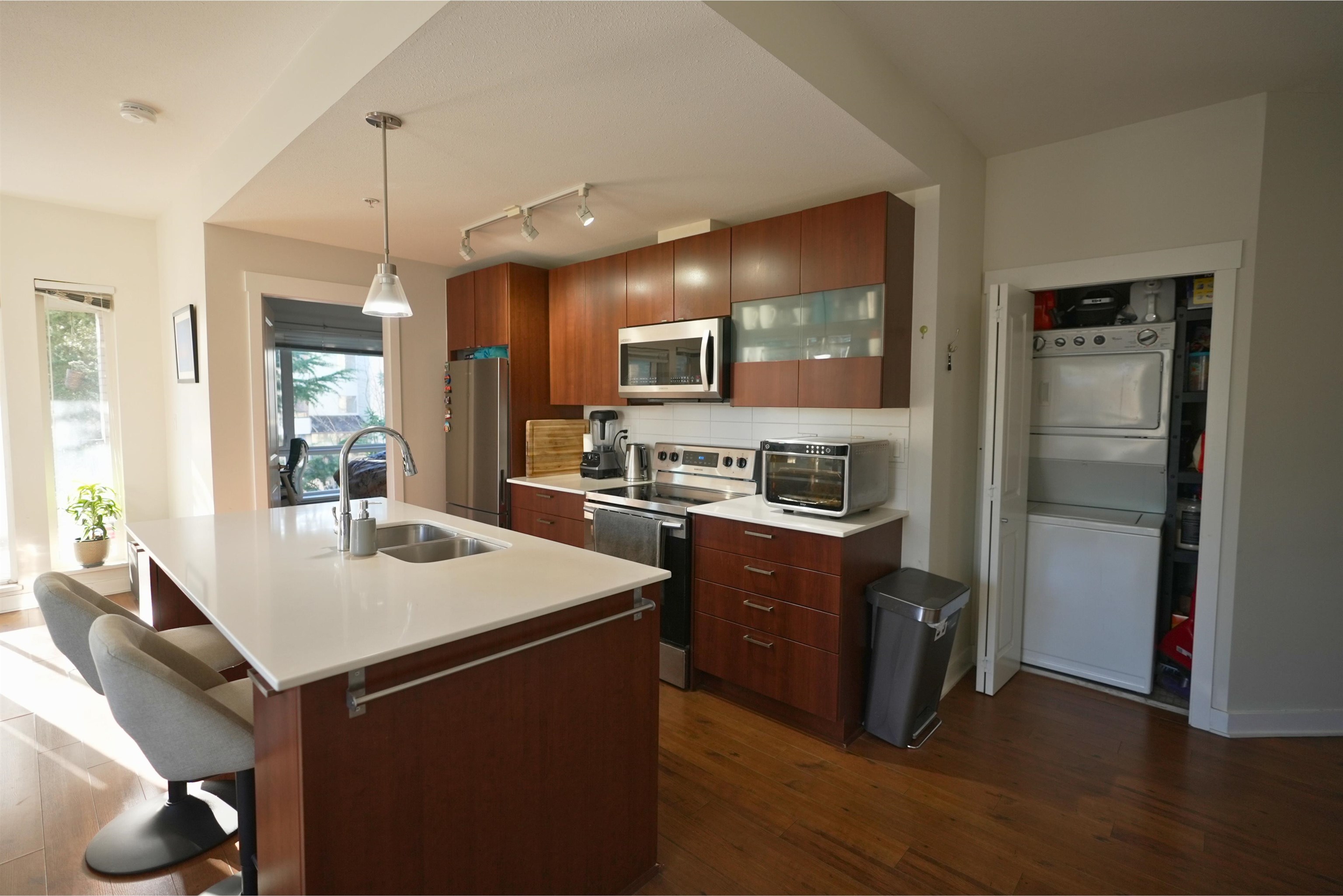 Bright southeast-facing apartment in Urban Village! Ideally located just one block from Central City SkyTrain Station and steps from Central City Mall, SFU Surrey Campus, grocery stores, transit, and more. This beautiful 900 SQFT home features 2 bedrooms, 2 bathrooms, soaring 9-ft ceilings, stainless steel appliances, and sleek siltstone quartz countertops. Strata fees include hot water. Comes with 1 secure underground parking stall and 1 storage locker.