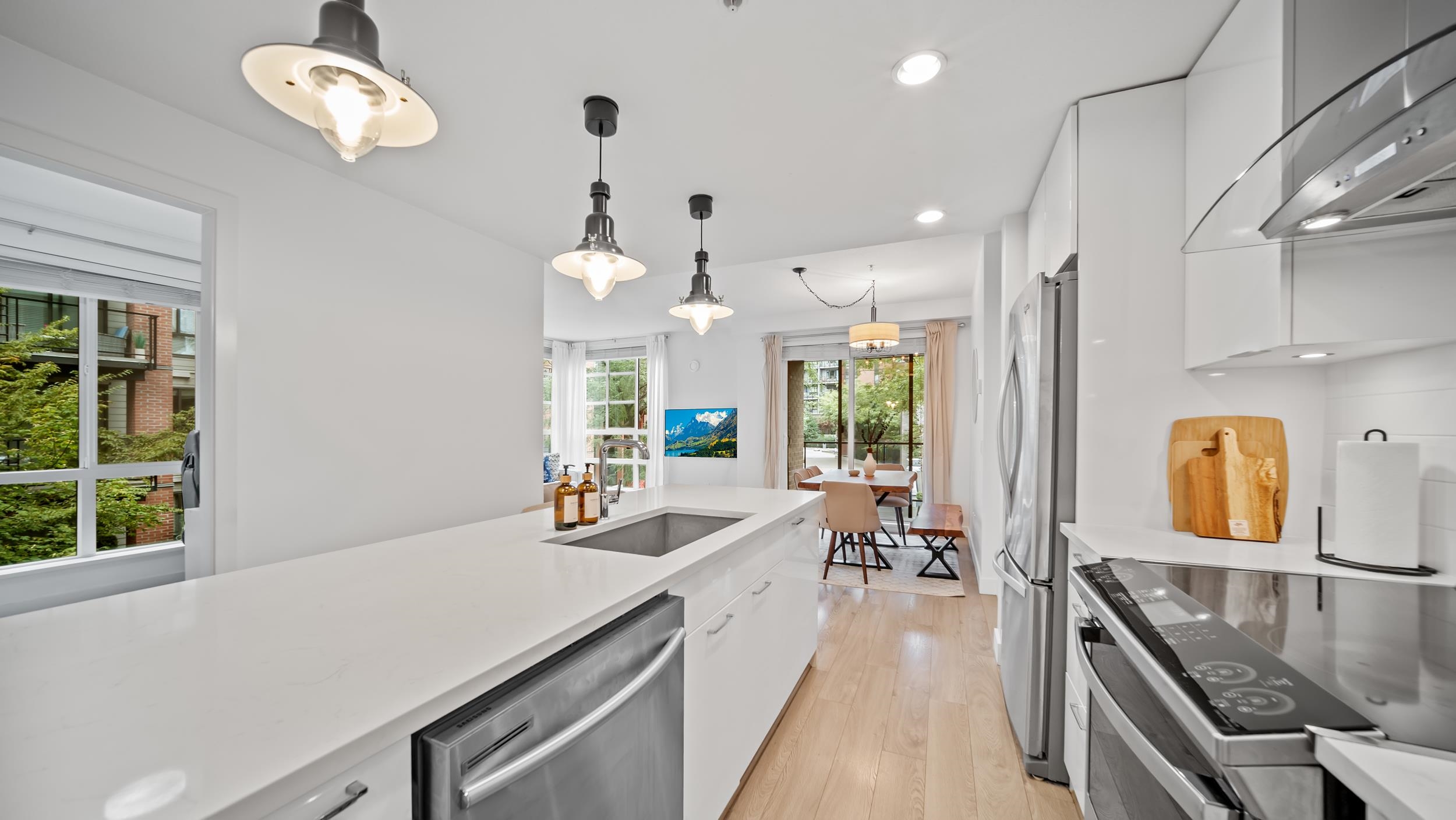 The best of the city, and the outdoors – welcome to this rarely available 3-bed, 2-bath corner home at The Shore in North Vancouver’s Harbourside community. This bright and functional floorplan offers over 1,000 sq ft of well-designed interior living, a spacious kitchen, and large windows that allows an abundance of natural light in throughout. The primary bedroom includes a walk-through closet and ensuite, the secondary bedrooms offer flexibility for families or a home office. As a bonus: two large, covere...