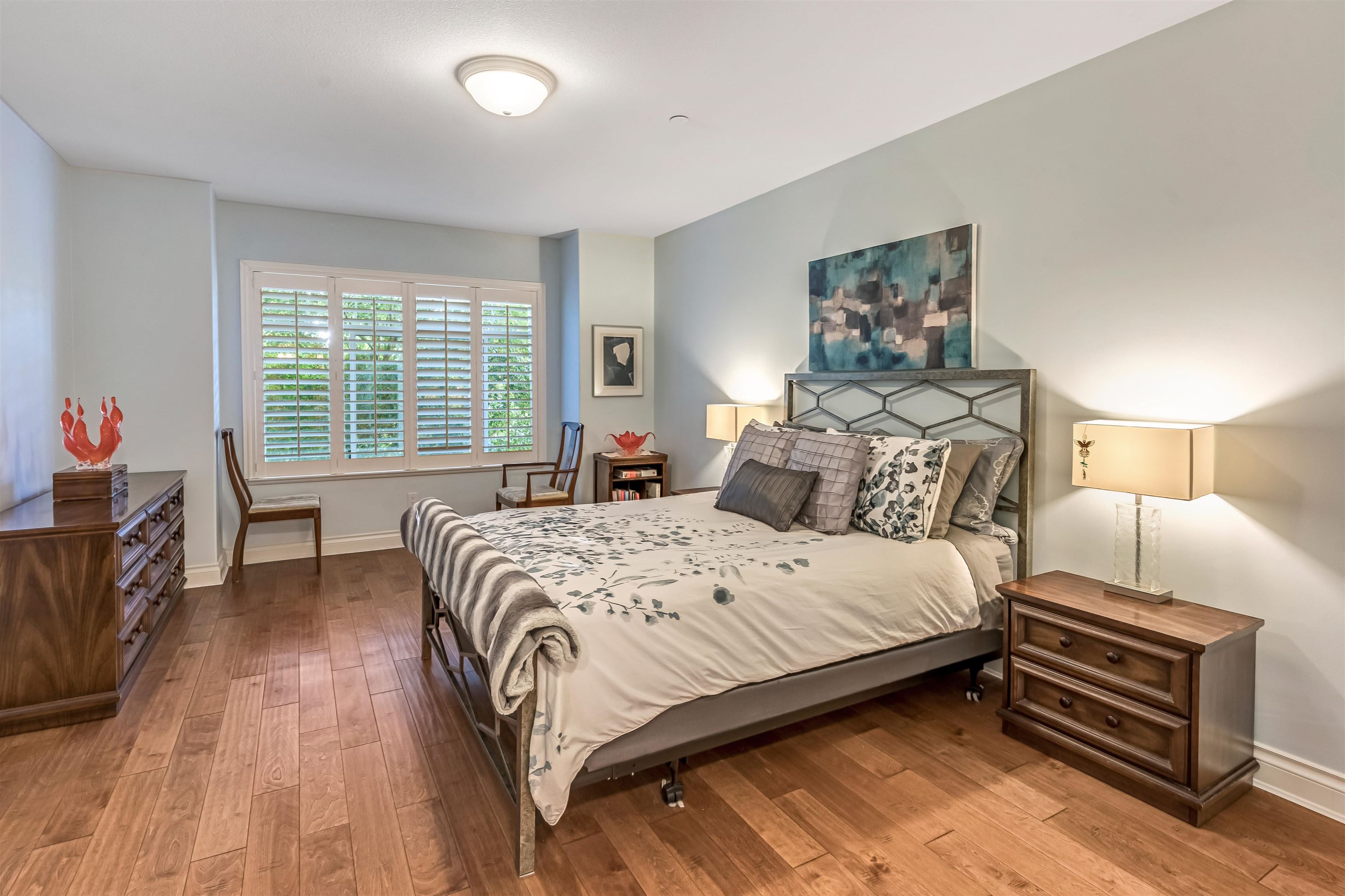Welcome to The Sandalwood, a quiet 55+ community built by Carl Jensen. This move-in ready home combines comfort with peace of mind. Inside, you’ll find new hardwood floors, a bright open layout, and a well-designed kitchen with stainless steel appliances. The in-suite laundry with updated washer/dryer adds convenience, while the private balcony with custom privacy screen creates a perfect spot to relax or enjoy a cup of coffee. The building is well-maintained, secure, and designed for low-maintenance living...