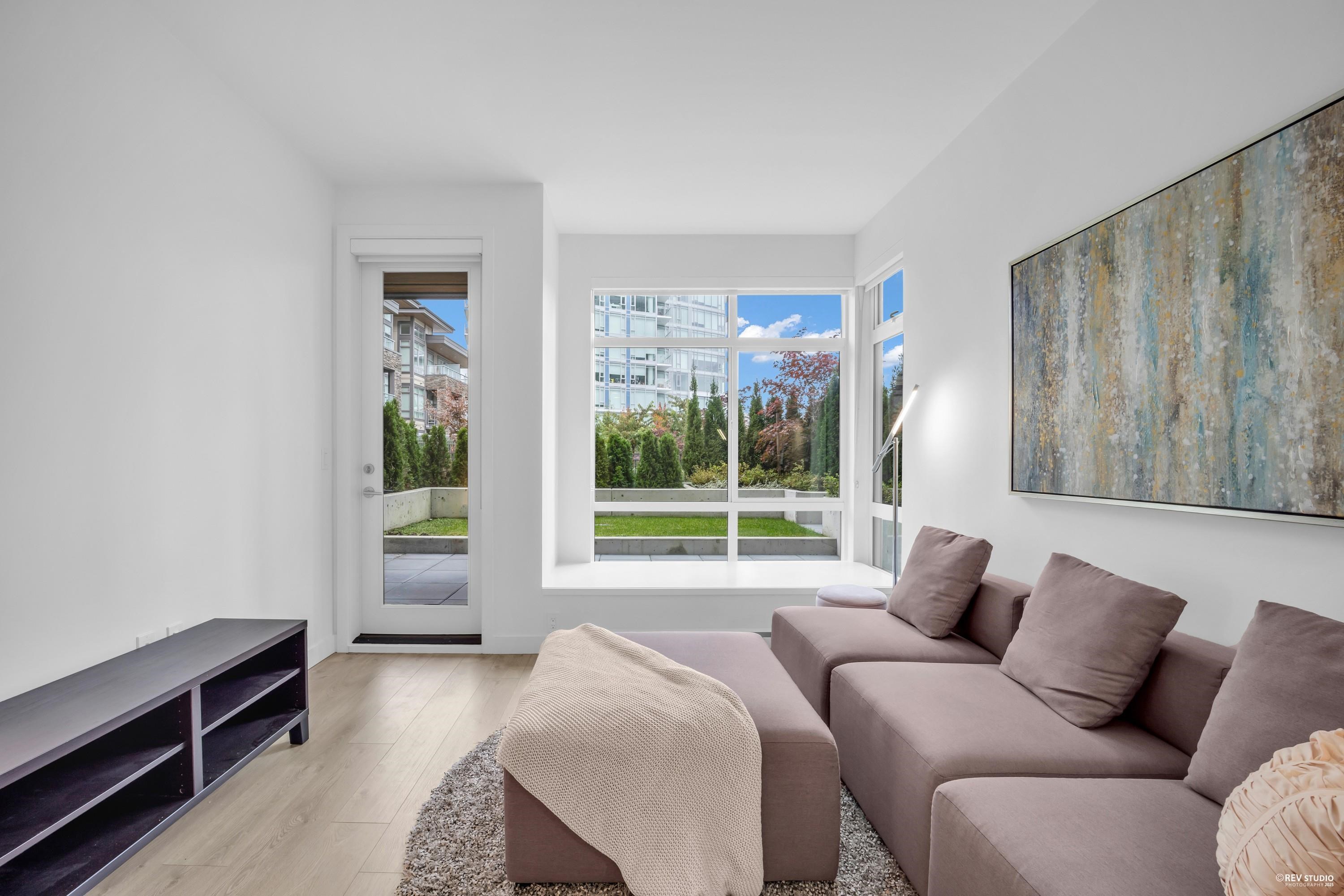 This secure, ground-level 2 bed, 2 bath home at Azure II offers the best of indoor-outdoor living with a quiet, inside-facing layout and a large private patio—no street access, ideal for relaxing or entertaining. Built by Ledingham McAllister, it features an open layout, high ceilings, full-size appliances, in-suite laundry, and a walk-in closet in the primary bedroom. Includes 1 parking and 1 storage locker, plus access to a gym, concierge, guest suite, and landscaped gardens. Walk to Edmonds SkyTrain, Ros...