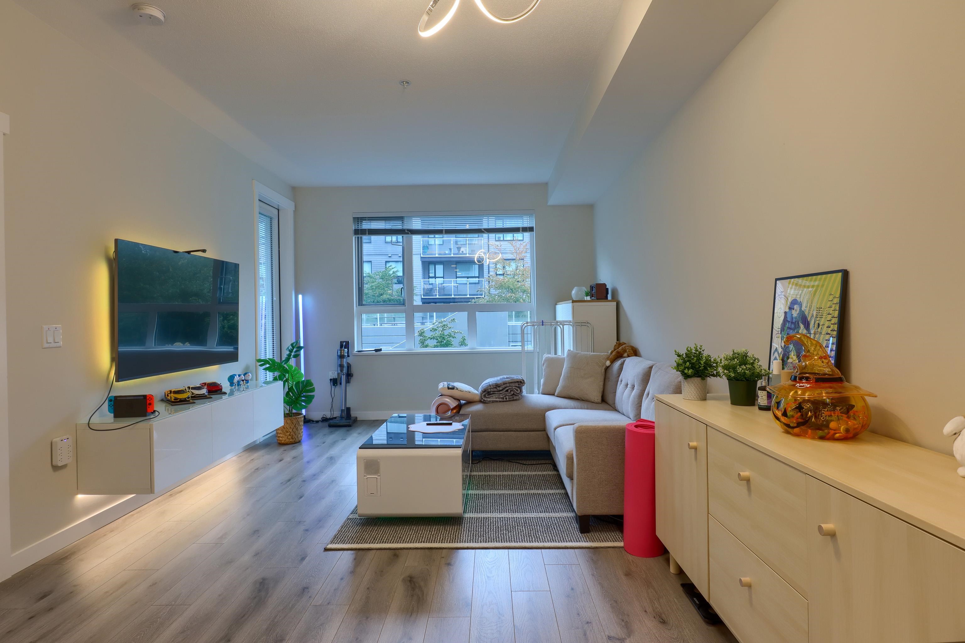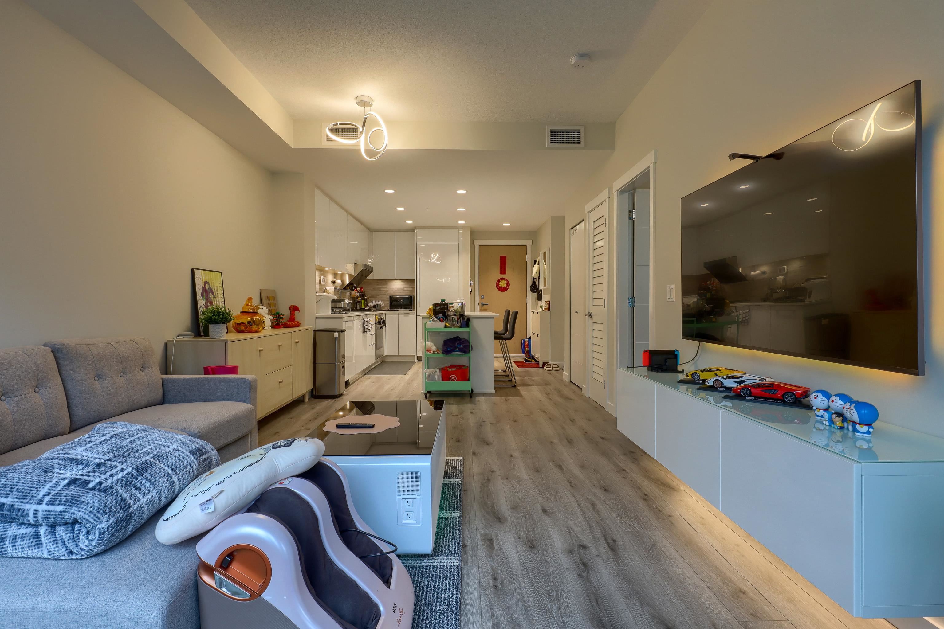 Welcome to Berkeley House by Polygon. This 2-bedroom, 1-bath residence features a modern open-concept kitchen seamlessly connected to a spacious living and dining area— perfect for entertaining. Highlights include a heat-pump air conditioning system, soaring 9-foot ceilings, a generous balcony, and a spa-inspired ensuite. Residents can enjoy beautifully landscaped courtyards, a plaza with catenary lighting, an open lawn with a children's play area, and access to over 5,000 sq. ft. of resort-style amenities,...