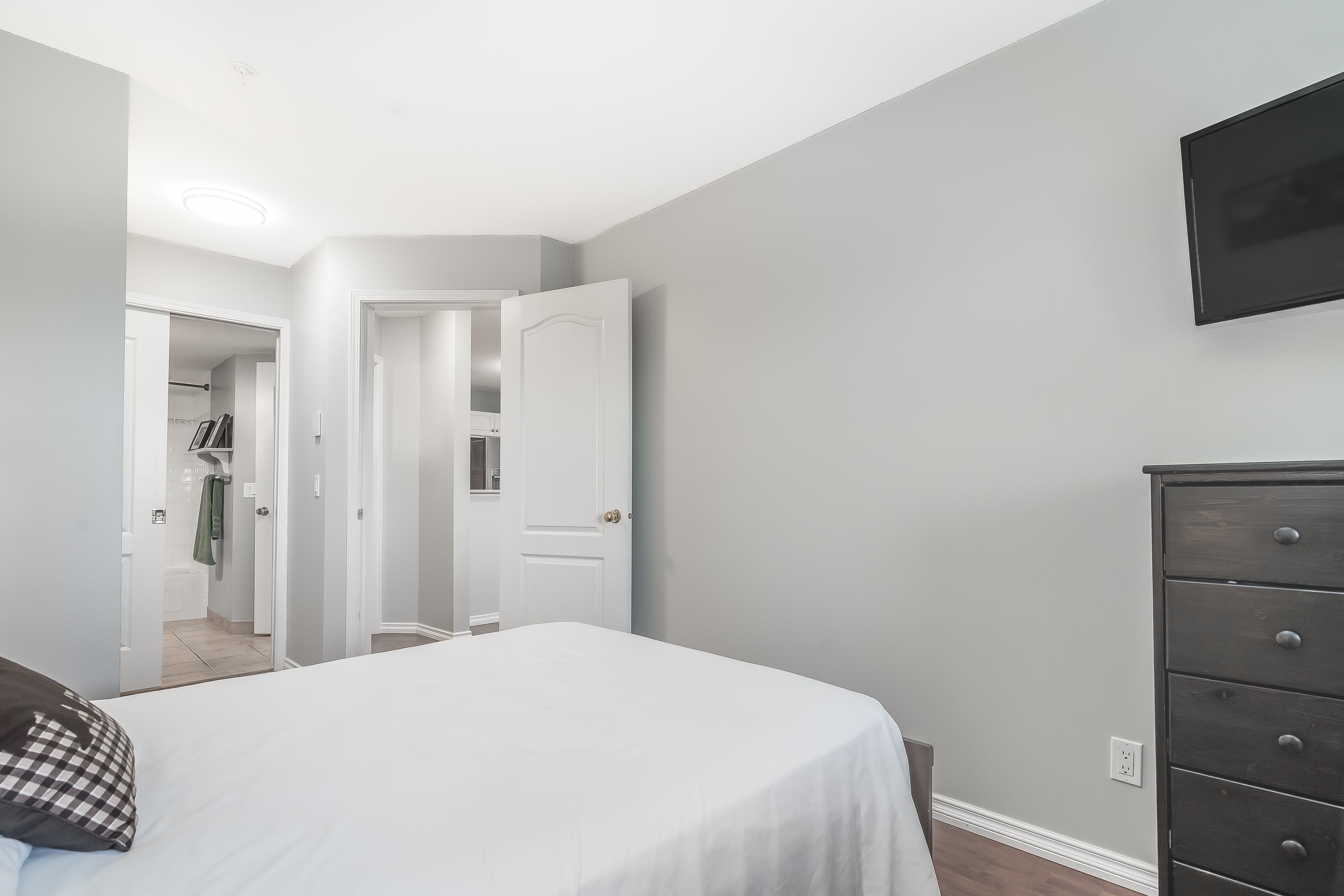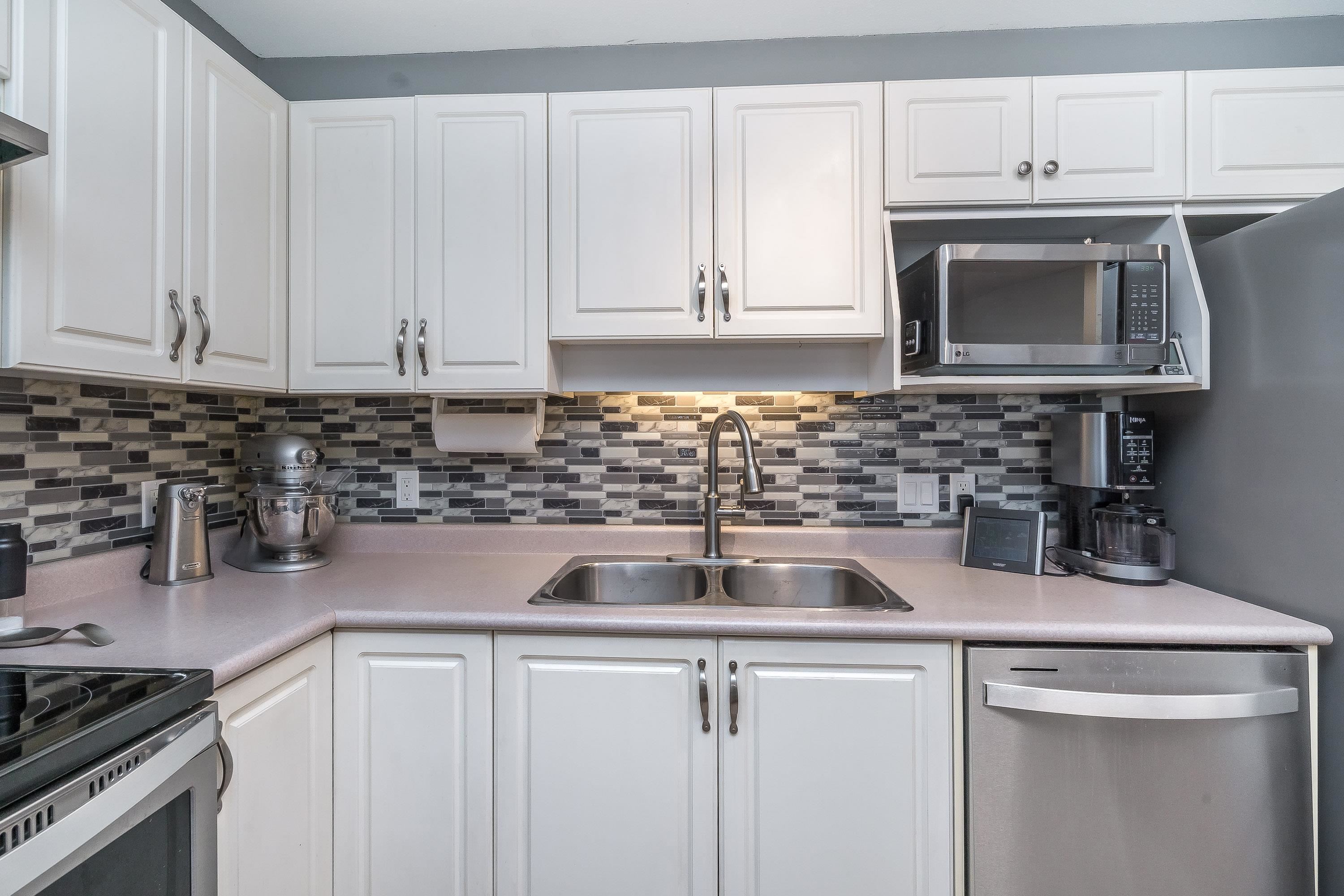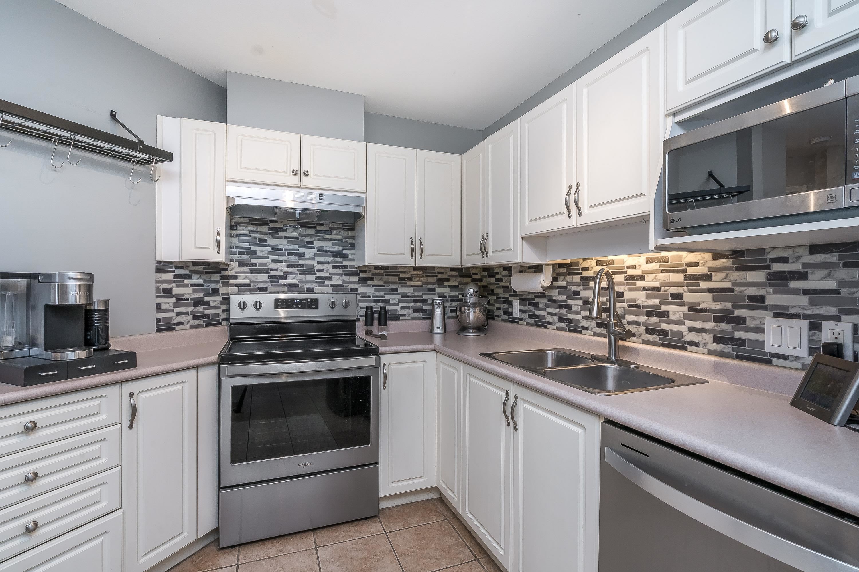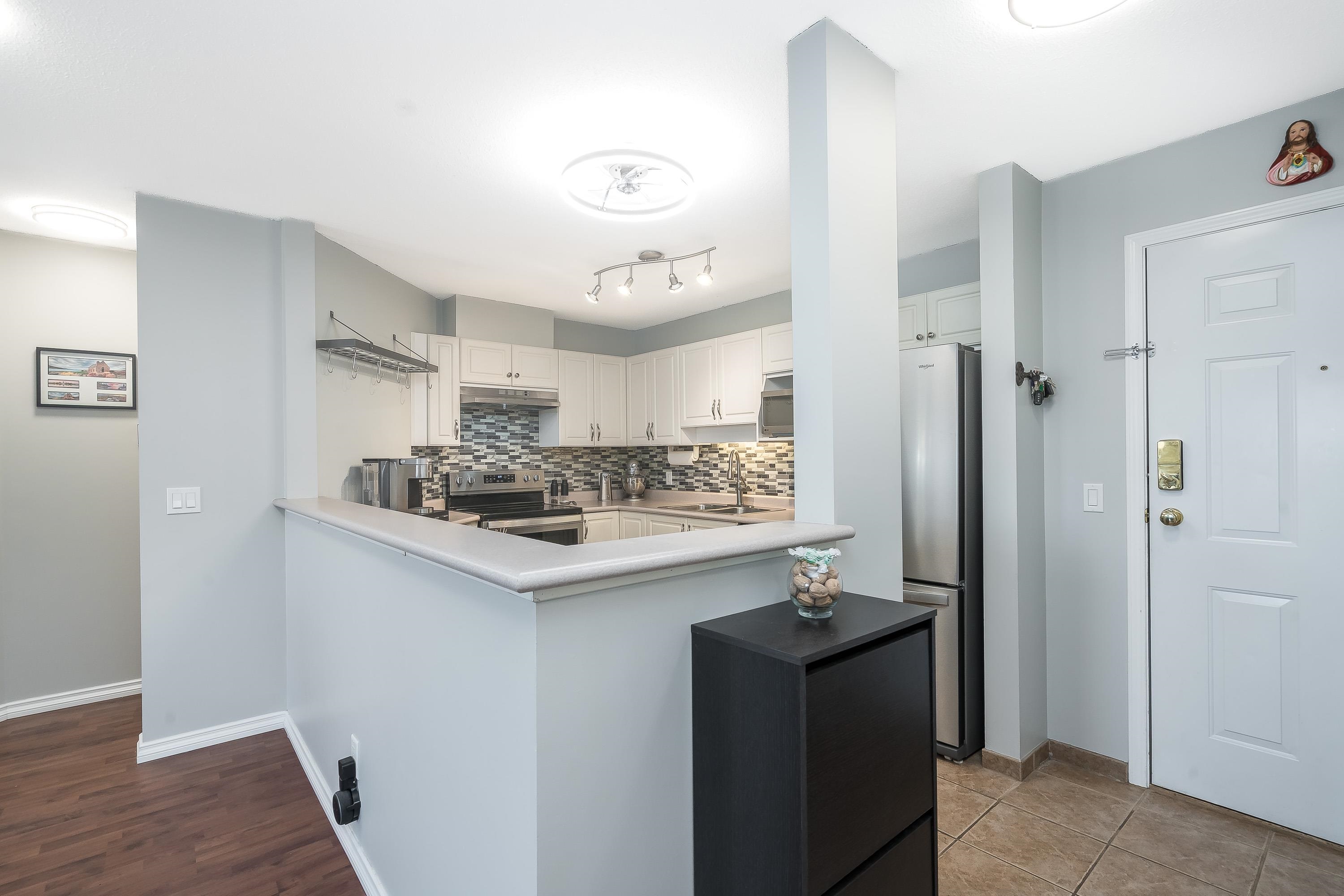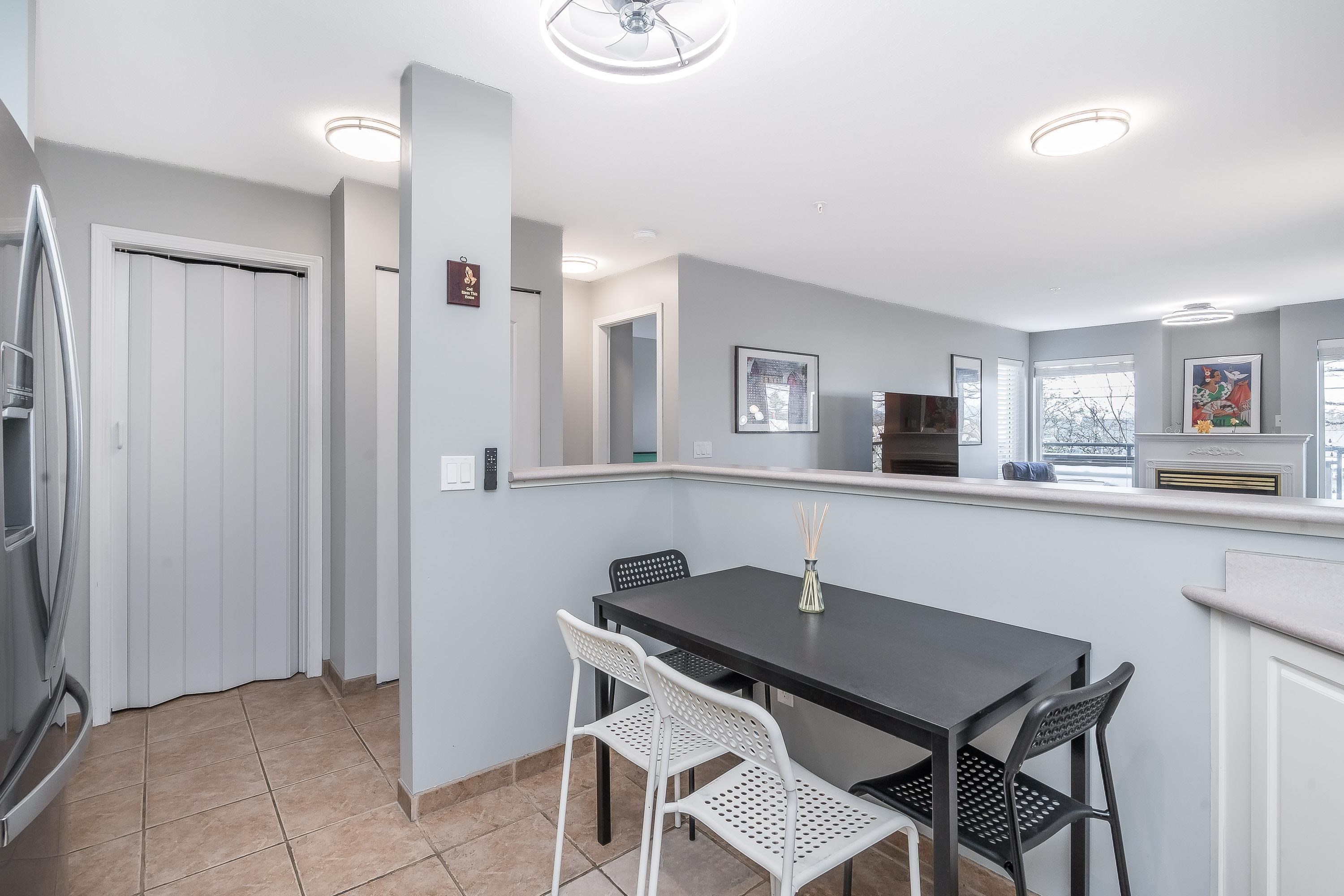 Updated 2 bed, 2 bath condo in desirable College Park! This well-maintained unit offers great value with numerous upgrades throughout, including modern lighting, updated switches/outlets, smart light controls, and smart thermostats. Stylish white kitchen features stainless steel appliances (approx. 4 yrs), decorative backsplash, garburator, and upgraded faucet. Bathrooms refreshed with new showerheads and glass shower doors in the ensuite. Enjoy added comfort with A/C, bidirectional fan/light fixtures, and ...