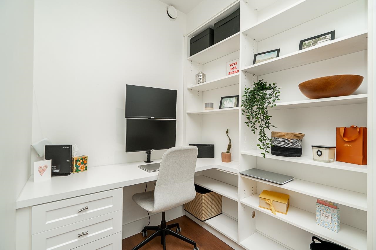 Luxurious southwest-facing,2-bedroom and den in UBC Wesbrook Village. Built by award-winning Adera. A well-maintained unit with custom-built-ins and a study area/den that feels like a cozy little library. Numerous upgrades throughout. The big windows bring in a flow of natural light; the open-concept floor plan features a good-sized gourmet kitchen; and enjoy casual reading in the private balcony overlooking the lush courtyard - perfect for relaxing or entertaining. Walking distance to a collection of shops...
