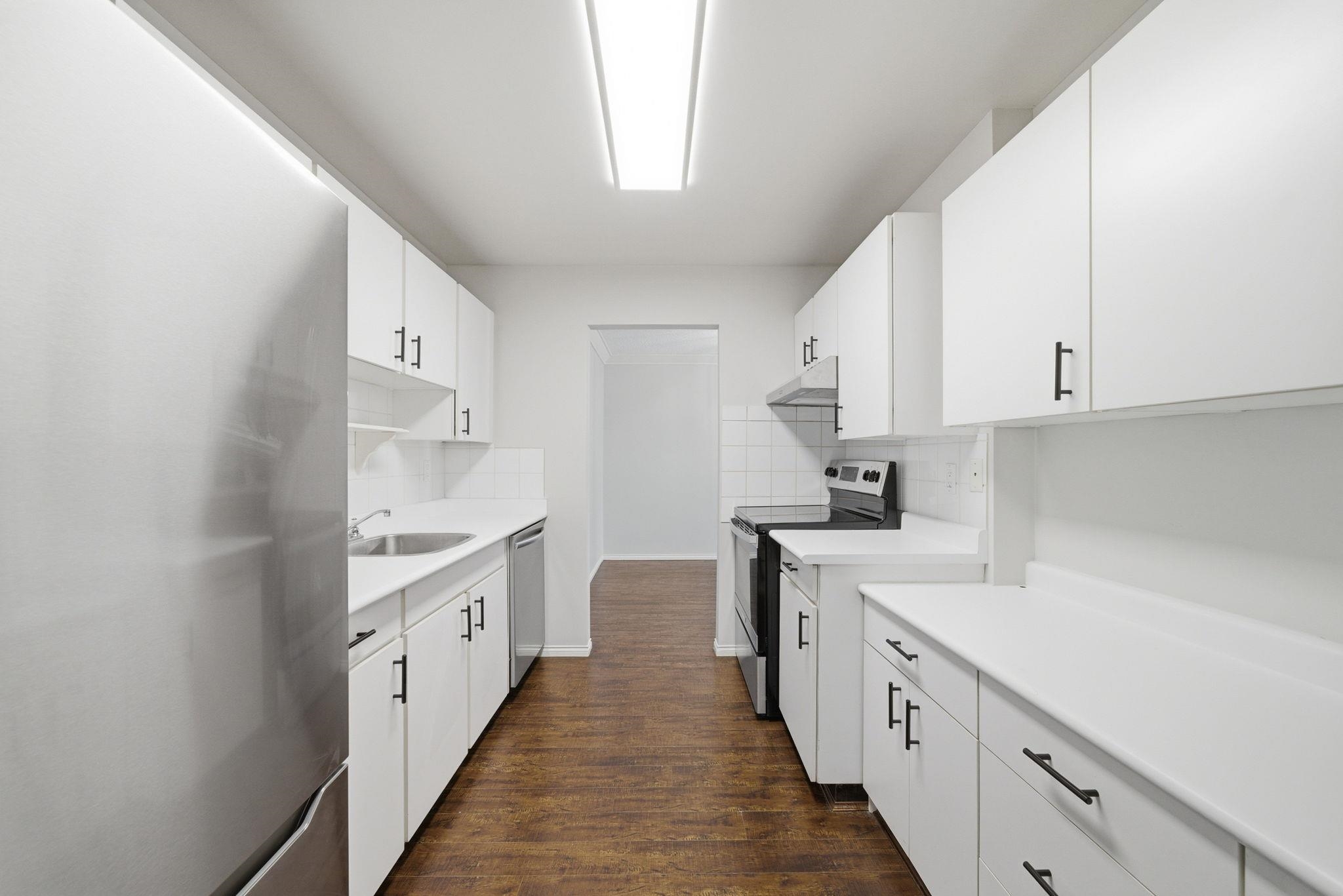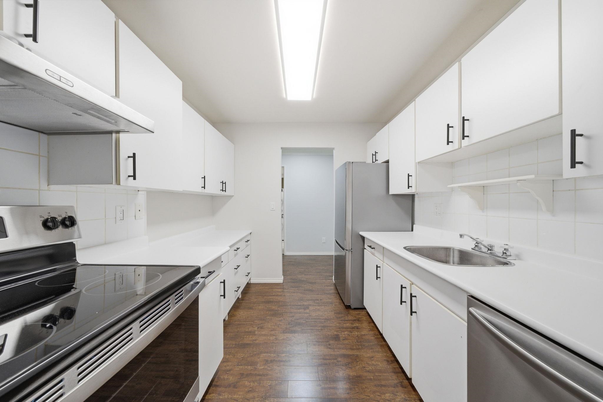 Welcome to this fully renovated 2 bed 1.5 bath 985 sq. ft. gem! This home is a showstopper with stainless steel appliances, crown molding, laminate flooring, renovated bathrooms, upgraded lighting, and chic ship-lap feature walls. Enjoy a large south facing balcony with 2 storage rooms, in-suite laundry, and a secured parking stall with option to rent a second stall. Complex has a fantastic lounge/party room, and dedicated boat/RV storage with community gardens available for rent. Steps to Broadmoor Shoppin...