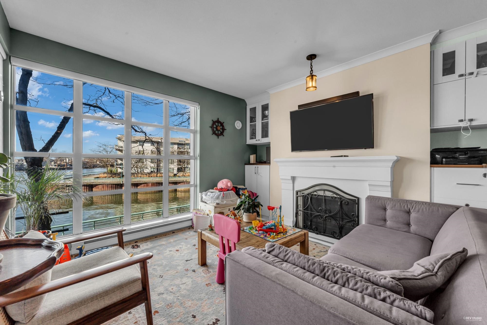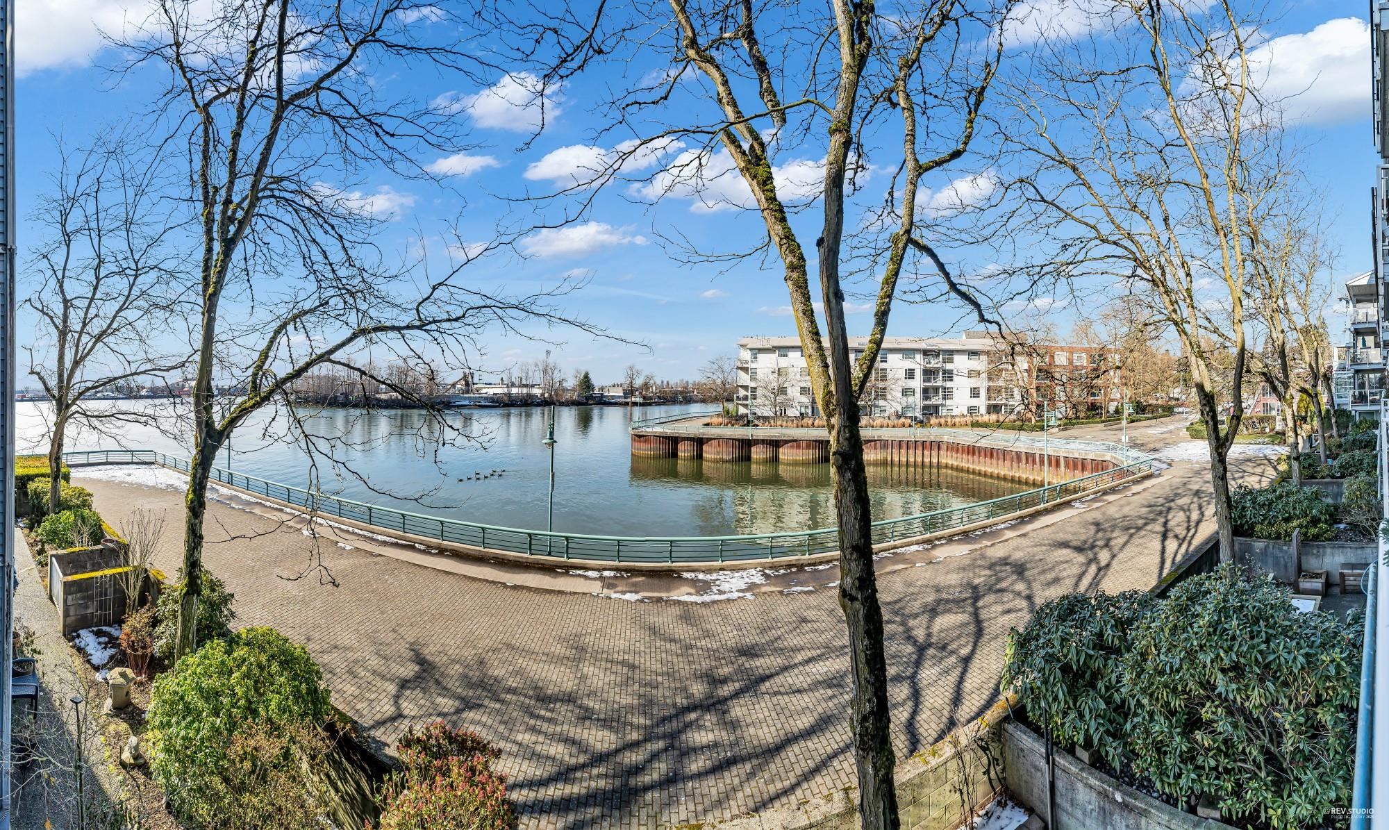 Waterfront! Enjoy unobstructed River views from this large West facing unit! Spacious layout with high ceilings, open kitchen, breakfast bar and large pantry. Living/dining room combo with gas fireplace, floor to ceiling window and a large covered balcony perfect for entertaining and relaxing! Updates include Elegant Cast Stone Fireplace Mantel, Floor to Ceiling built-in shelving, Extra large Hardwood Breakfast Bar, newer bathroom with newer tiles throughout! Large bdrm has walk-in closet with organizers, s...