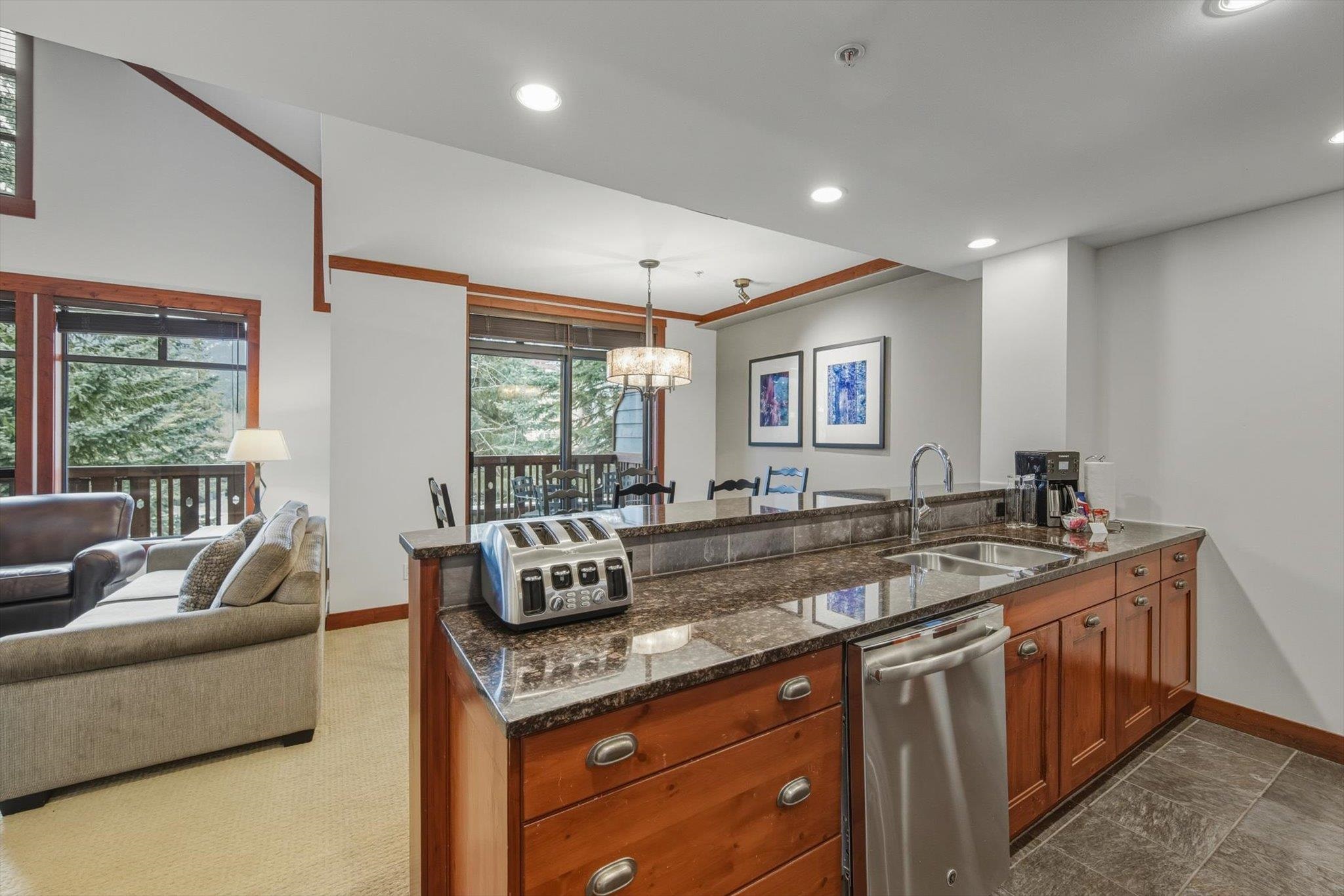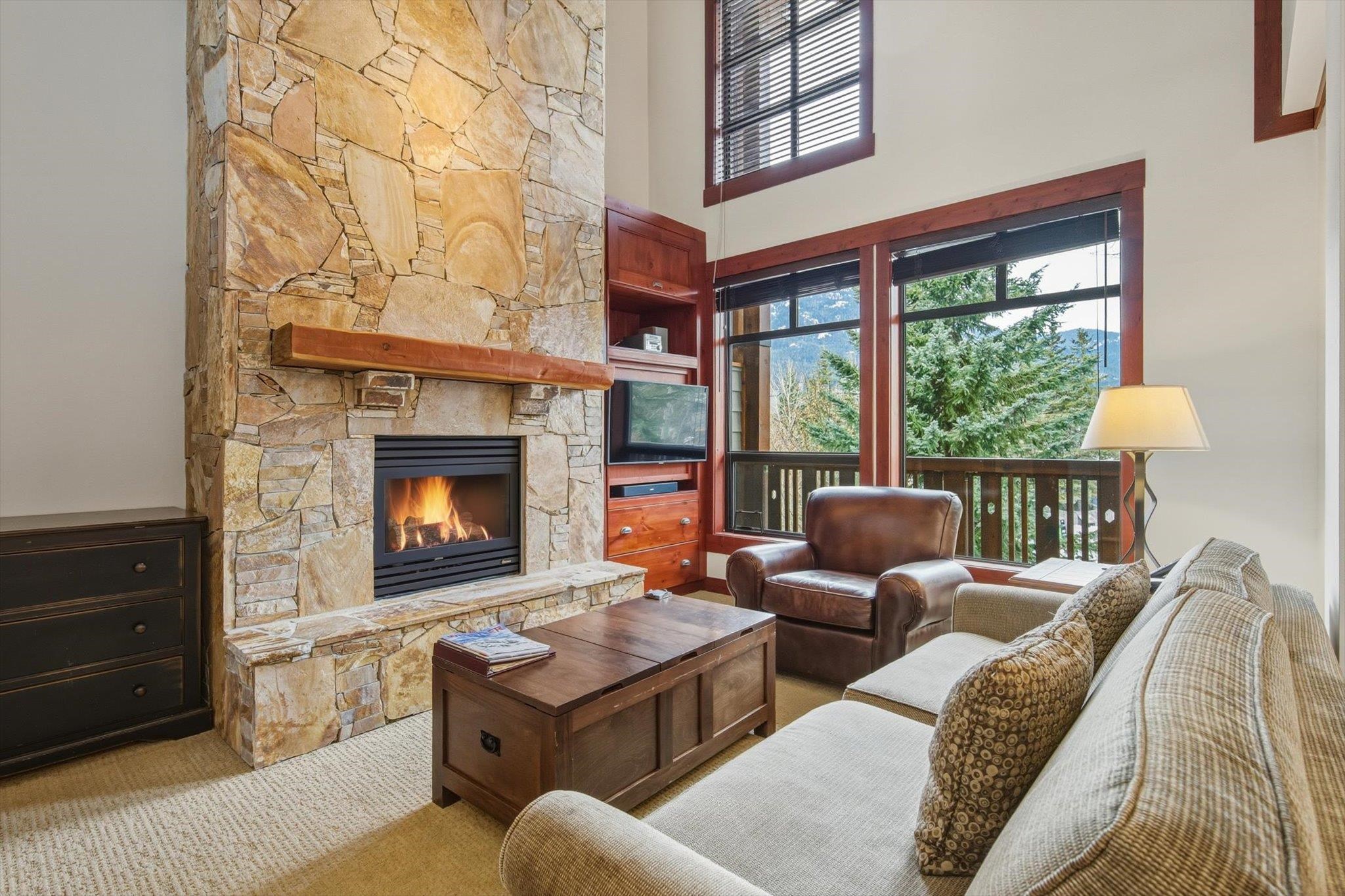 Welcome to unit 208 at First Tracks Lodge, Whistler’s premier Creekside address. Located just 50m from the gondola, this spacious 1BR + Den residence offers a sophisticated two-story layout. The main level features soaring vaulted ceilings, a commanding stone-encased gas fireplace, and a gourmet kitchen with premium stainless appliances. The entire upper floor is a private, self-contained primary sanctuary with its own ensuite and balcony. Enjoy the mountain air from the large main deck off the dining area....