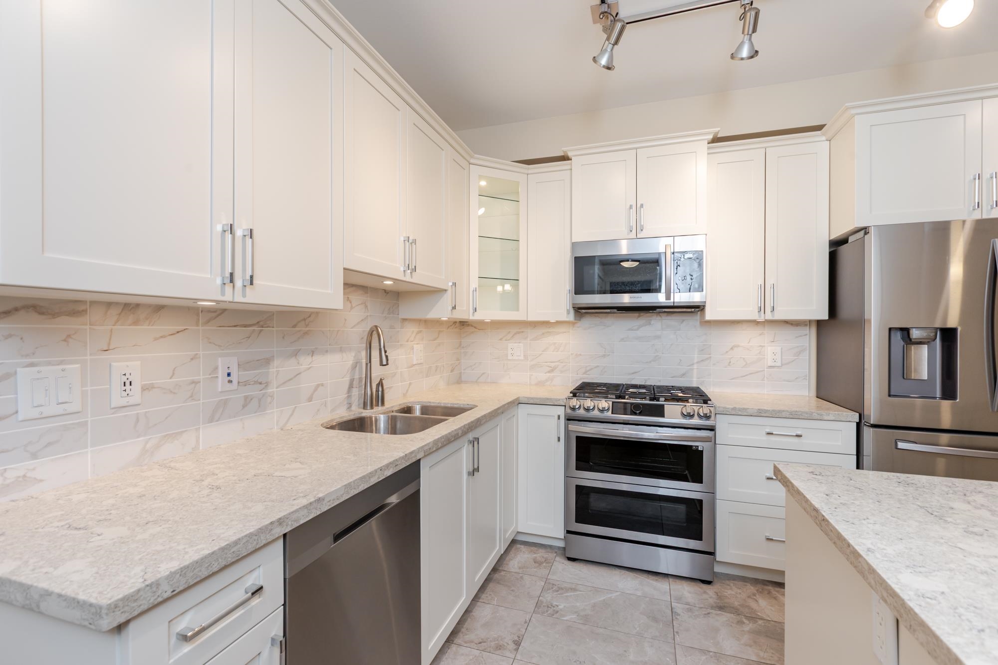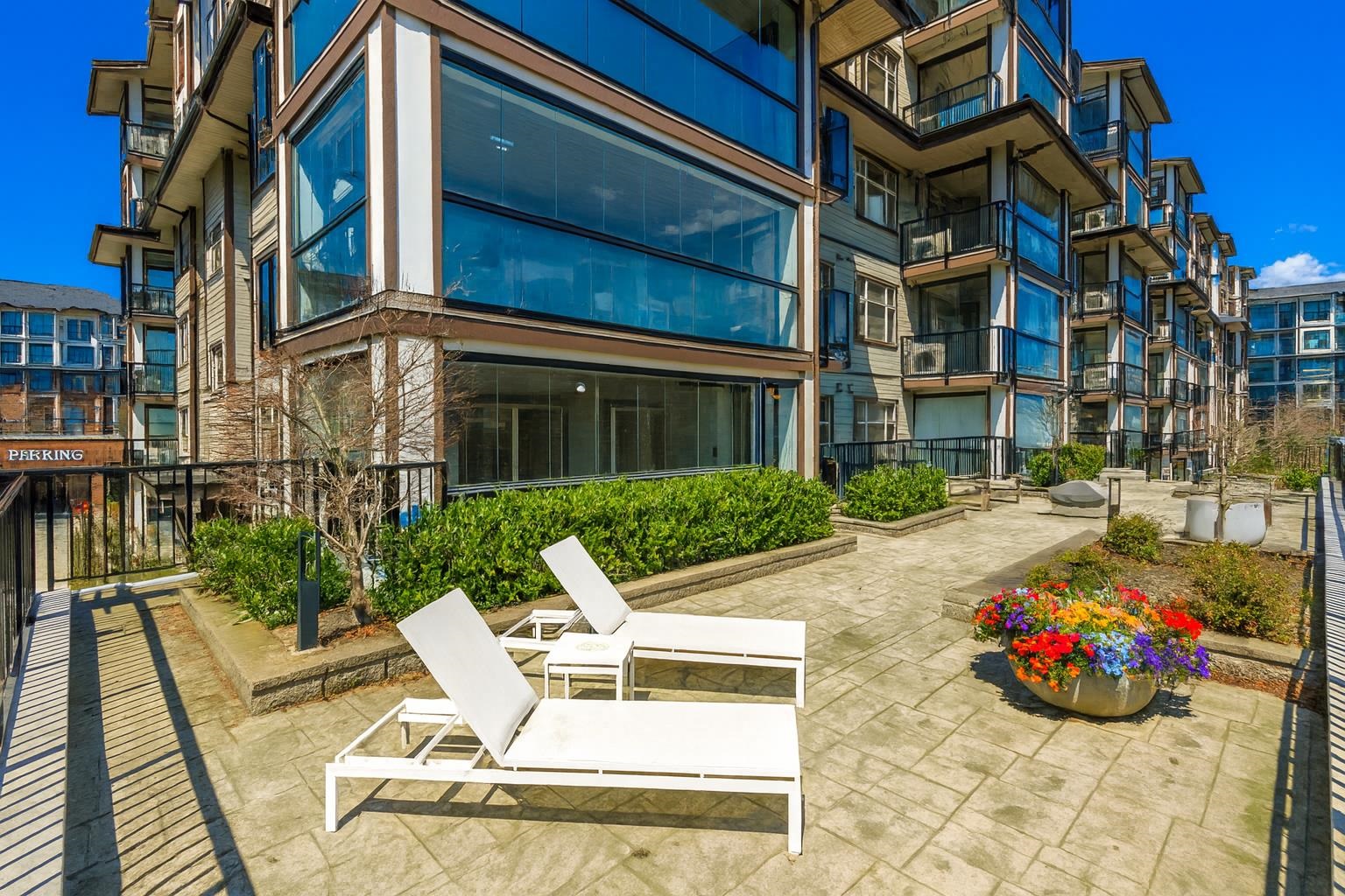 EXTREMELY RARE FIND - OUTSTANDING 1117 sf 3 bedroom CORNER unit w/MOUNTAIN VIEW & INCREDIBLE 268 sf West-facing SOLARIUM w/retractable glass panels & gas BBQ hookup that walks out to a MASSIVE SEMI-PRIVATE 1275 sf patio OVERLOOKING a PARK. 2 large SIDE BY SIDE parking stalls & private EXTRA LARGE 14’4x7’11 storage garage. HIGH END finishing, A/C/heat pump for year-round comfort w/individual controls in each room. GOURMET kitchen w/SS appliances, dual oven, 5 burner gas range, quartz counters & breakfast bar...