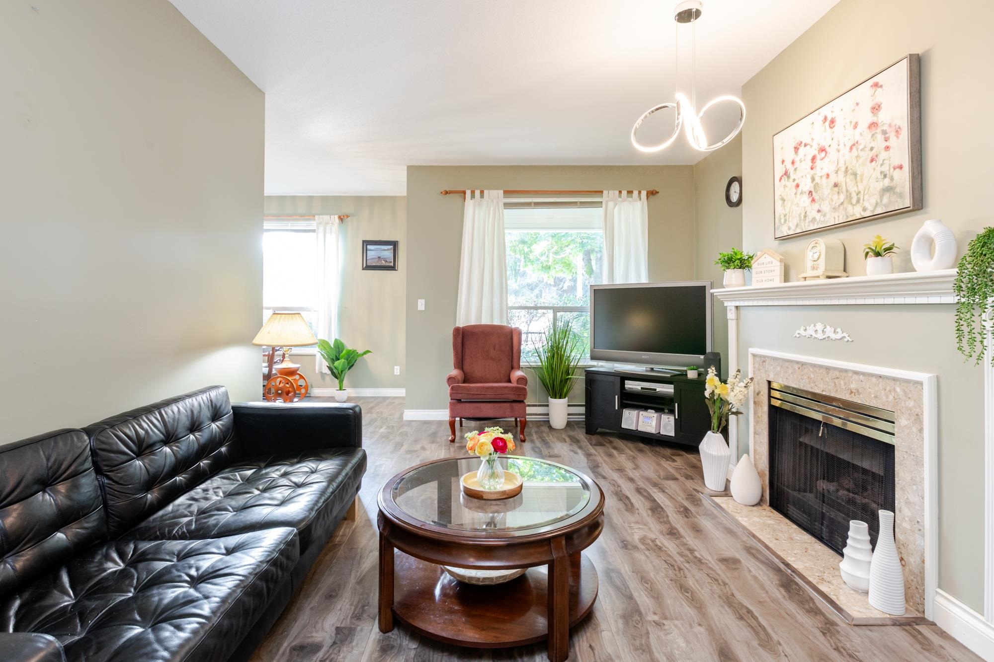 THIS IS IT. A cheery ground floor townhouse a block from Guildford Mall. This well maintained complex - Mayfield Green is quiet, peaceful and captivating place to live and enjoy life. DON'T MISS OUT - Enjoy a coffee on the deck of the clubhouse to the sound of the fountain in the pond while watching duck swimming or enjoy the exercise room or putting green if you are a golfing enthusiast. Recent upgrades includes pot lights, dishwasher, etc. Walking distance to Guildford Mall, library, rec centre, thea...