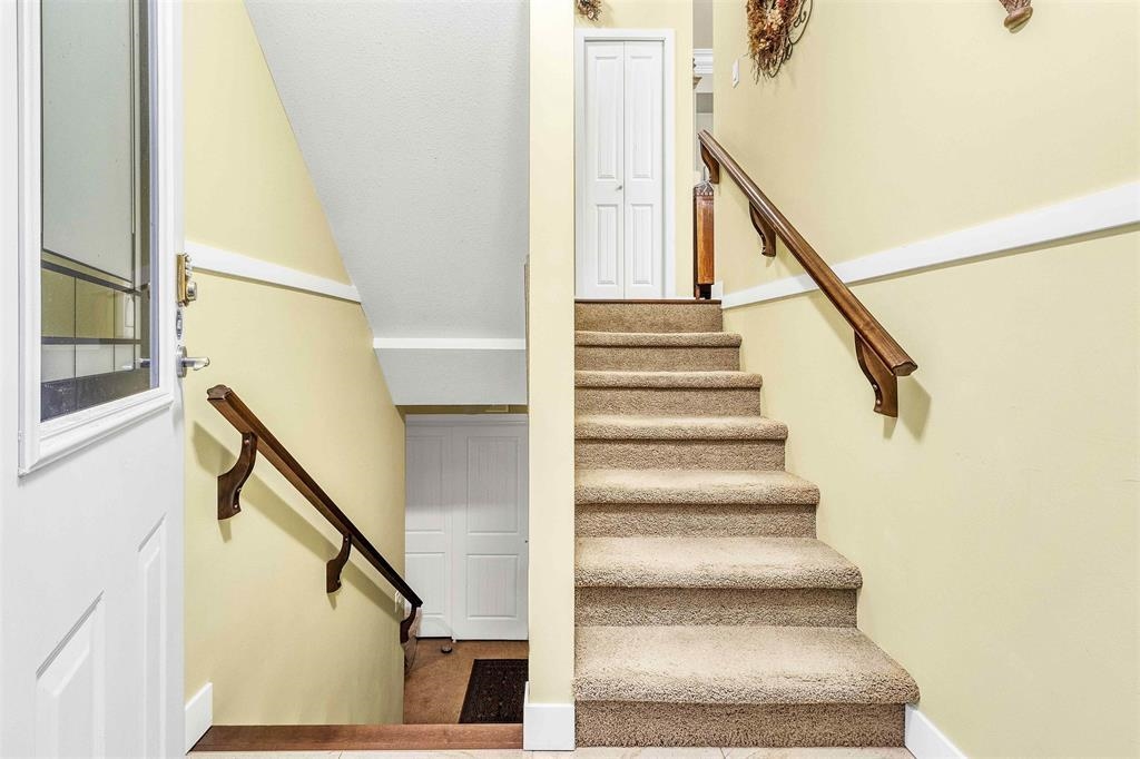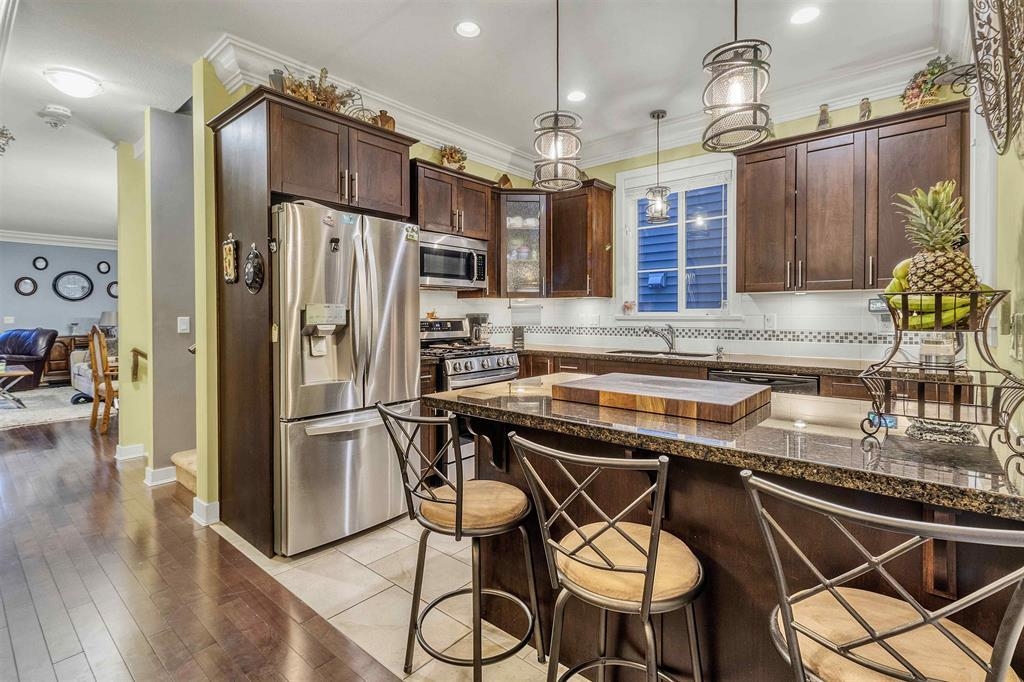 Experience luxury in this rarely available townhouse in East Abbotsford, perfectly situated for privacy, backing onto an amazing private backyard. This spacious home features 3 bedrooms, including a double master layout, a versatile flex room (optional 4th bedroom), and 3 baths. The 2-car garage includes custom storage shelving. Stylish finishes include brick-accented exteriors, hardwood floors, granite countertops, stainless steel appliances, and a gas range. With 10' ceilings, crown mouldings, new carpets...