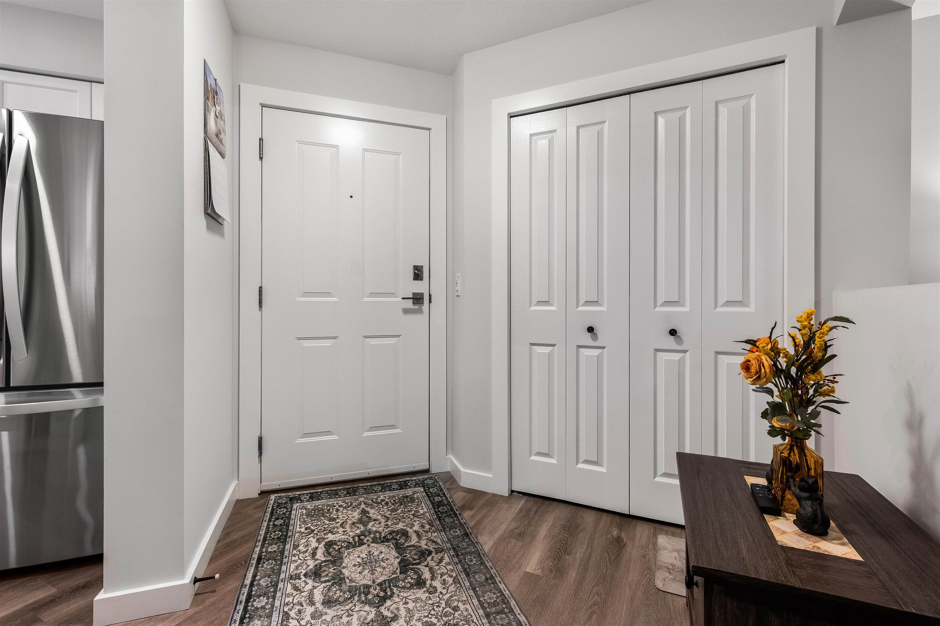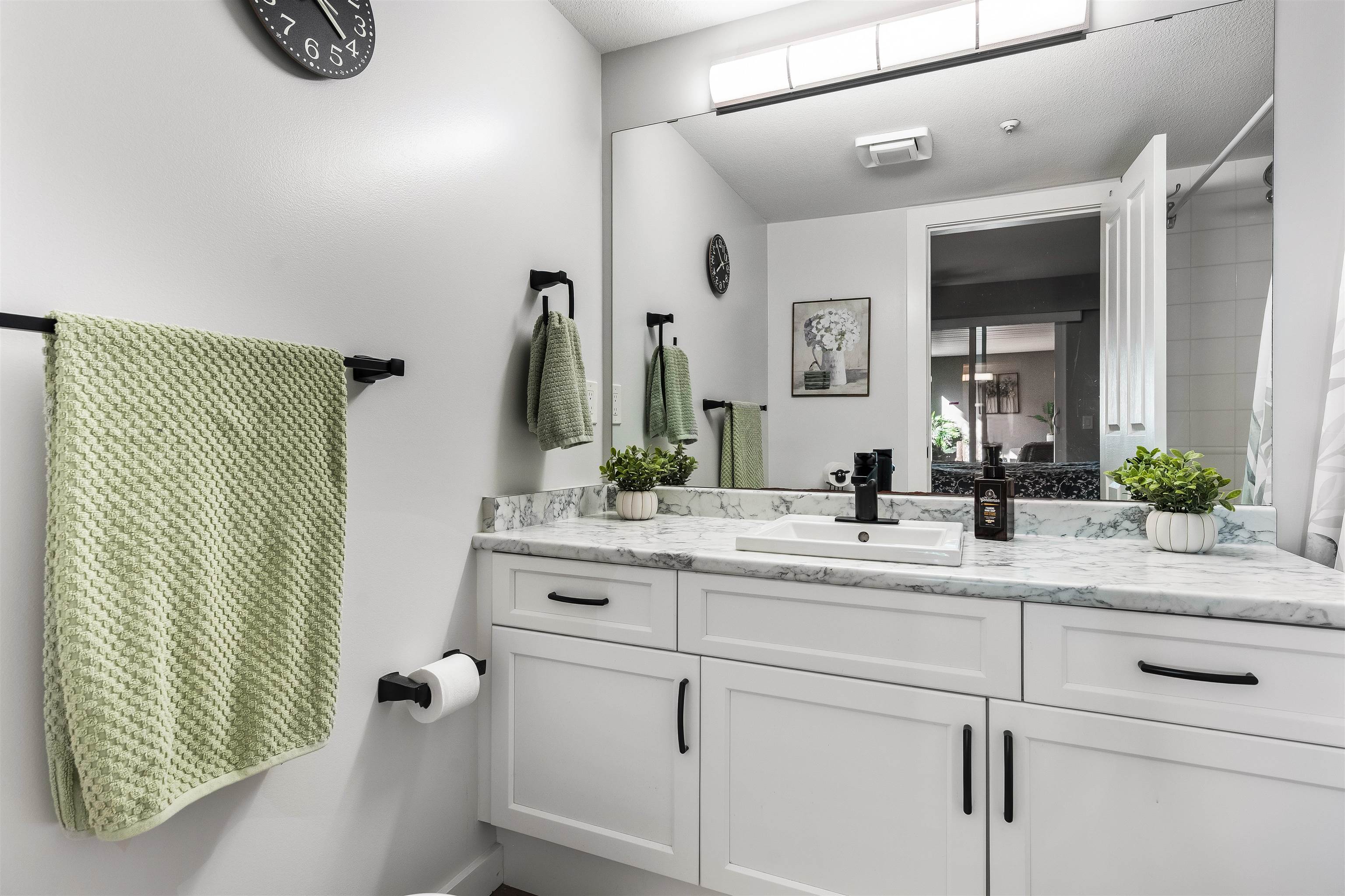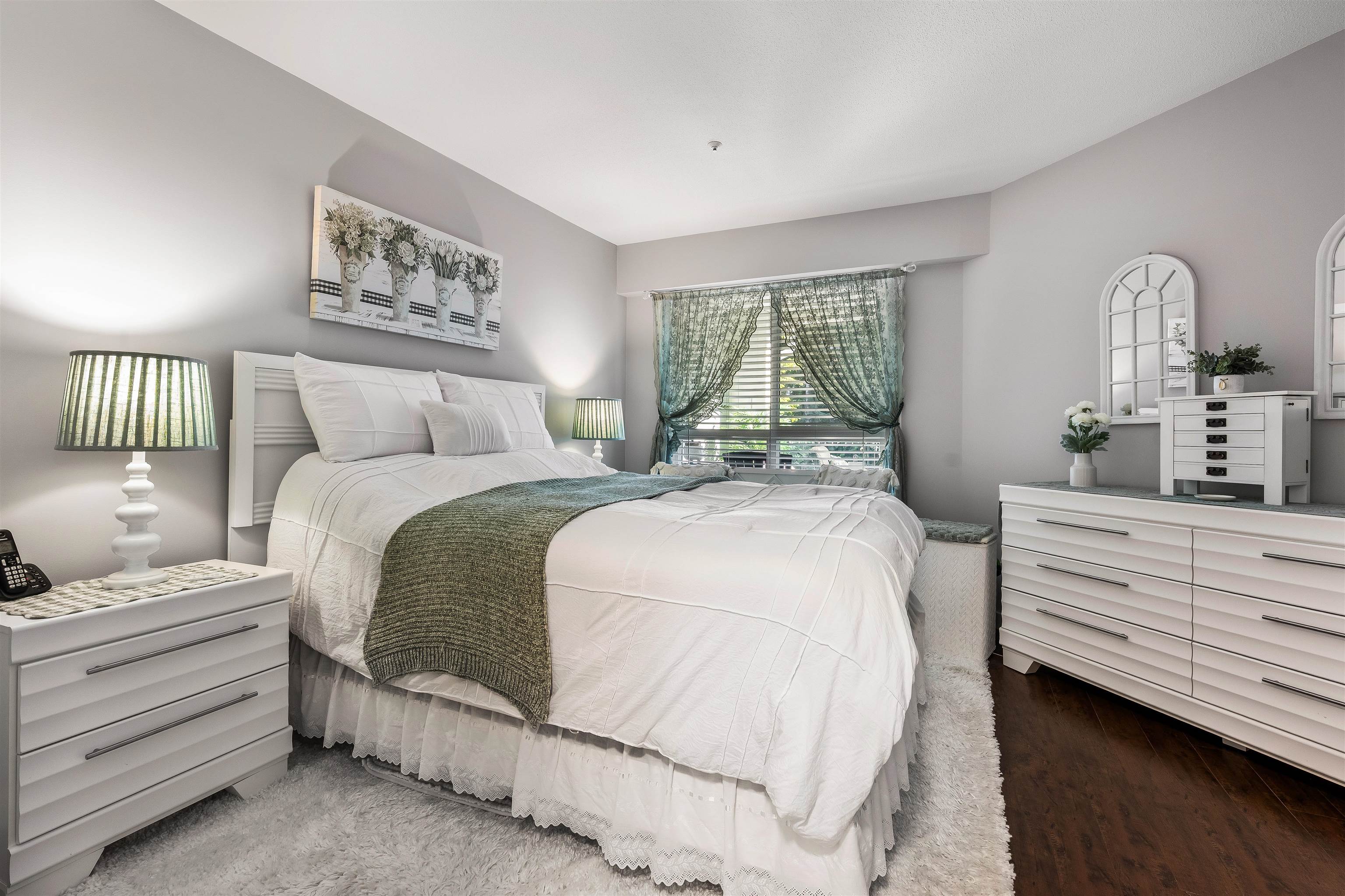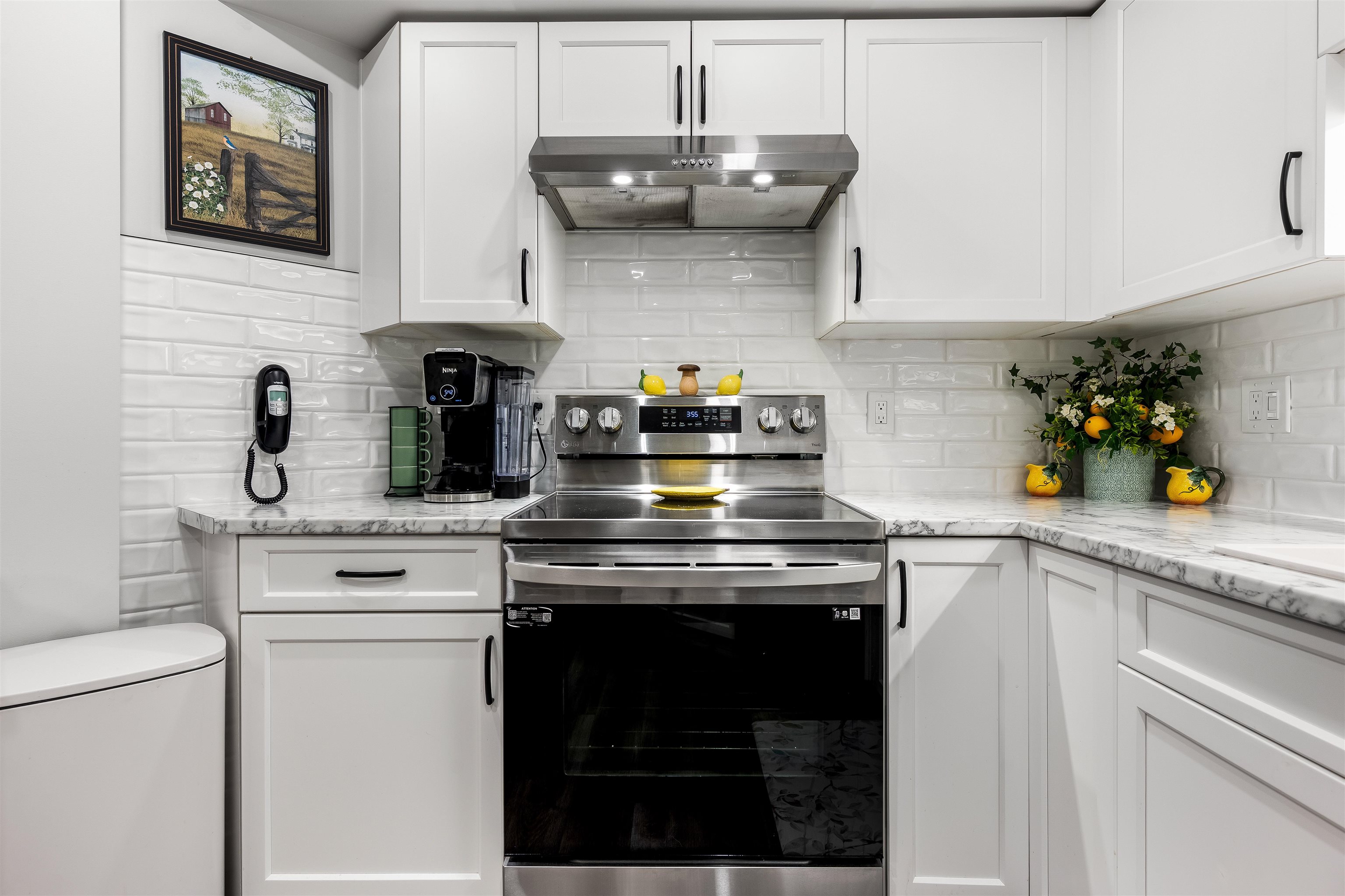 Stunning unit! Meticulously maintained & beautiful! Completely remodeled in 2023. Kitchen cabinets refaced with white shaker, 3 new SS appliances. All new fixtures, sink, taps & backsplash. New stone fireplace wall. New paint thru-out, new laminate floors, lighting & blinds. You'll be drawn to the large triple glass doors that lead to an amazing, huge, covered out-door living area that overlooks the nicely landscaped grounds on the QUIET South side of building & has NG hookup for BBQ! MBdrm has direct acces...