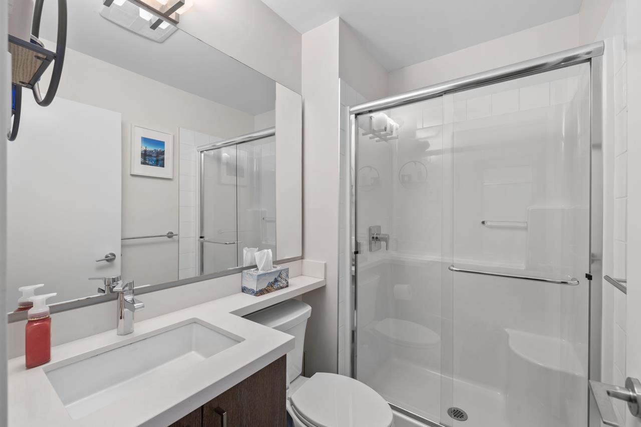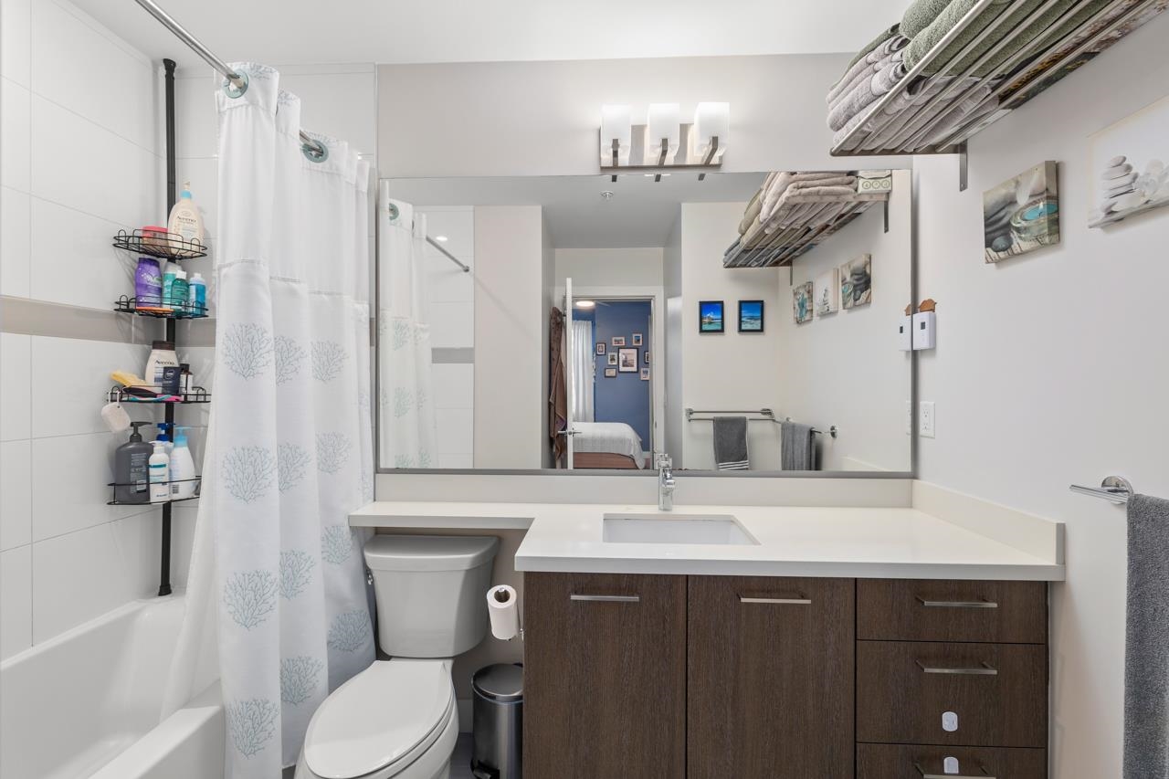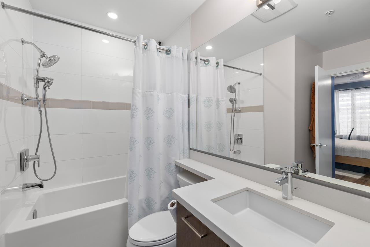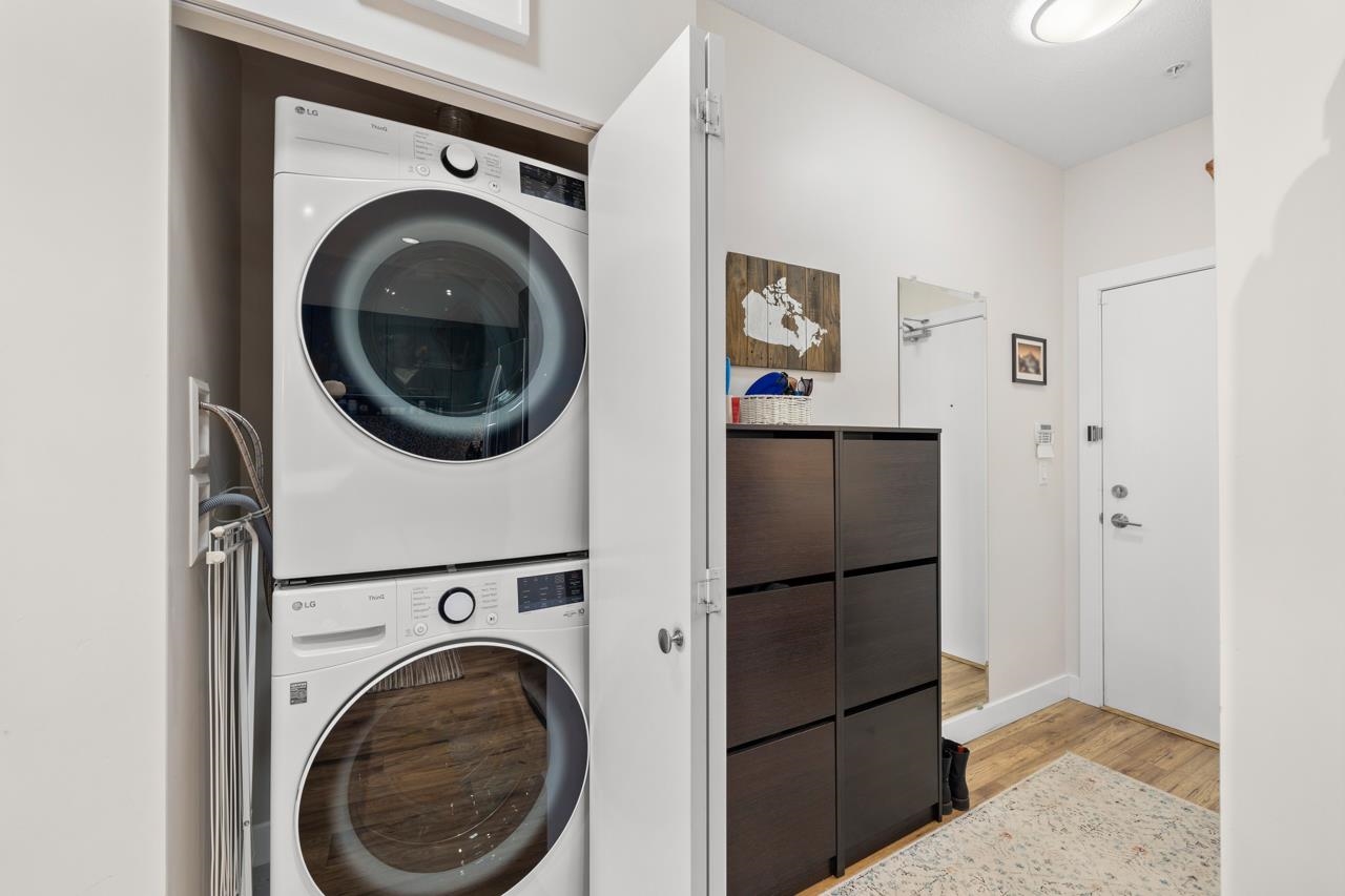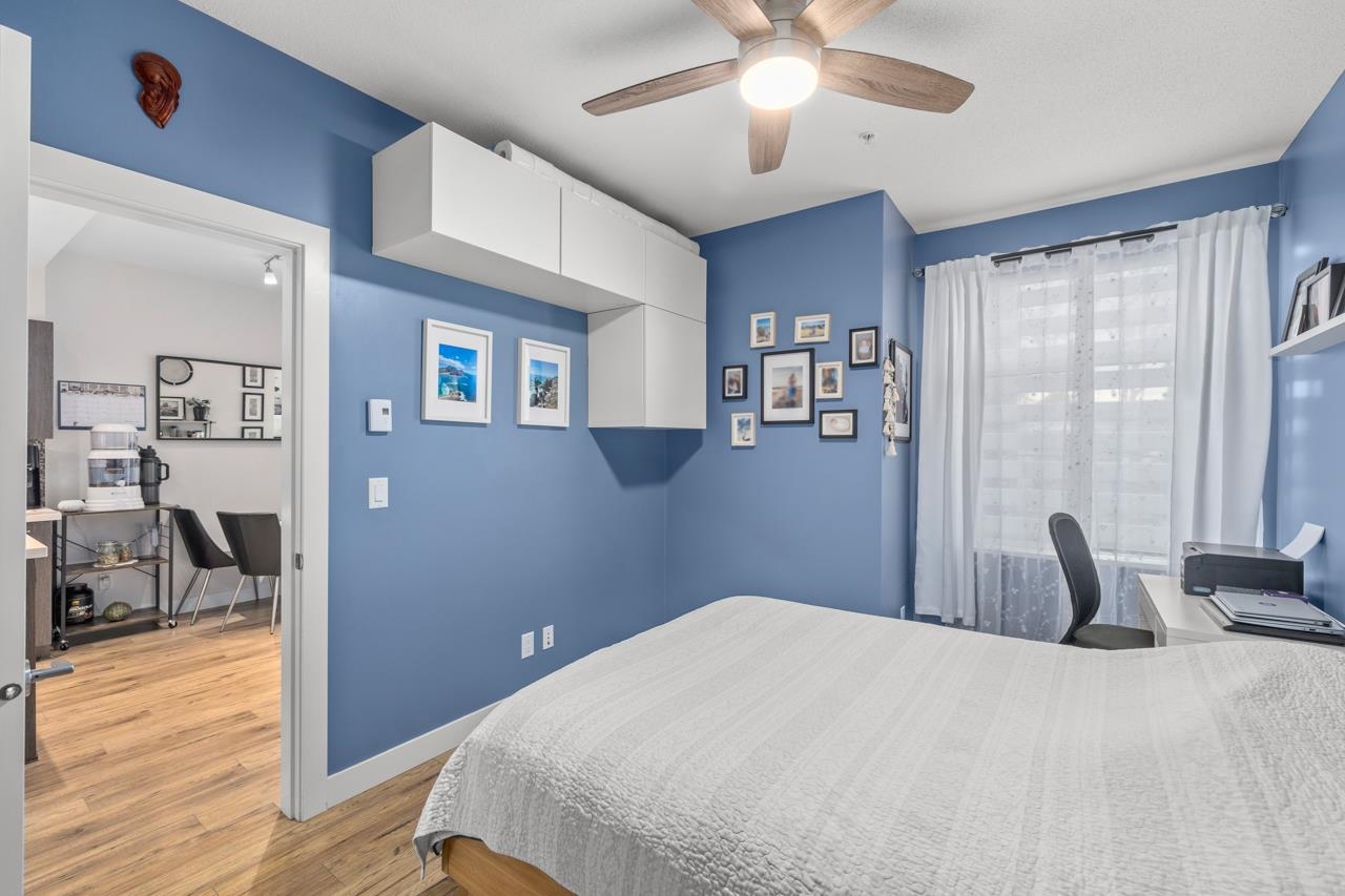 This beautifully styled 2 bedroom, 2 bathroom ground level home offers the perfect blend of comfort and function. Enjoy seamless indoor outdoor living with an expansive 400 sq ft south facing patio, ideal for entertaining or relaxing in the sun. The sleek interior features stainless steel appliances, quartz countertops, elegant cabinetry, and new blinds throughout. A smart split bedroom layout provides privacy while maintaining an open concept design filled with natural light. The spacious primary retreat i...
