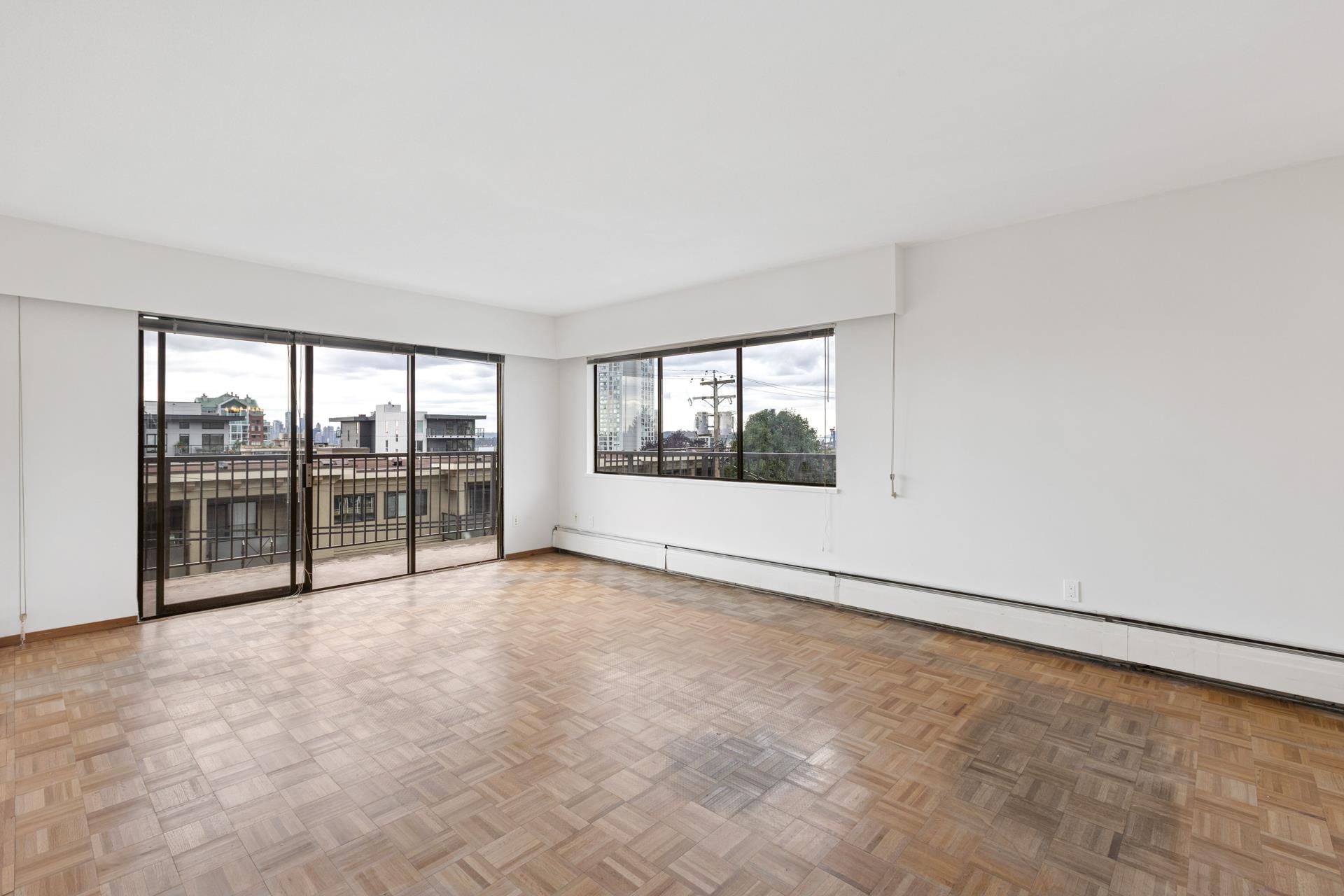 Bright 2-bedroom Winchester Estates Co-Op on the quiet southwest corner of the building, offering excellent value and light-filled living. The traditional, partially open layout features a generous living room with sliders to a wrap-around balcony and plenty of windows with partial city views. The dining area adjoins a galley kitchen with stainless steel appliances. The primary bedroom accommodates a king bed, while the second bedroom is versatile for guests or an office. Includes a 4-piece bath, original p...