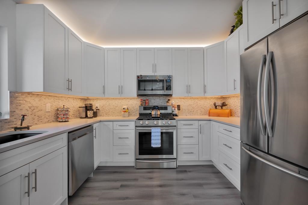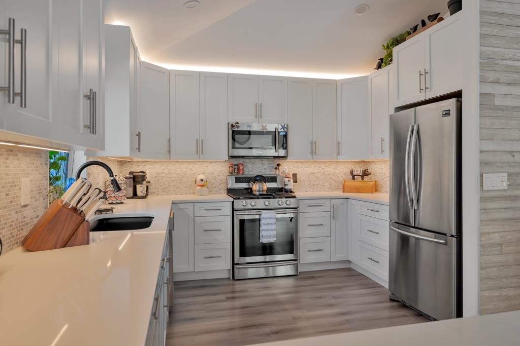 WOW! Beautifully renovated 2,400 sq ft 4 bdrm 3 bath rancher with a basement on a 8,450 sq ft corner lot in Southwest Maple Ridge, close to all amenities incl transit, shopping, schools & hospital. This home features a custom kitchen with gas range, shaker cabinets, quartz & s/s appliances, open concept layout w/ vaulted ceilings. Enjoy a stunning renovated primary suite with 5-piece ensuite: dbl sinks, walk-in shower plus a walk-in closet, and built-in organizers through-out. Basement feature kitchen/suite...