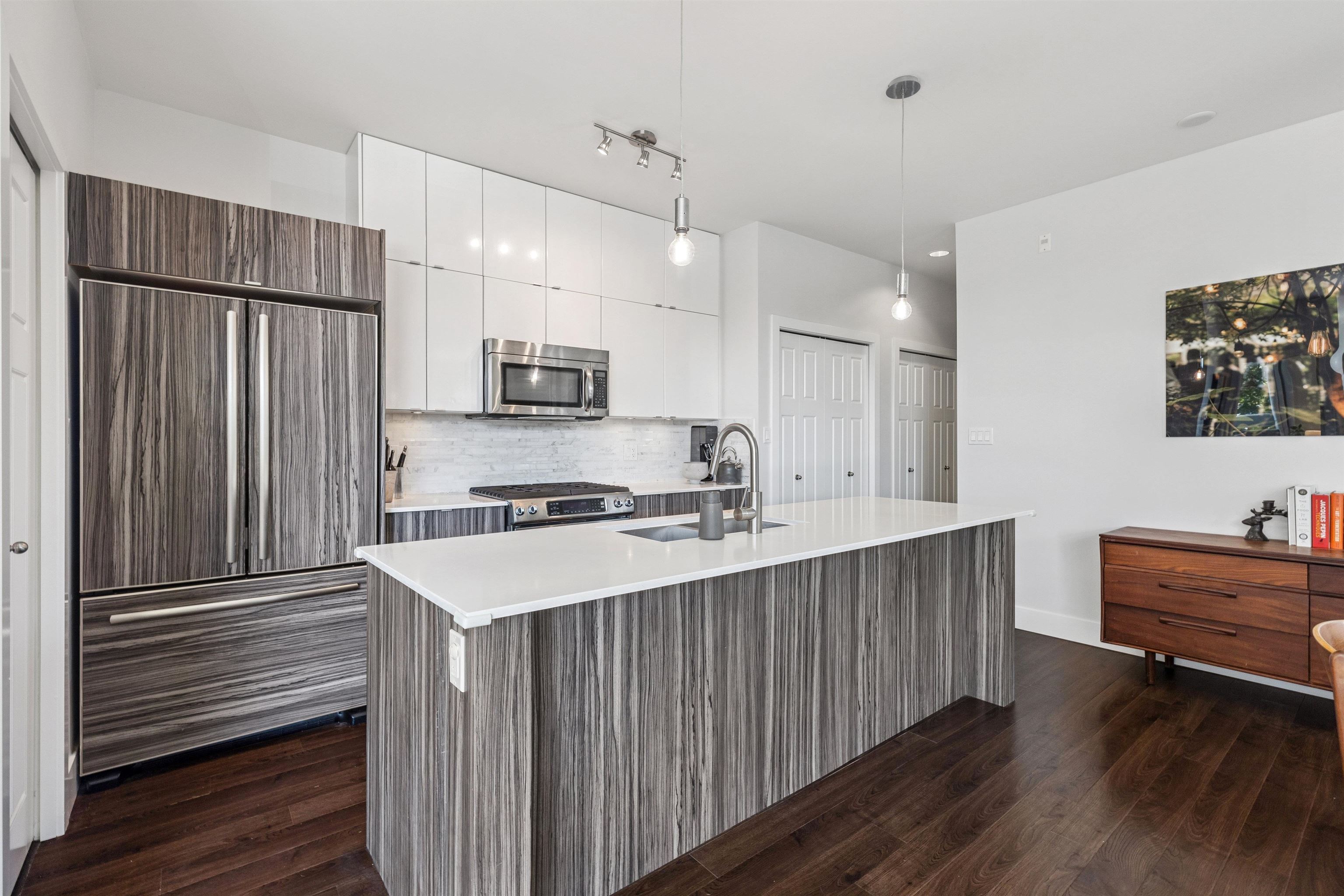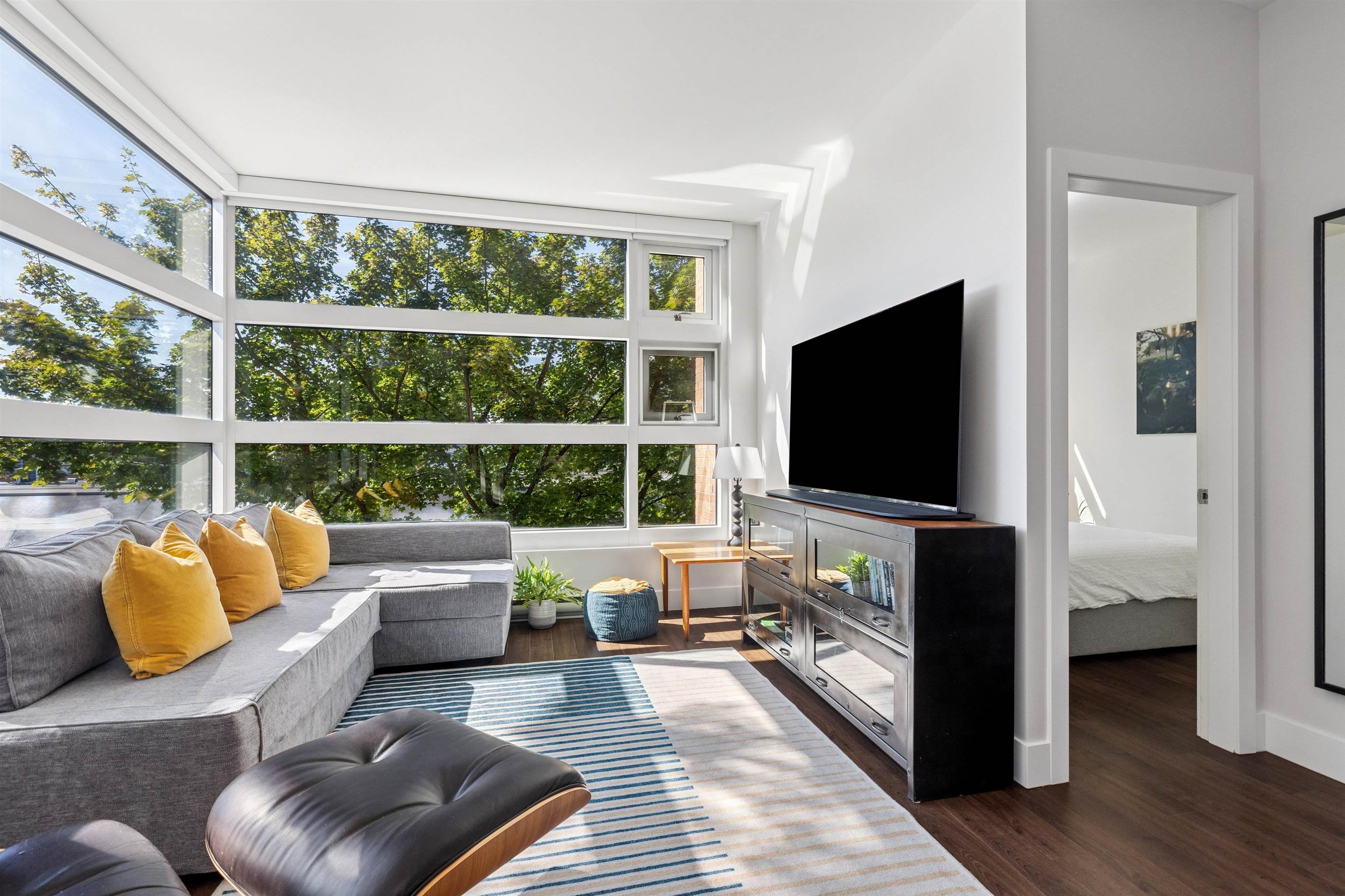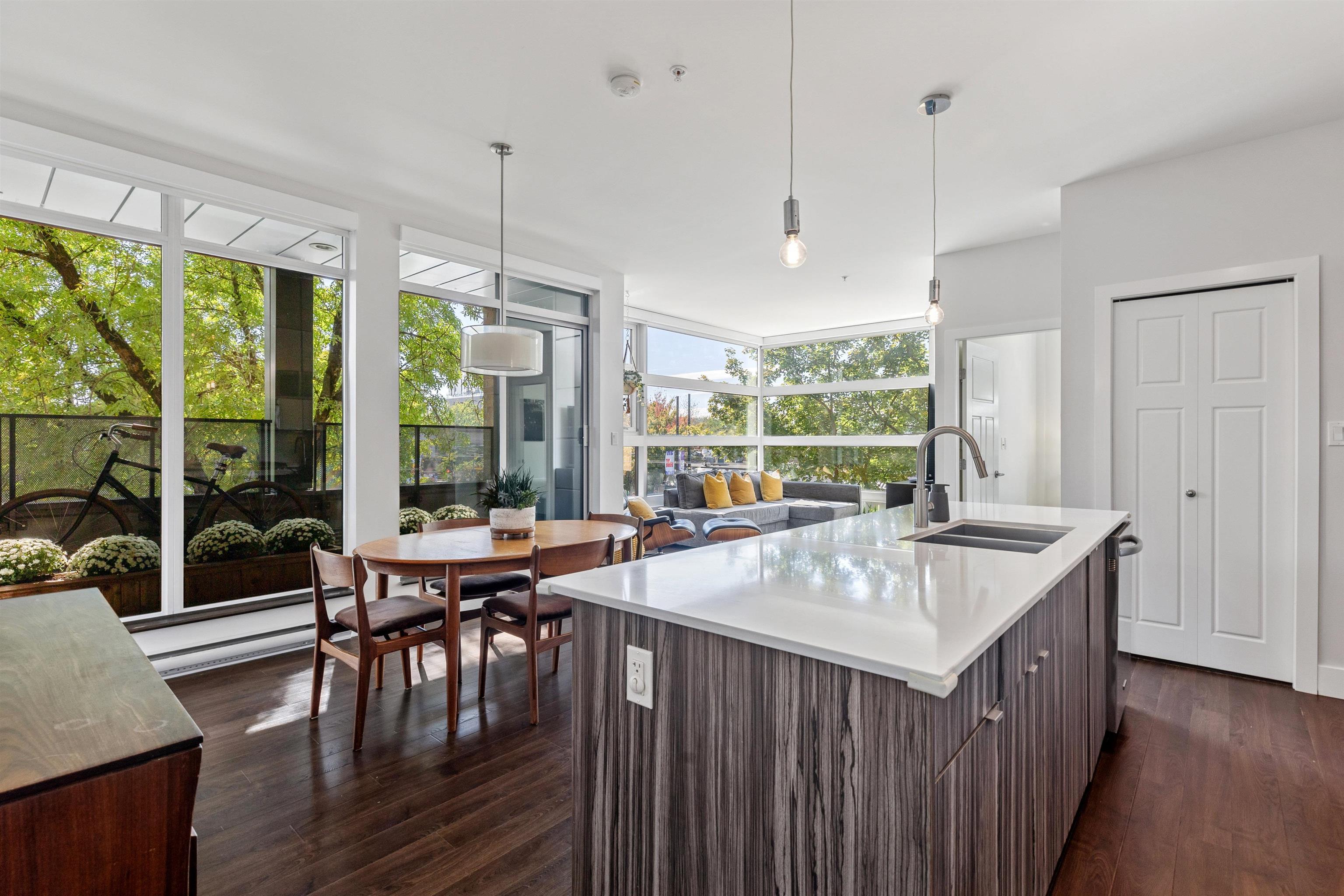 RARE CONCRETE low-rise on the Drive with light, lifestyle, and livability in equal measure. Corner home with 9’ ceilings and a dramatic full-span wall of south & west windows wrapping the living area; no breaks, just all glass and treed outlooks. Automated blinds throughout – bedrooms too! Open-concept plan has great flow: proper dining, large island kitchen with gas range & full-size appliances, & generous living area. Separated bedrooms & an extra-large bathroom with stand-alone soaker tub & shower. Cover...