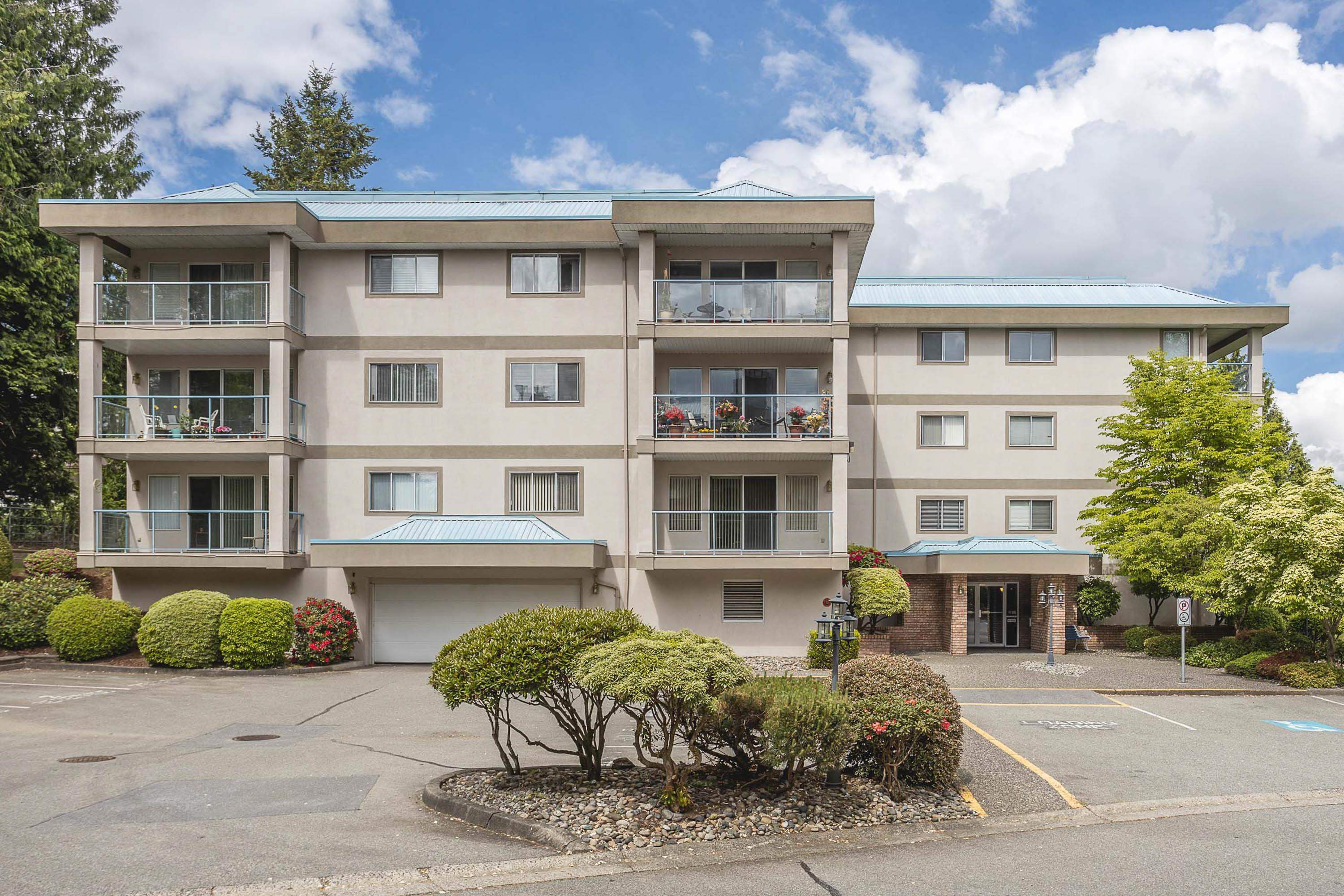 Centrally Located Tiffany Place! This 1104 sqft 2bed, 2 bath corner unit is ideal for a first time buyer or if you are ready to downsize. This well maintained corner unit is bright due to a large balcony that gives peek a boo views of the mountains making it ideal to enjoy your morning coffee & have an outdoor living space. The kitchen is spacious with ample cabinets & counter space as well as an eating area making it efficient for all your cooking & entertaining needs. The Primary bed has good size closets...