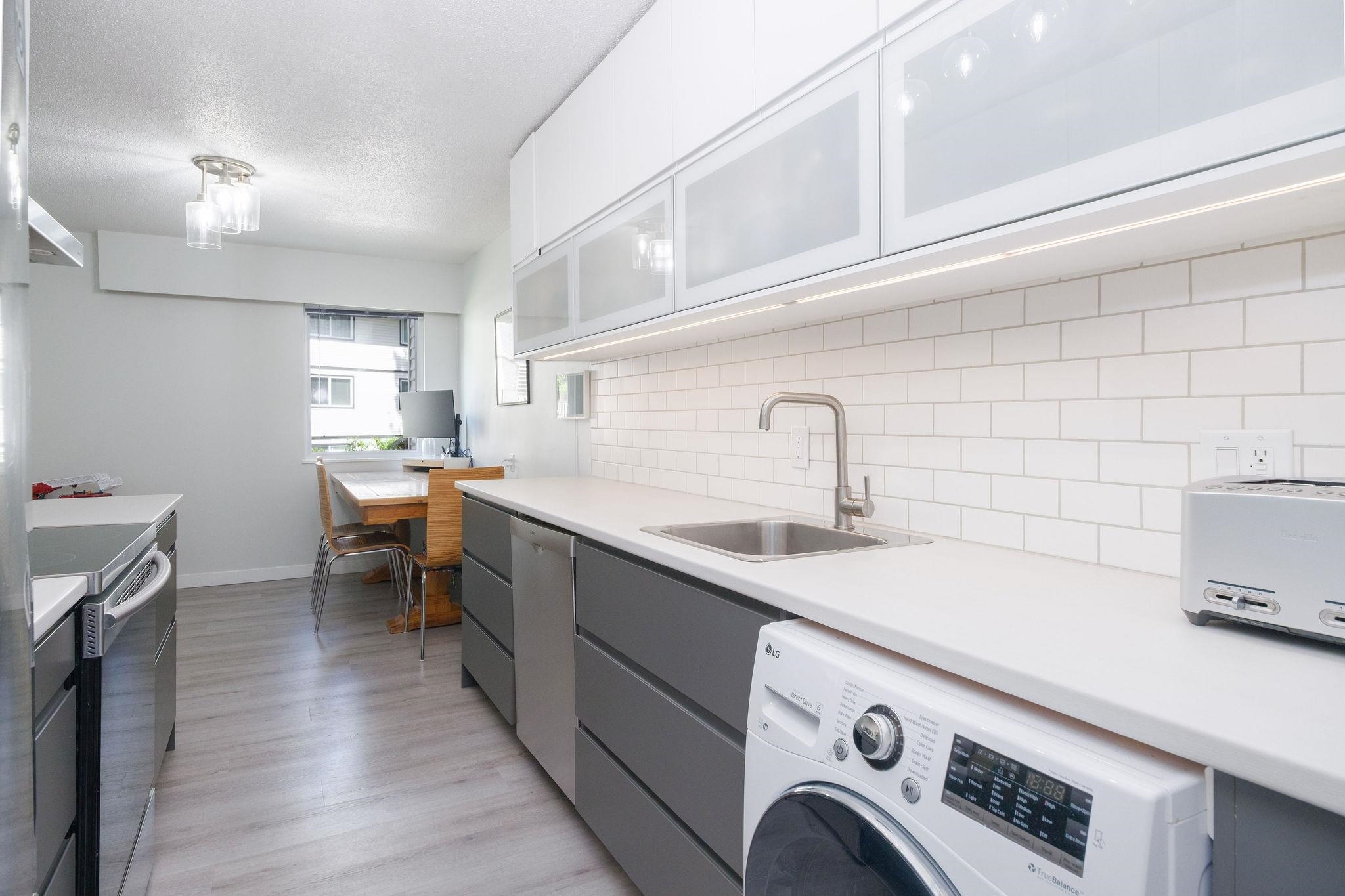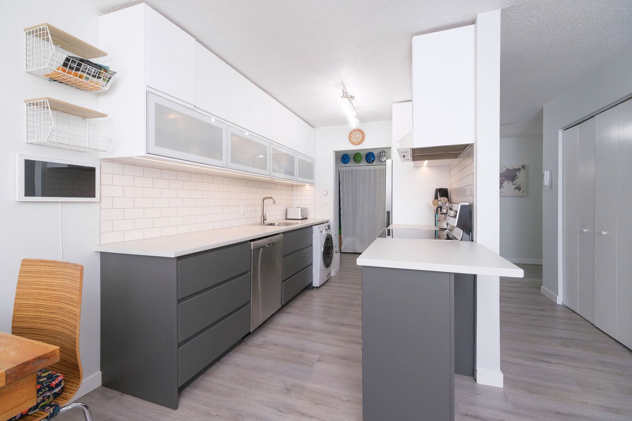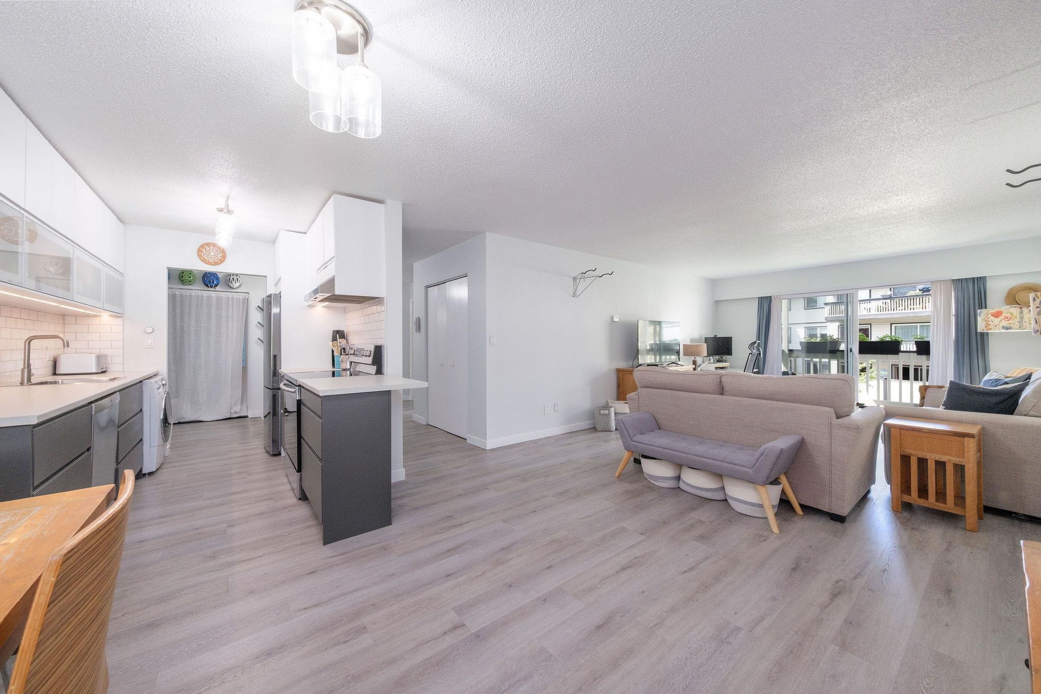 Step into over 1,040 sq.ft. of updated comfort in this 2-bedroom home designed for space and light. The open-concept layout showcases a renovated kitchen with stylish two-tone cabinetry, stainless steel appliances, and wide-plank flooring throughout. Oversized windows and a sun-soaked balcony create a warm, inviting atmosphere, while the flexible floor plan offers plenty of room to work, relax, or entertain. With generous in-suite storage and a location just steps to trails, parks, Capilano University, and ...