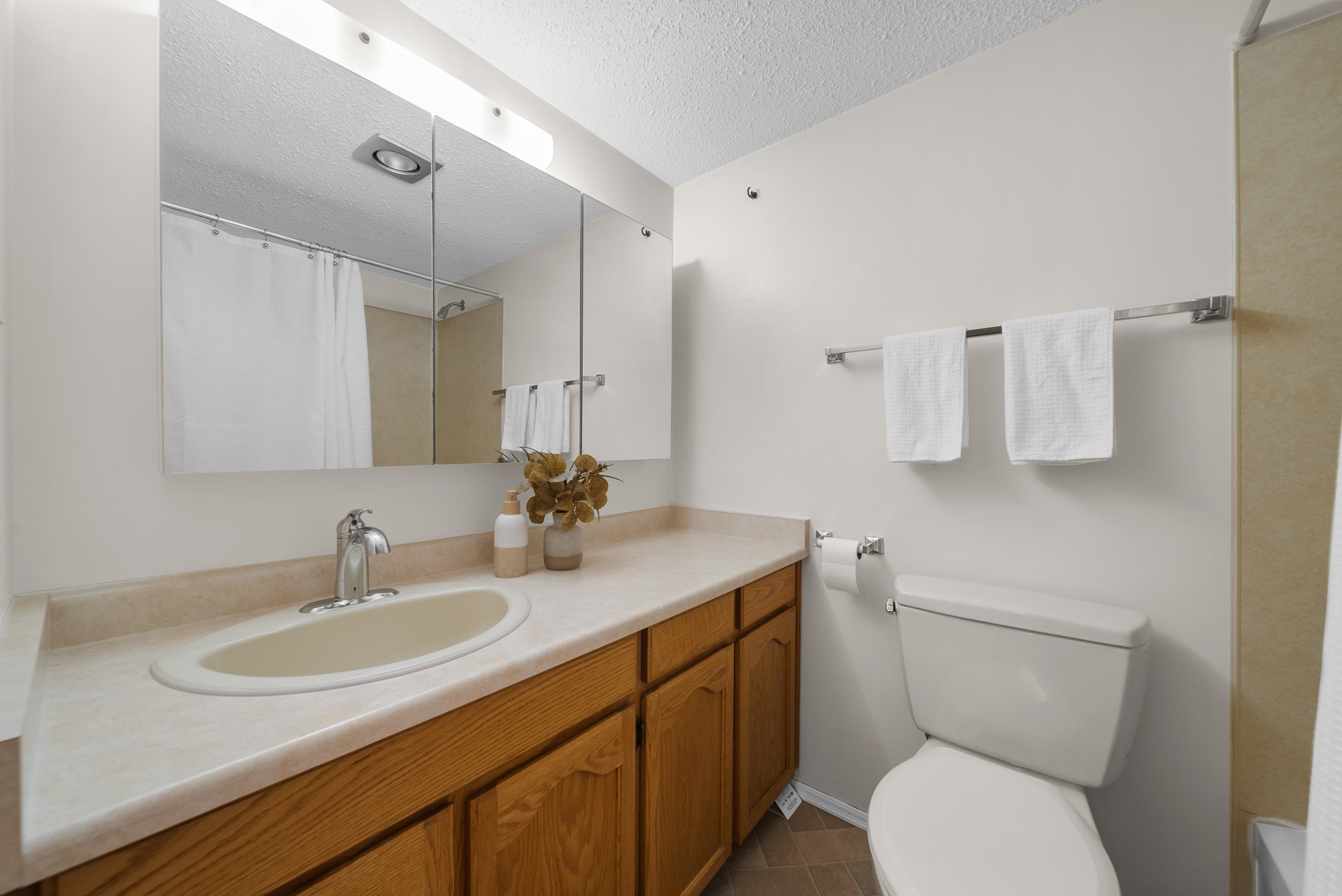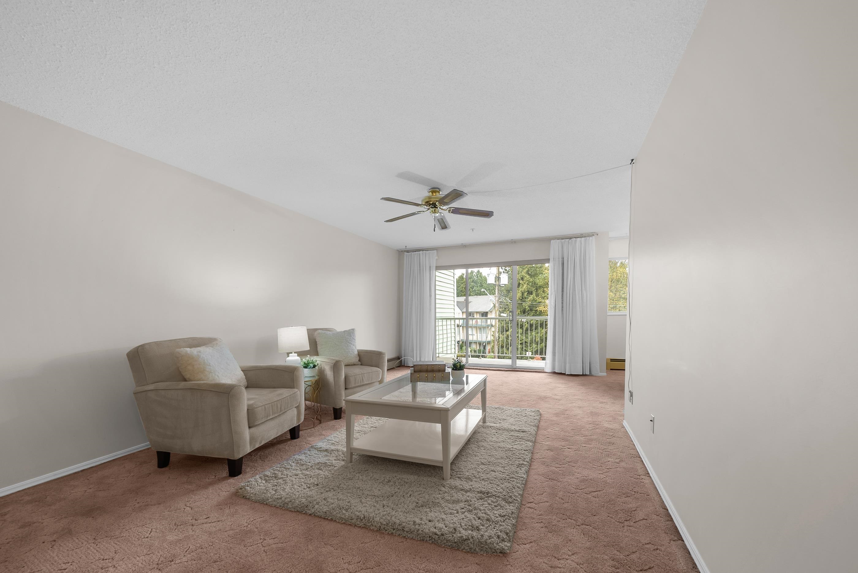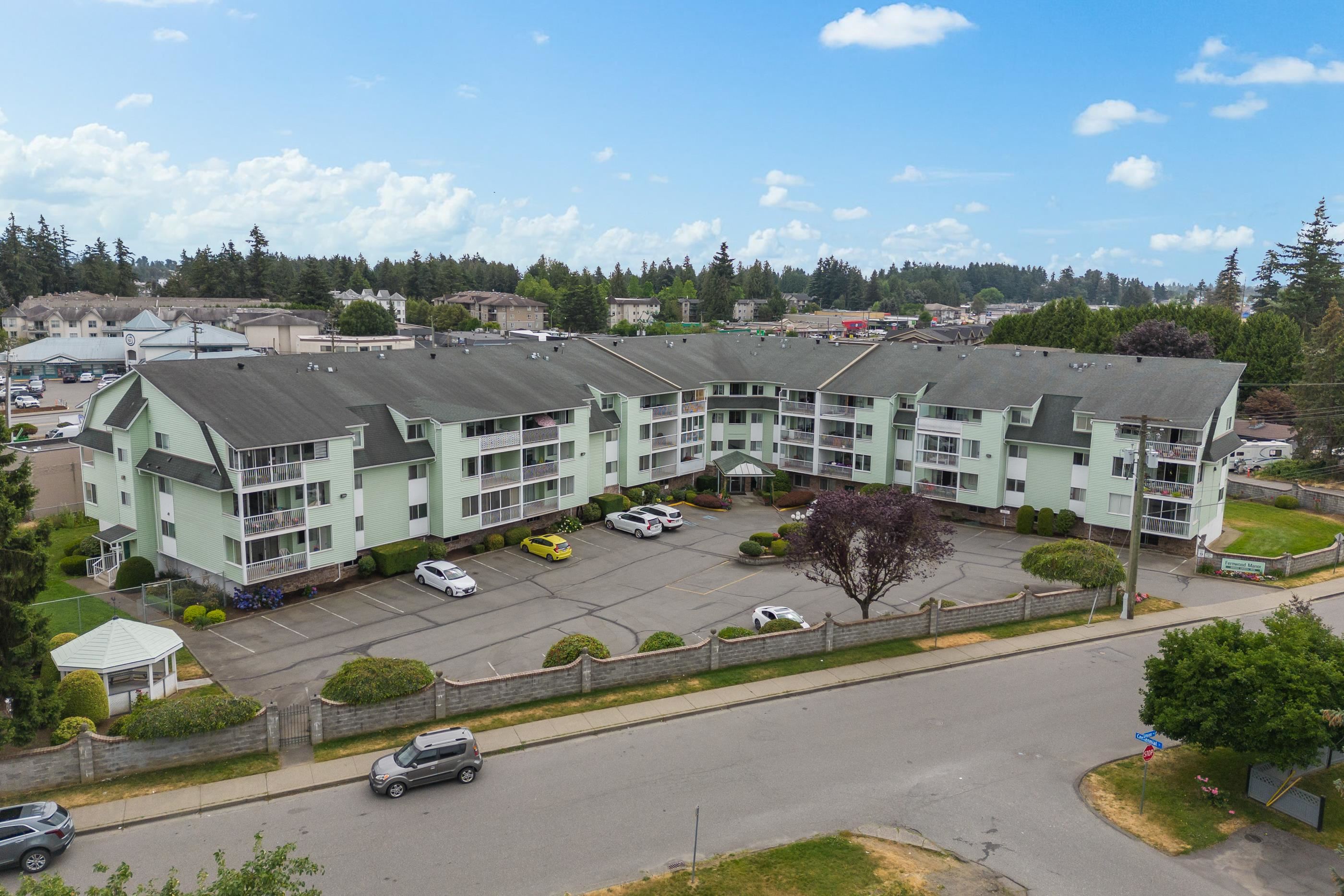 Rare 3-bedroom, 2 bathroom condo in Clearbrook’s desirable 55+ Fernwood Manor complex! This bright & open corner unit located on the quiet side of the building boasts a huge living room w/ sliding door access to a large, 107 sq.ft. covered balcony w/ convenient storage room. Kitchen w/ plenty of cabinet space & adjacent dining room; perfect for hosting family & friends! Primary bedroom w/ its own private enclosed balcony & 2 pc ensuite. 2 additional bedrooms, 4-piece main bath, & in-suite laundry w/ overhea...
