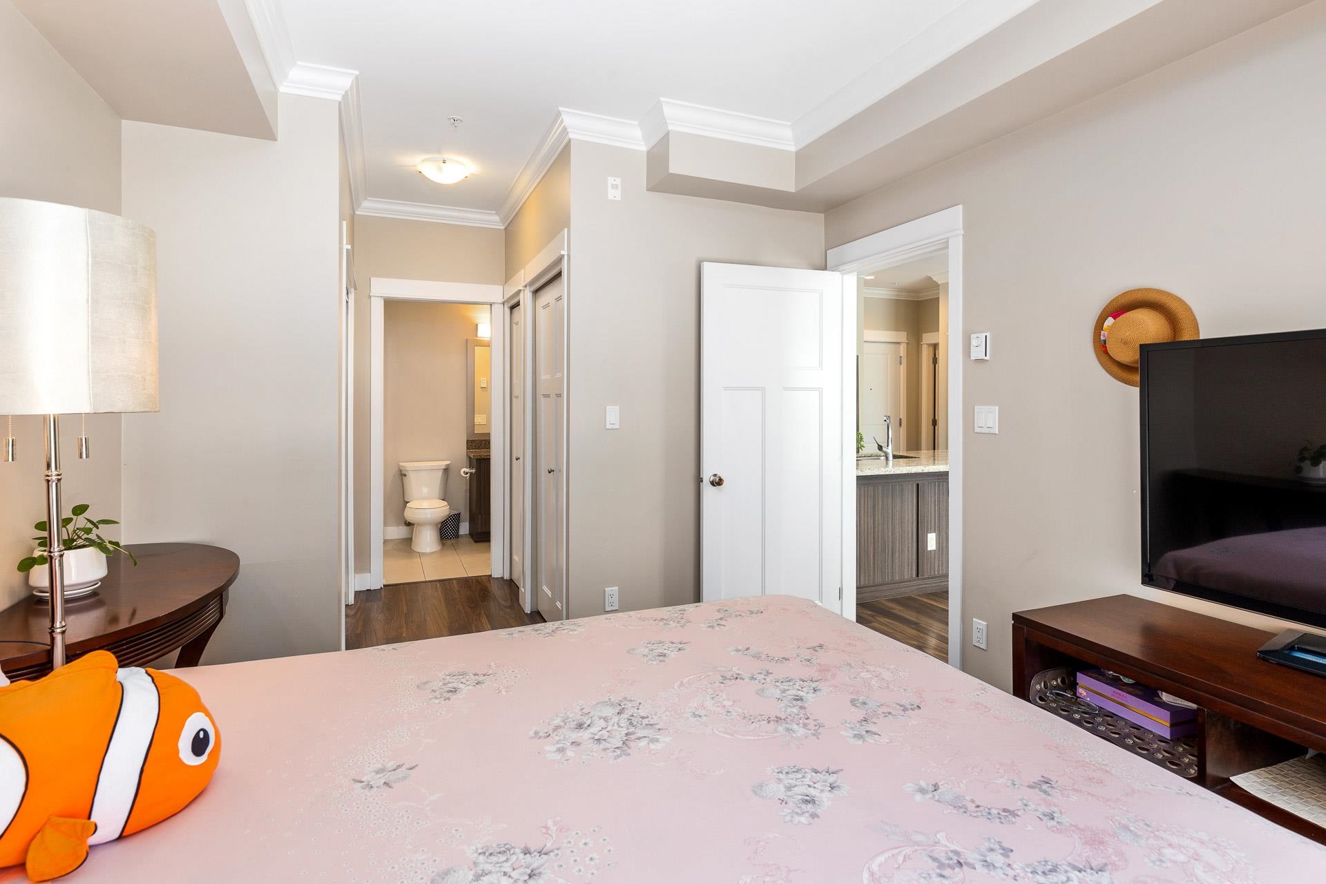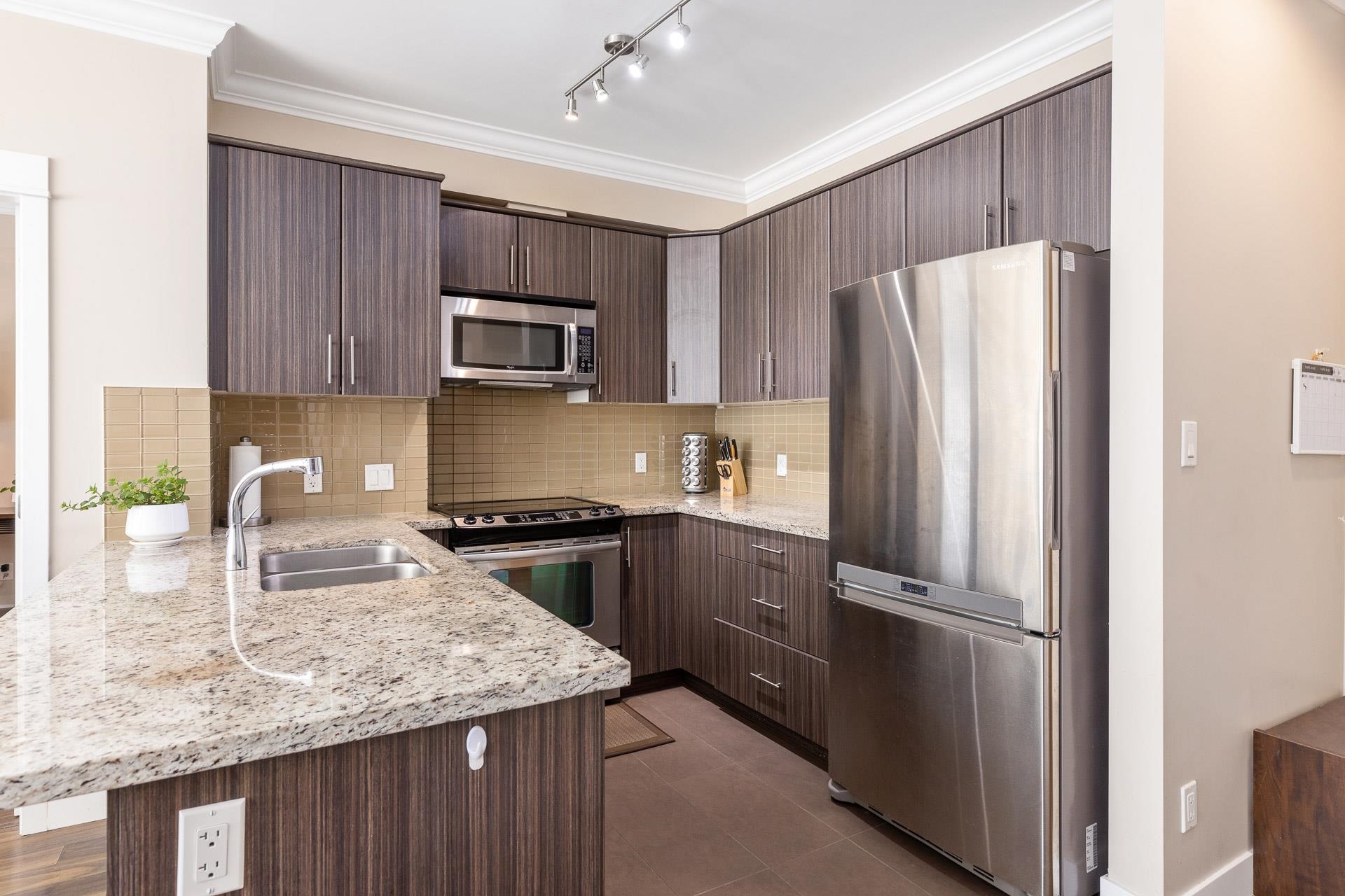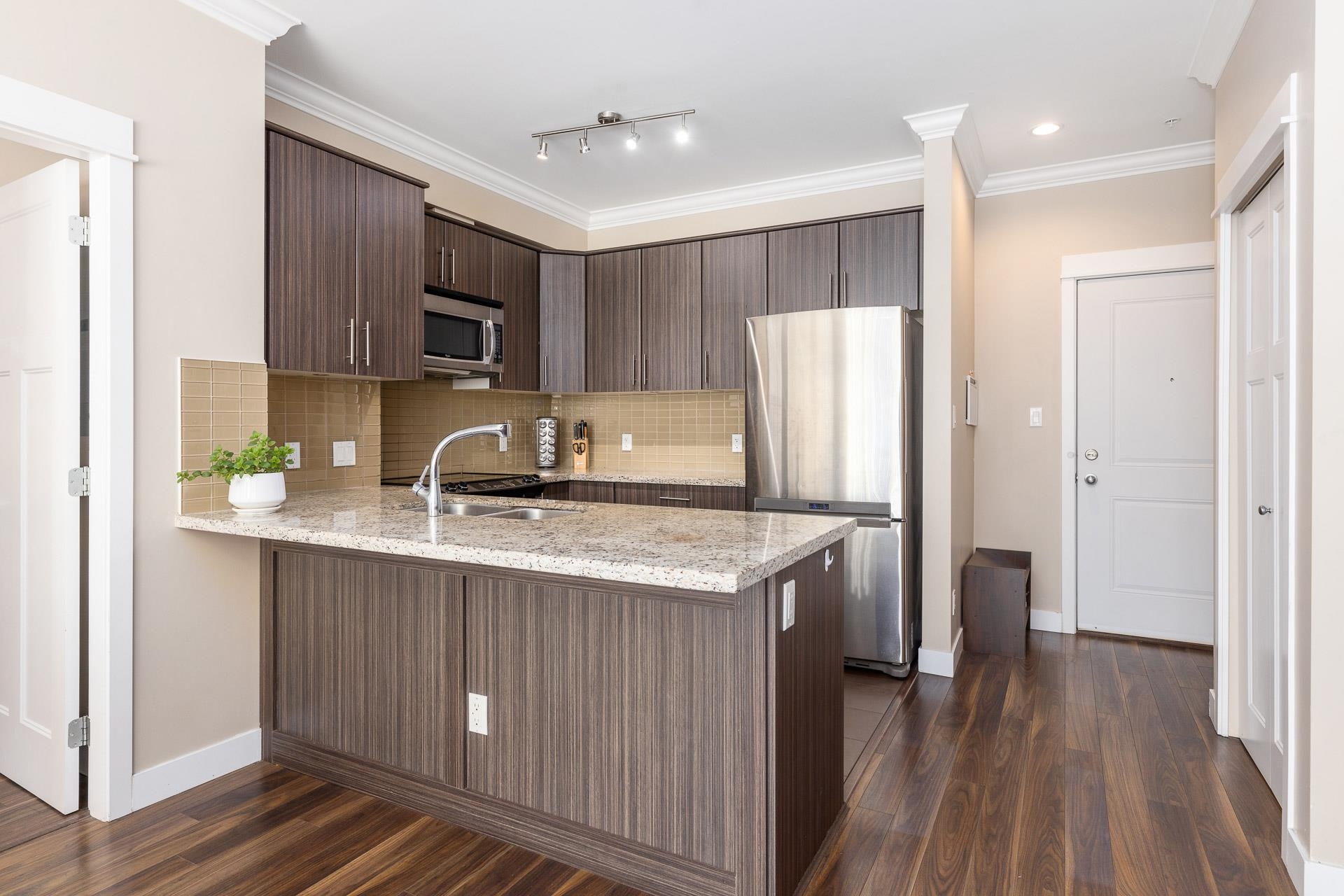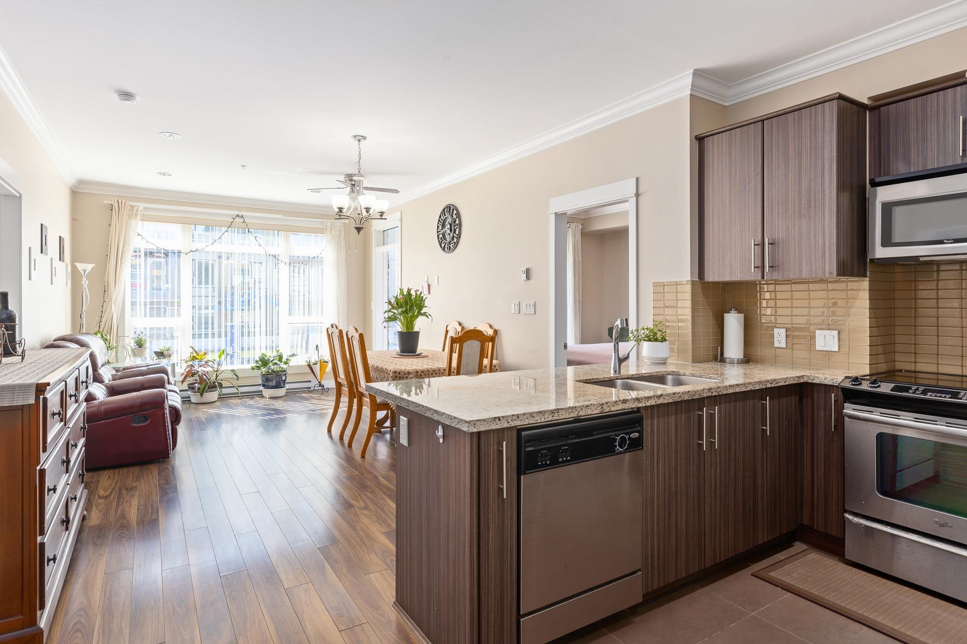 Welcome to the sought after BABANA! This seldom available 893 sq ft unit have 2 bed/2 bath/2 balconies, plus a SPACIOUS Den which could be used as a 3rd bedroom. Bright South-West facing living room leads to 2 good size bedrooms on the opposite side of the living room. High ceiling with Beautiful crown moldings throughout, quartz counters, plenty of cabinets, S/S appliances, and laminate floors. Walking distance to all amenities. Great neighborhood restaurants and shops. Close to Royal Oak Skytrain, Metroto...